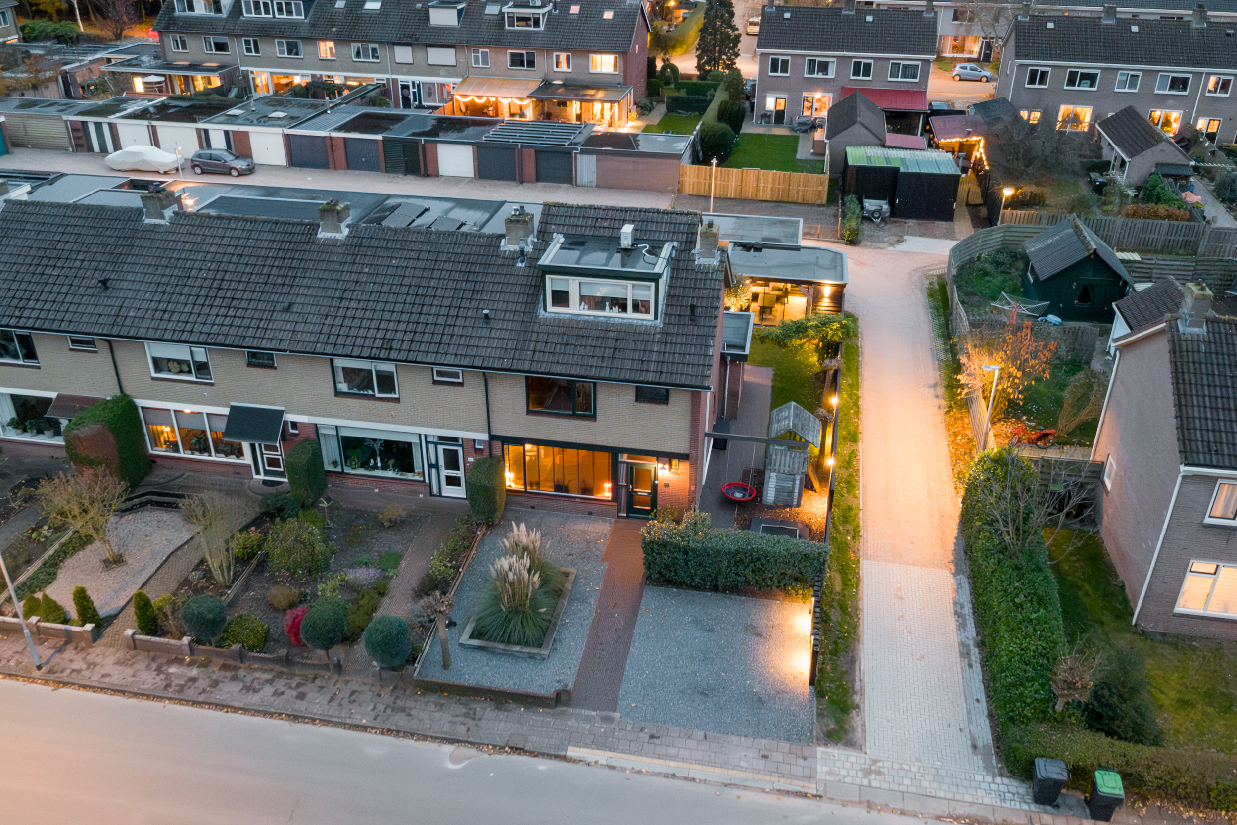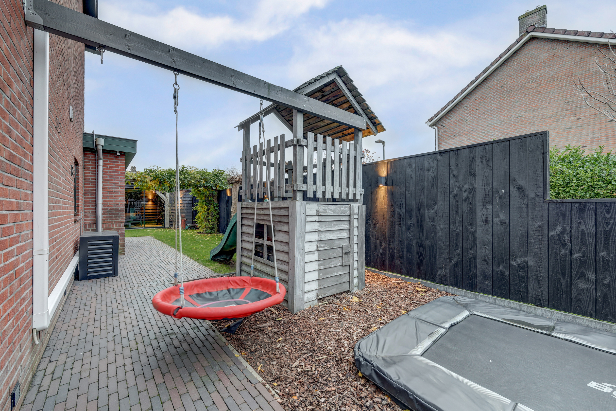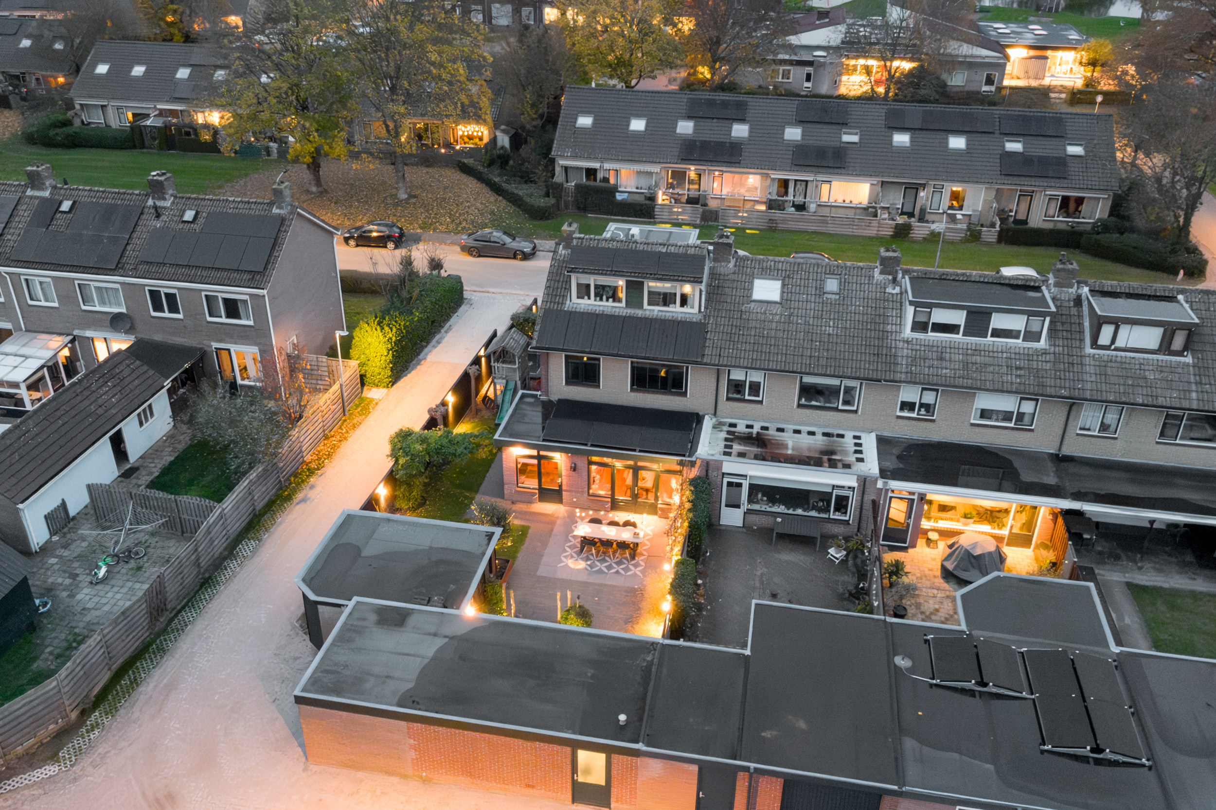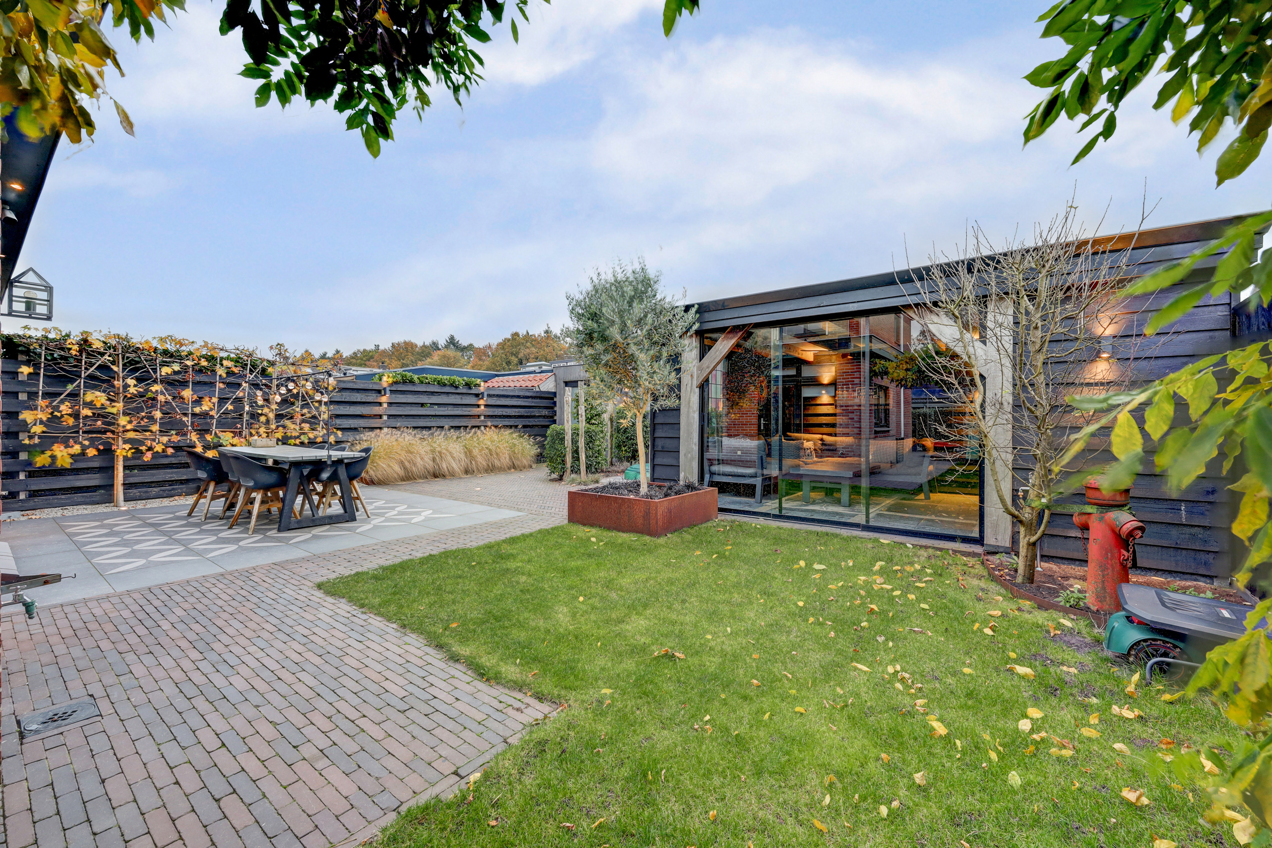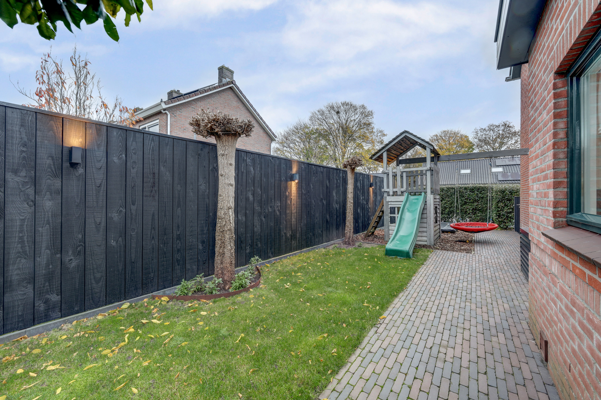 De achtertuin is in 2022 volledig vernieuwd en dat is op een nette, doordachte manier gedaan. De indeling is overzichtelijk, het onderhoud blijft beperkt en de moderne voorzieningen maken het gebruik comfortabel. De veranda is een fijne toevoeging: een plek waar je op warme dagen wat schaduw hebt en waar je ook bij minder weer gewoon buiten kunt zitten. Met een sproei-installatie, grondwaterpomp, tuinverlichting en voorbereidingen voor elektrisch laden is de tuin praktisch en toekomstgericht. Door de ligging op het zuiden heb je veel zon, maar dankzij de veranda en de ruime opzet kun je altijd makkelijk een ander plekje kiezen. De voortuin is in 2024 vernieuwd en geeft het geheel een verzorgde, rustige uitstraling zodra je komt aanlopen.