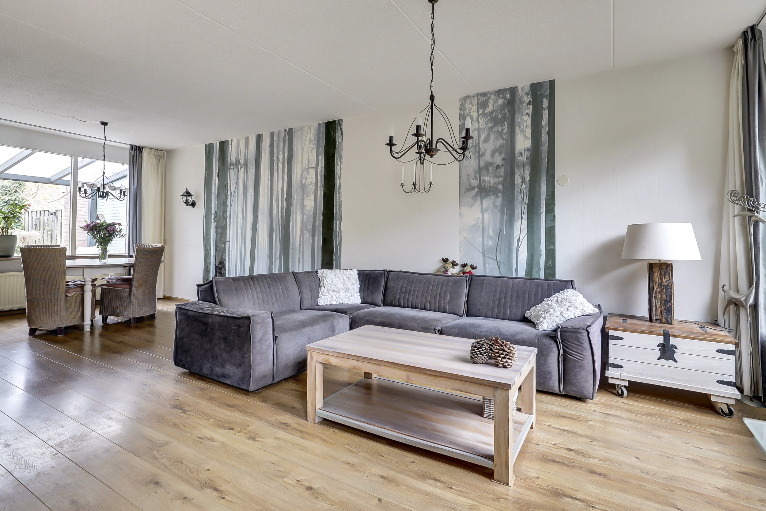 Bij aankomst valt direct op hoe verzorgd deze woning is. De voortuin oogt netjes, de oprit biedt ruimte voor meerdere auto’s. Ook is de oprit voorzien van een carport met lichtkoepel en inbouwspots. Binnen wacht een ruime hal die toegang geeft tot de L-vormige woonkamer. Een heerlijke plek met veel lichtinval dankzij de grote ramen aan voor- en achterzijde. Hier is ruimte genoeg voor een royale zithoek en tevens een eethoek die plaats kan bieden voor 6 tot 8 personen.