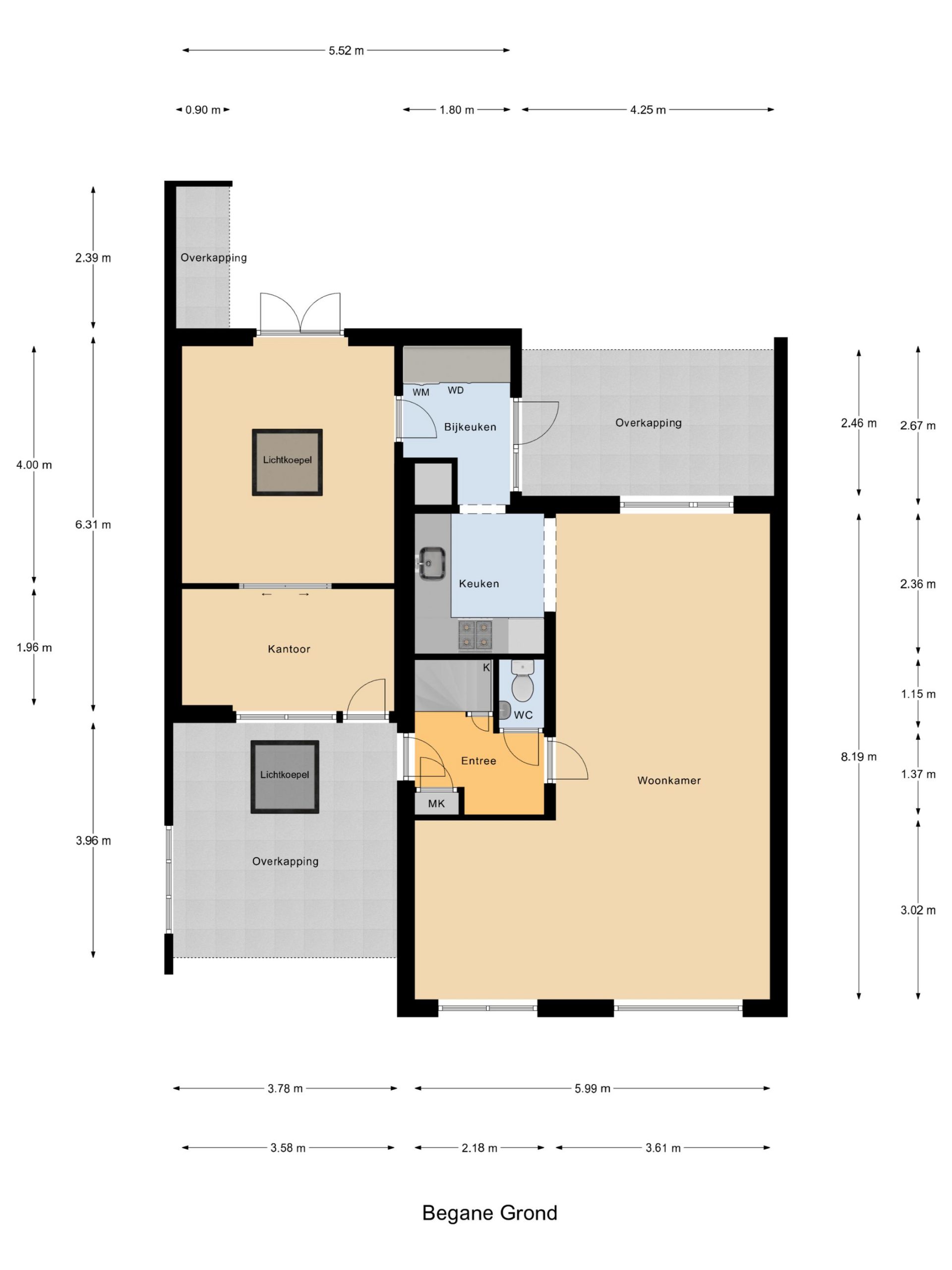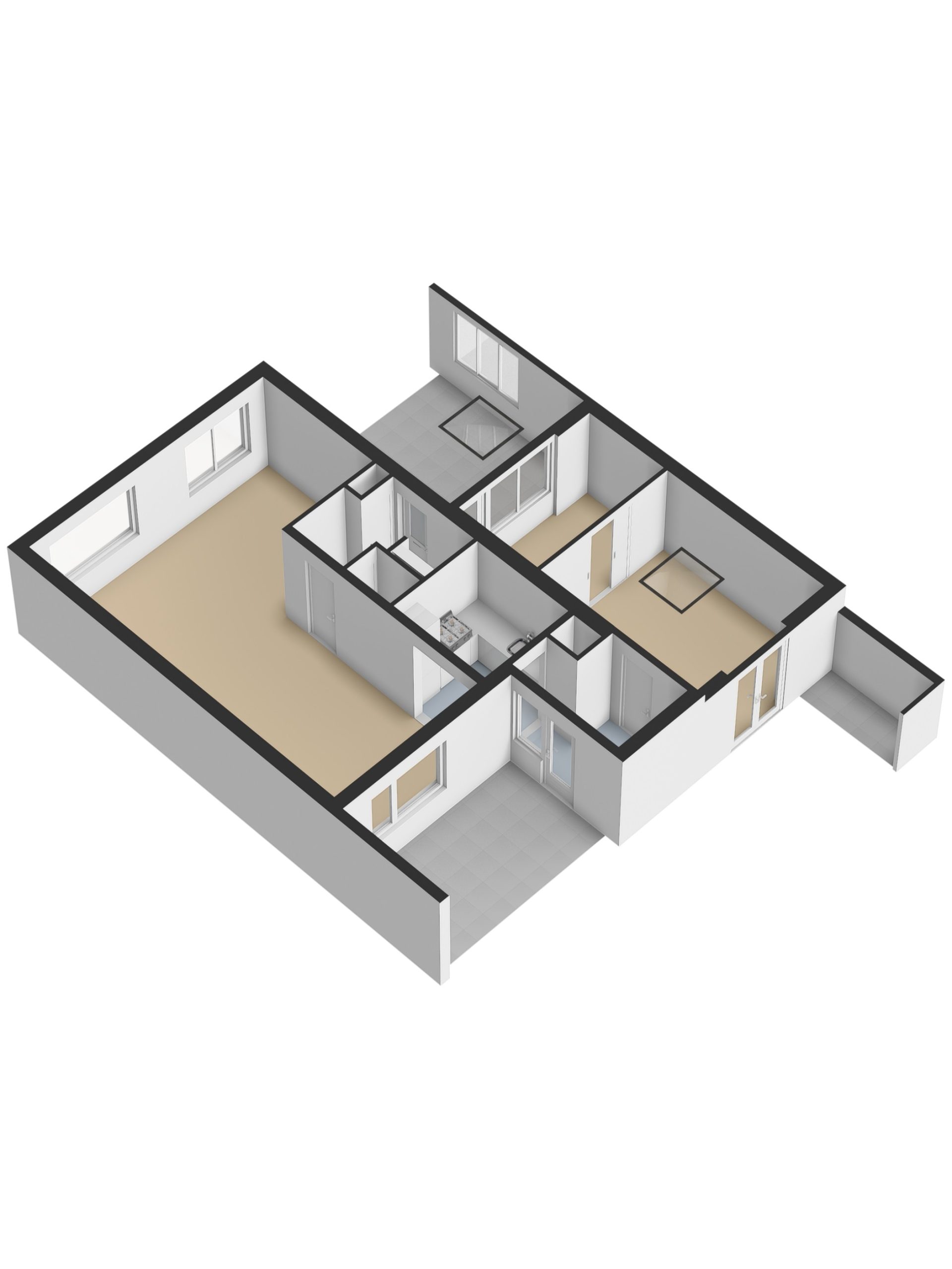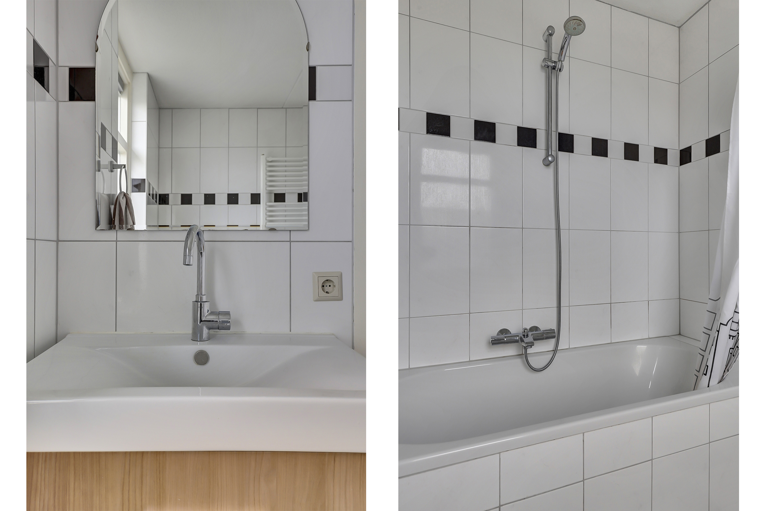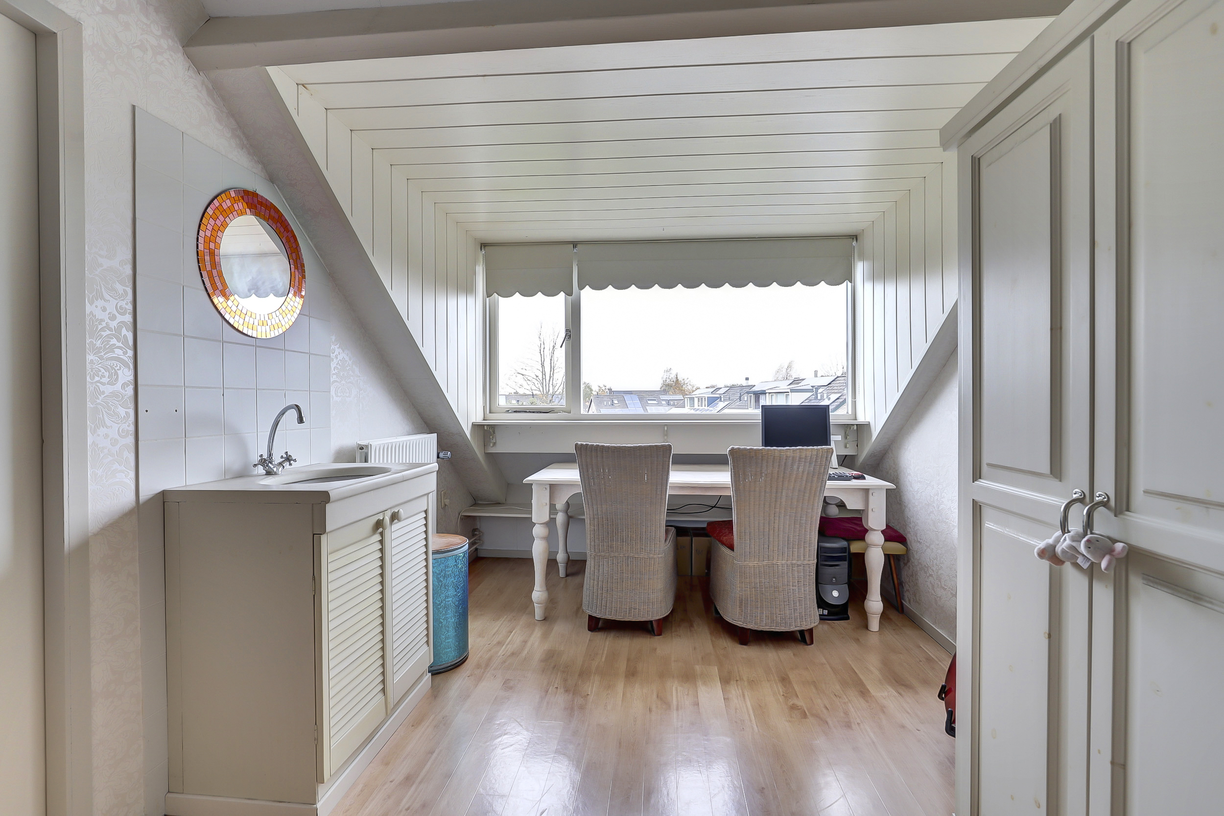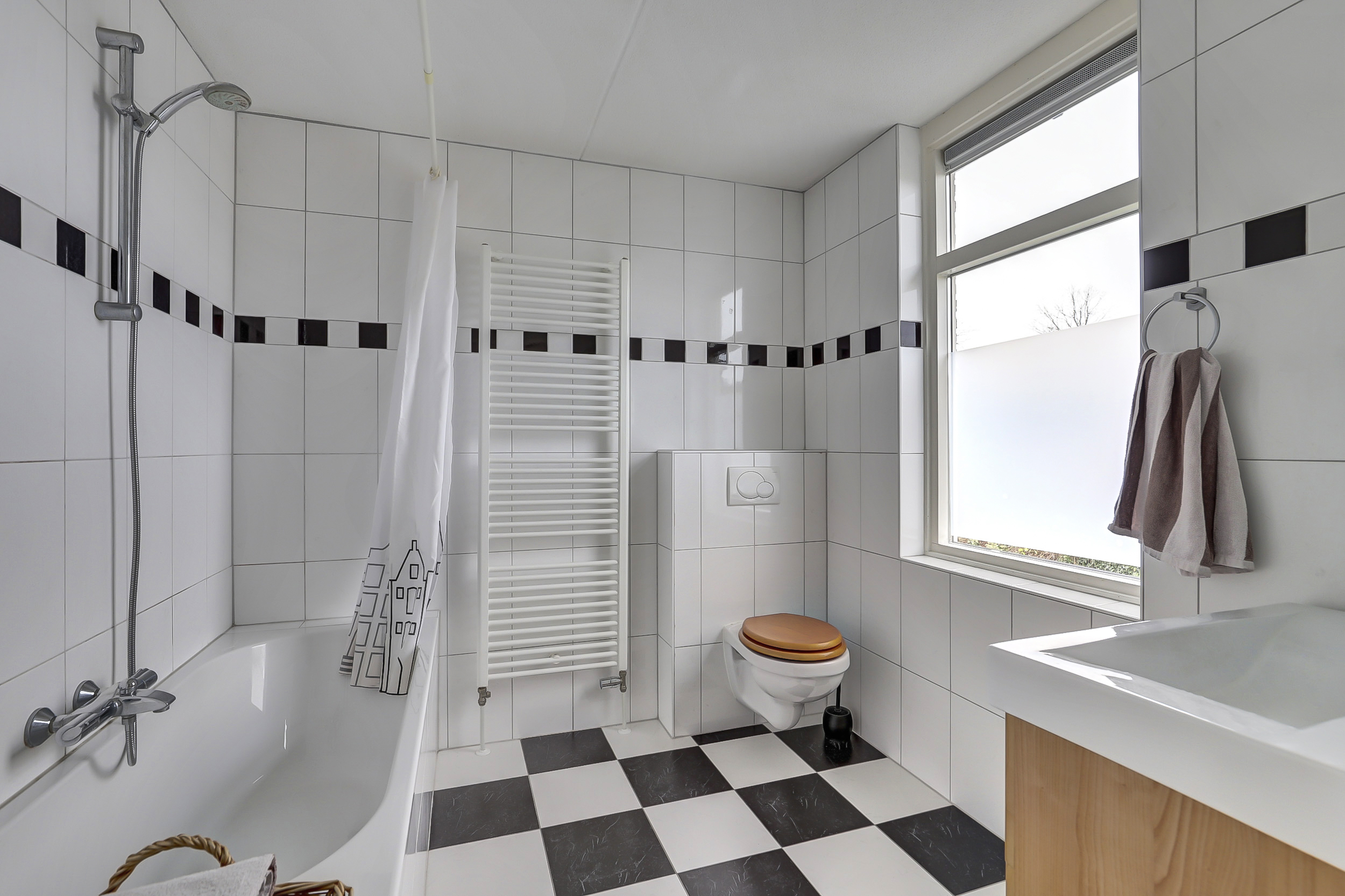De open keuken sluit direct aan op de woonkamer en kijkt uit op de achtertuin. Vanuit de keuken heb je alles binnen handbereik en is er voldoende werk- en kastruimte. Aansluitend bevindt zich de bijkeuken, met plek voor de wasapparatuur, extra bergruimte en een achterdeur naar de overkapping en tuin.