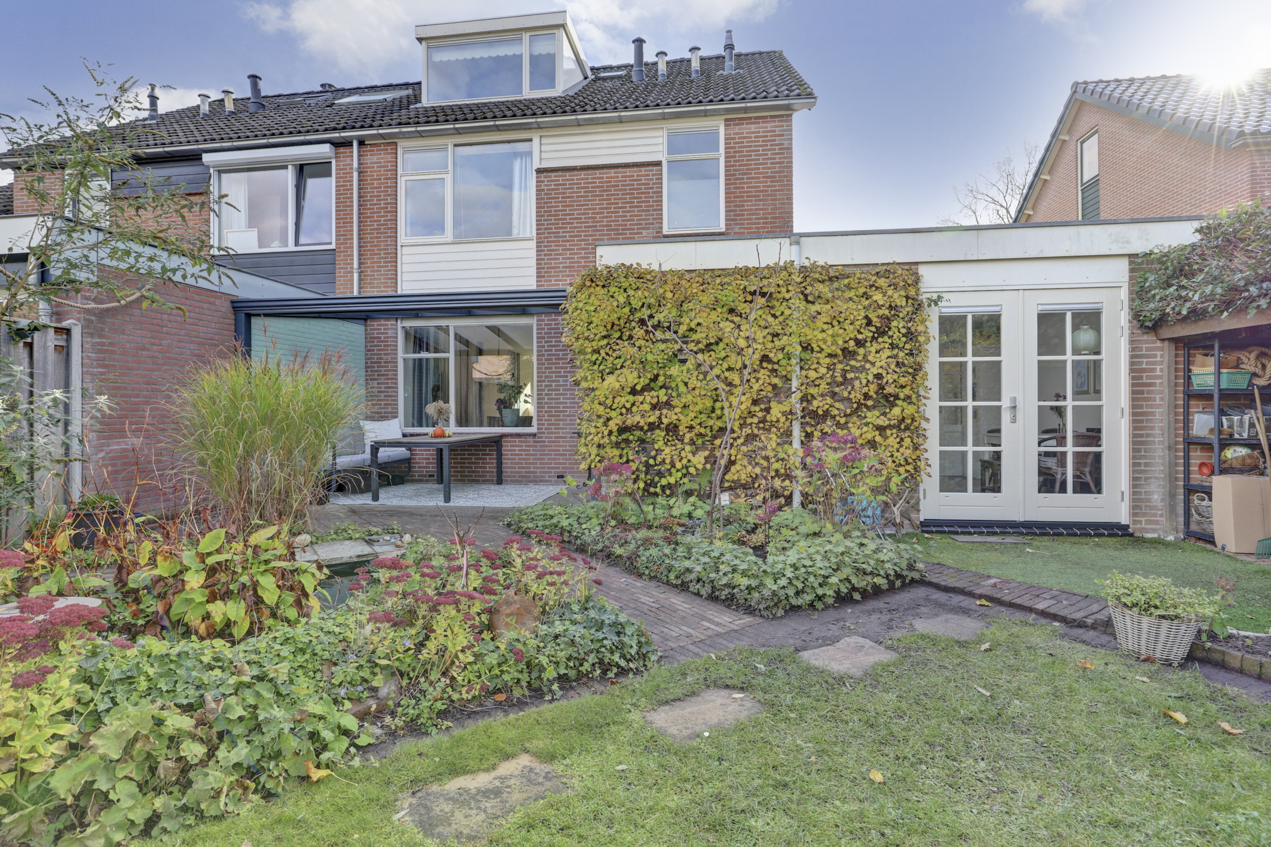 De achtertuin is ca. 20 meter diep en 10 meter breed. Het is een plek waar je het hele jaar door van kunt genieten. Diep, groen en met volop privacy: hier hoor je alleen de vogels. De ligging op het noordwesten zorgt voor zon in de middag en avond, maar ook voor fijne schaduwplekken tijdens warme dagen.
