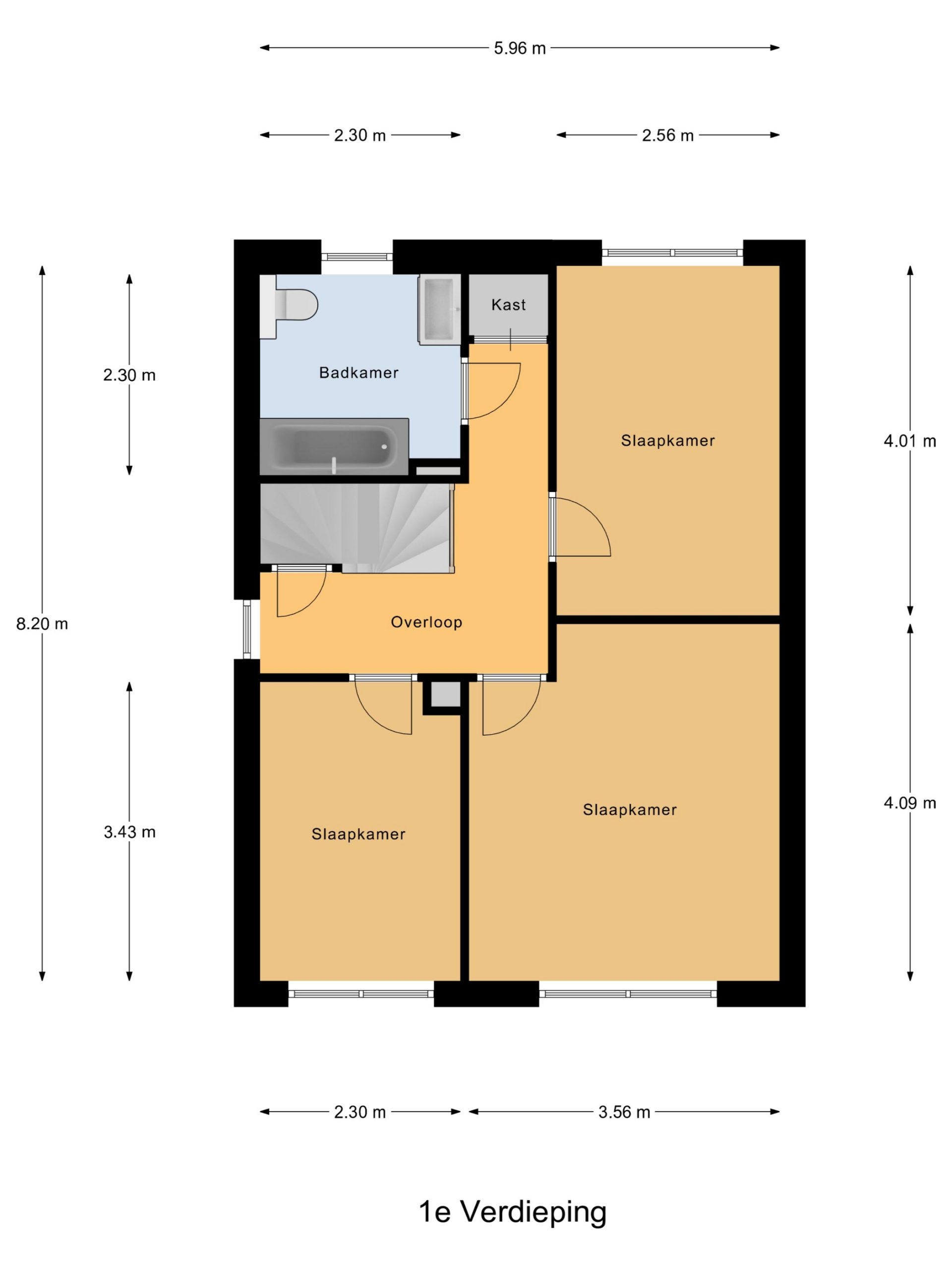 De eerste verdieping biedt drie ruime slaapkamers, allemaal licht en goed in te delen. De badkamer is praktisch ingericht met een ligbad/douche, wastafel en toilet.