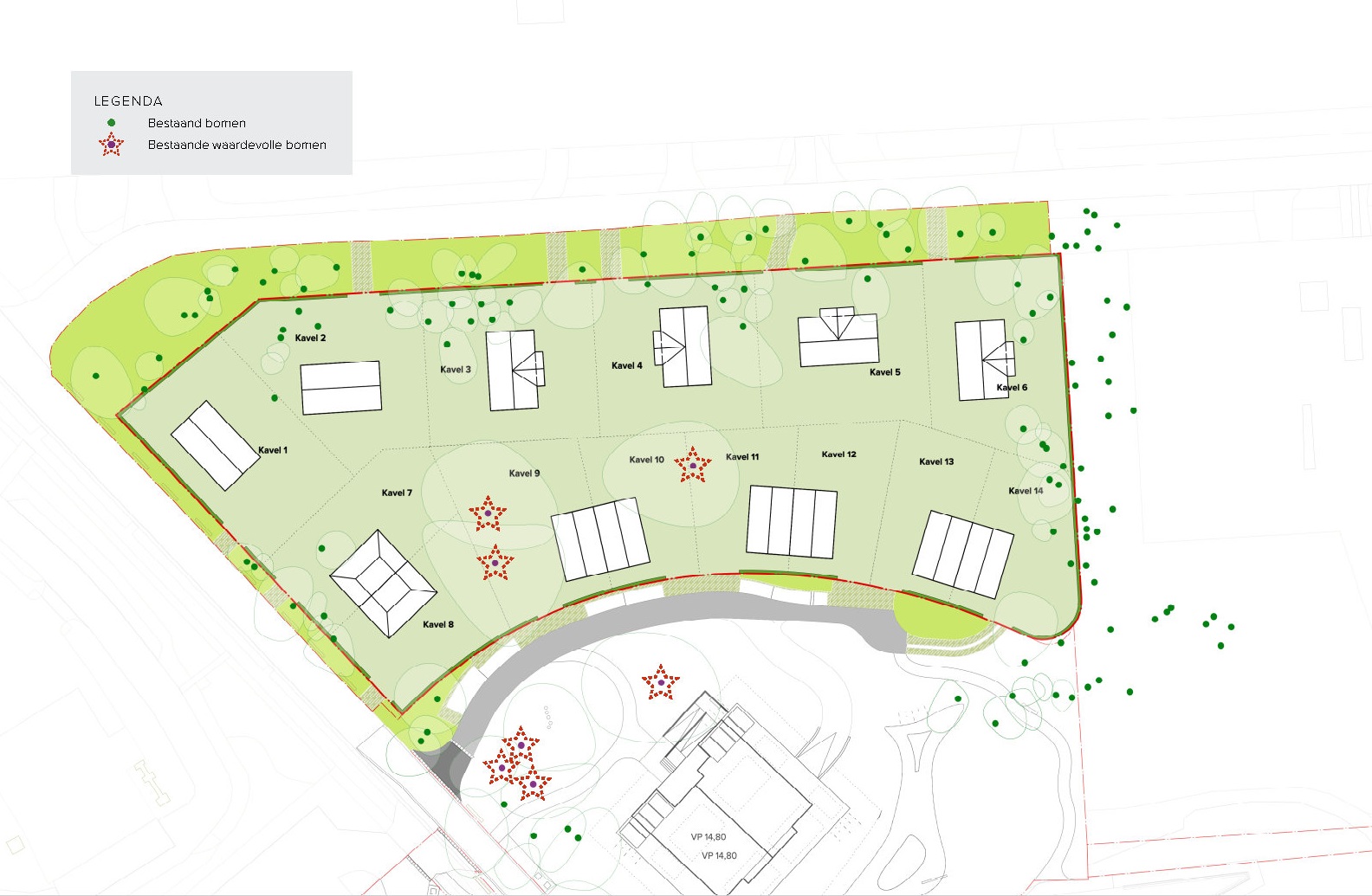 • Minimale afstand tussen bebouwing en een te behouden boom: 5 meter.