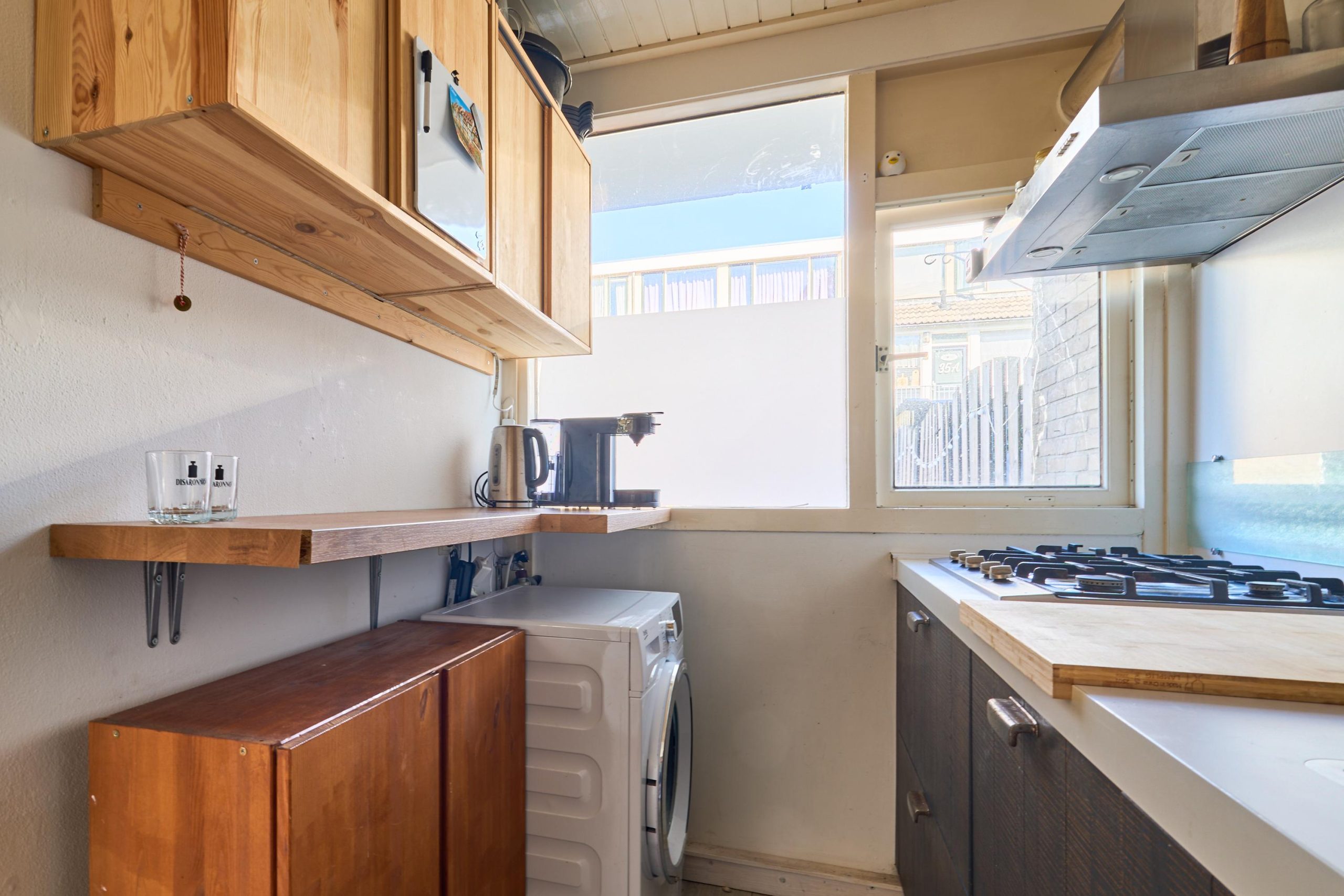 Dit appartement op de begane grond heeft een woonoppervlakte van ongeveer 50 m² en is praktisch ingedeeld. De woonkamer is licht en prettig van formaat, met voldoende ruimte voor een zithoek en eettafel. De open verbinding met de keuken zorgt voor een gezellige sfeer.