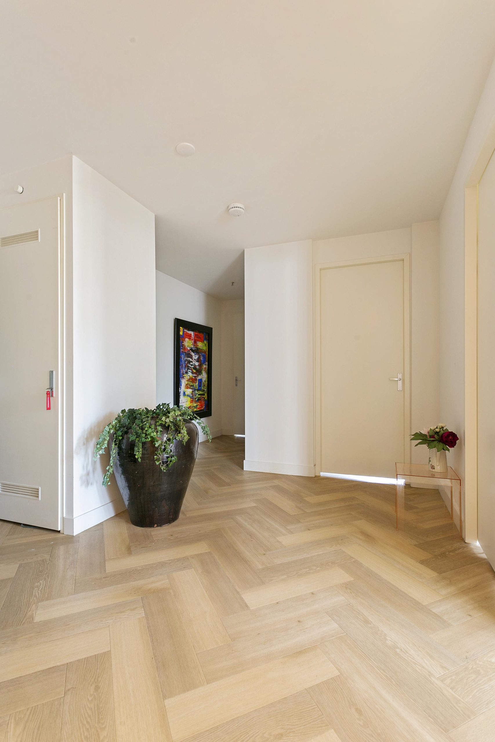 Het gehele appartement is voorzien van een fraaie pvc vloer. De royale woonkamer biedt voldoende ruimte om te ontspannen, de woonkeuken is voorzien van een luxe inbouwkeuken met kookeiland en moderne inbouwapparatuur. De badkamer welke is gelegen aan de grootste slaapkamer heeft een luxe uitstraling dankzij de moderne afwerkingen en materialen en is voorzien van een ligbad, inloopdouche, dubbele wastafel en toilet. Aan de voorzijde is een tweede slaapkamer gesitueerd. Deze kan bijvoorbeeld als logeerkamer worden gebruikt omdat deze ook over een eigen badkamer beschikt. Het appartement beschikt over twee balkons.