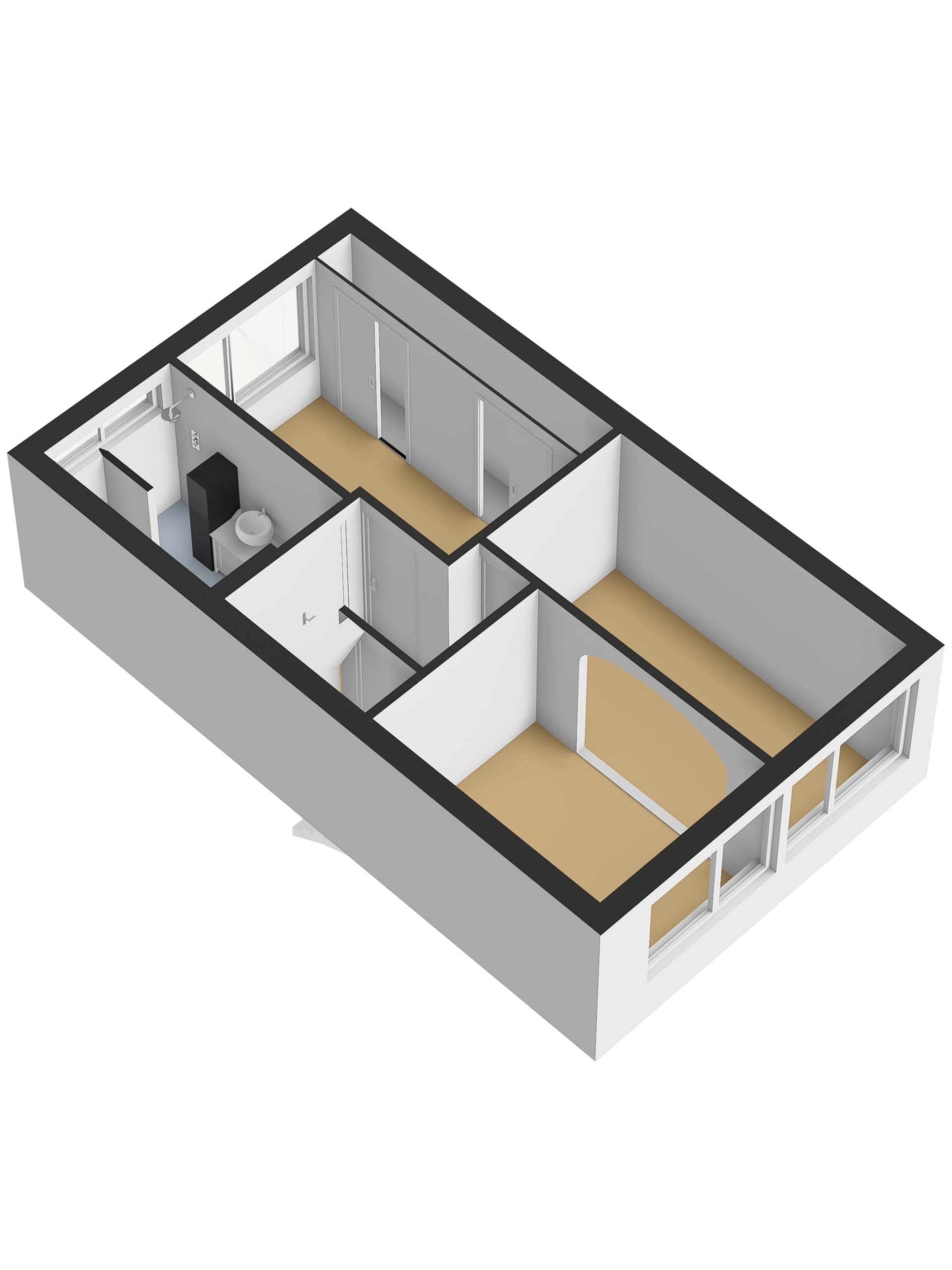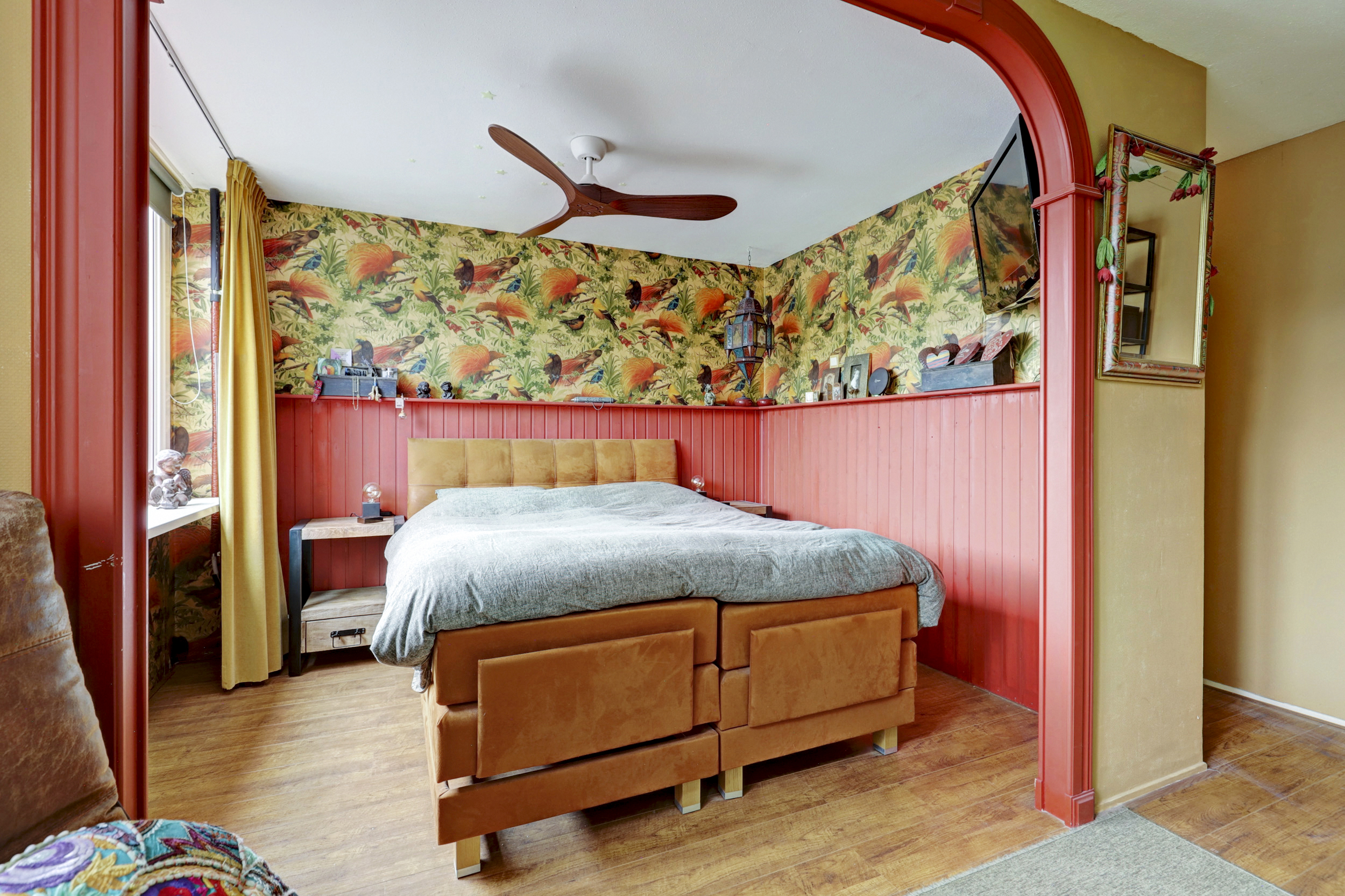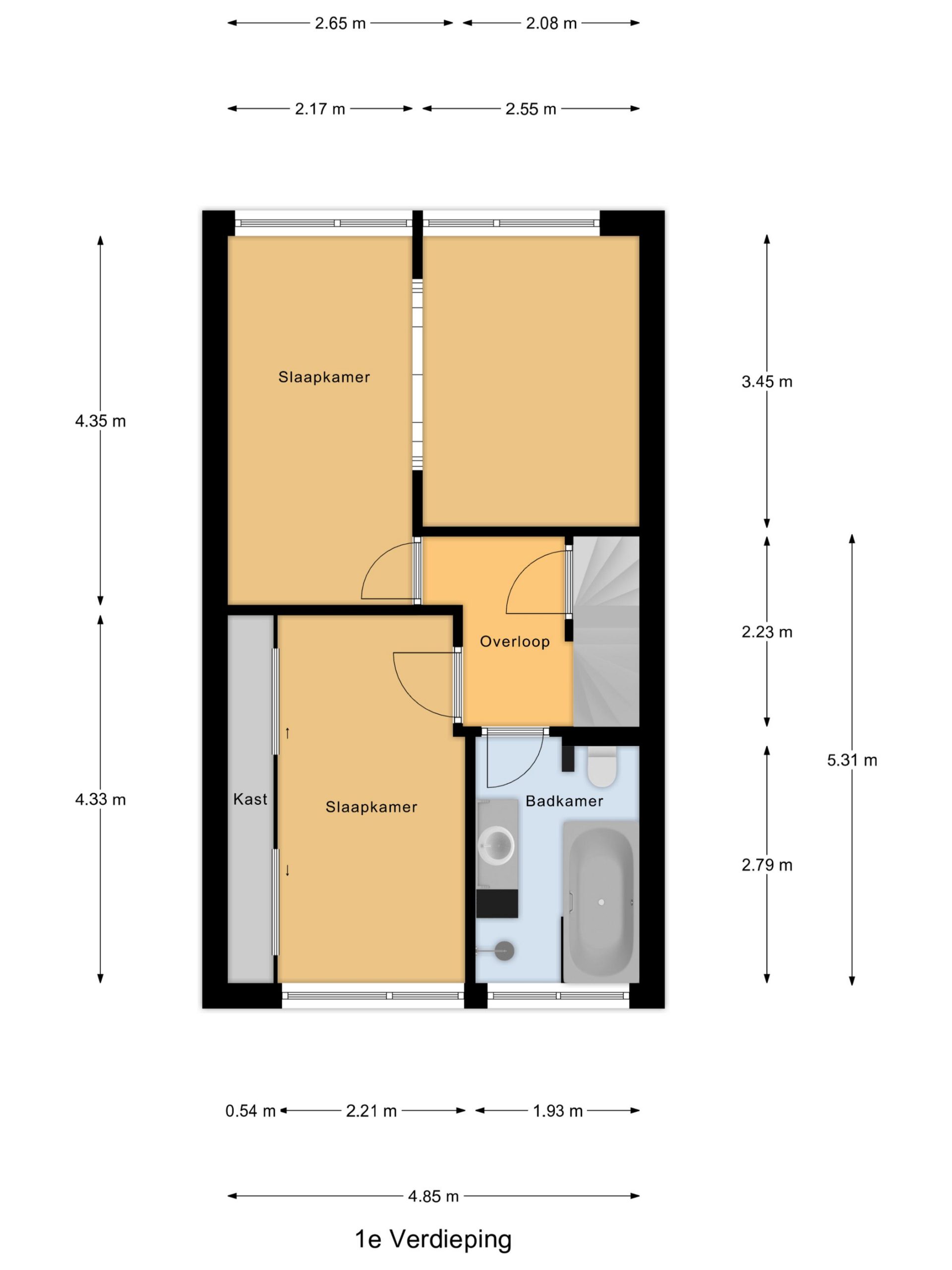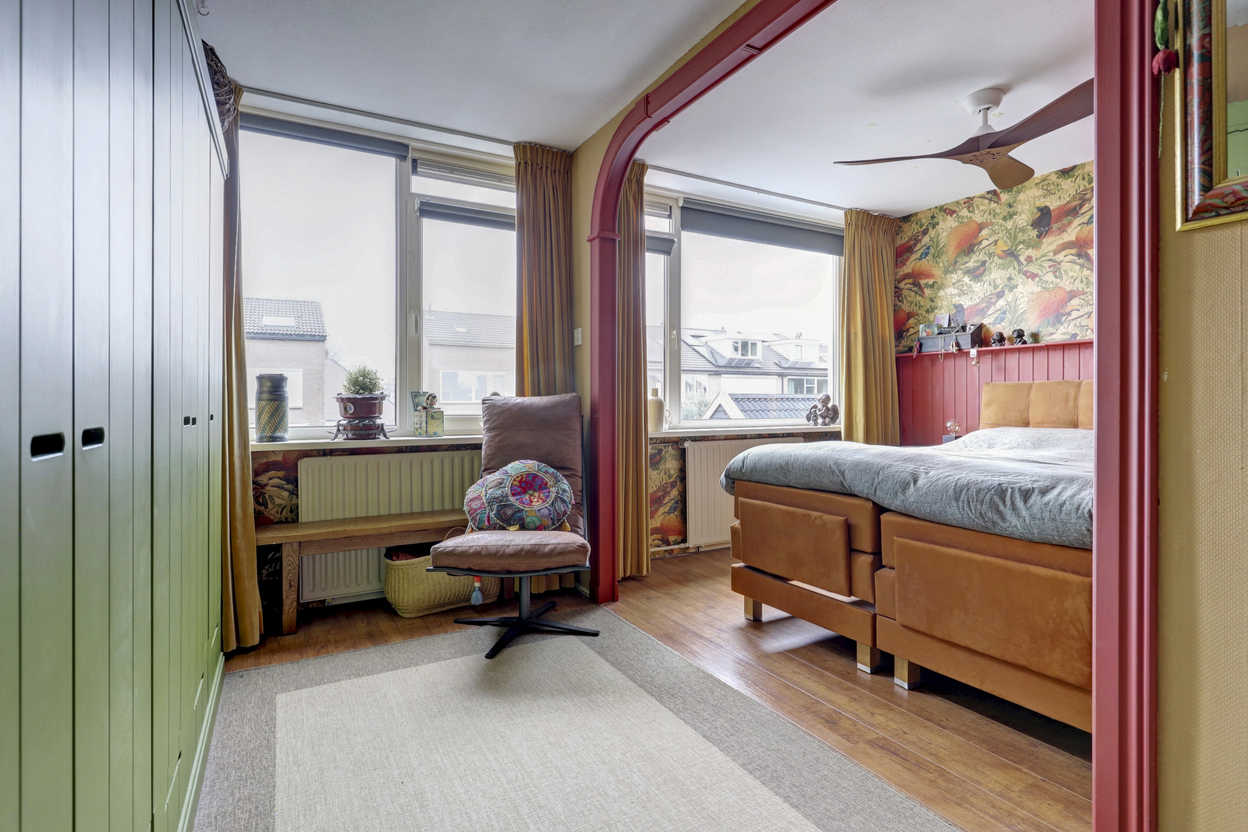 Op de eerste verdieping bevinden zich twee slaapkamers, waarvan één zeer royaal van opzet is. Deze ruime slaapkamer is ontstaan doordat twee slaapkamers zijn samengevoegd tot één. Indien gewenst is deze ruimte eenvoudig weer terug te brengen naar twee afzonderlijke slaapkamers, waardoor de indeling flexibel is en kan worden aangepast aan jouw woonwensen.