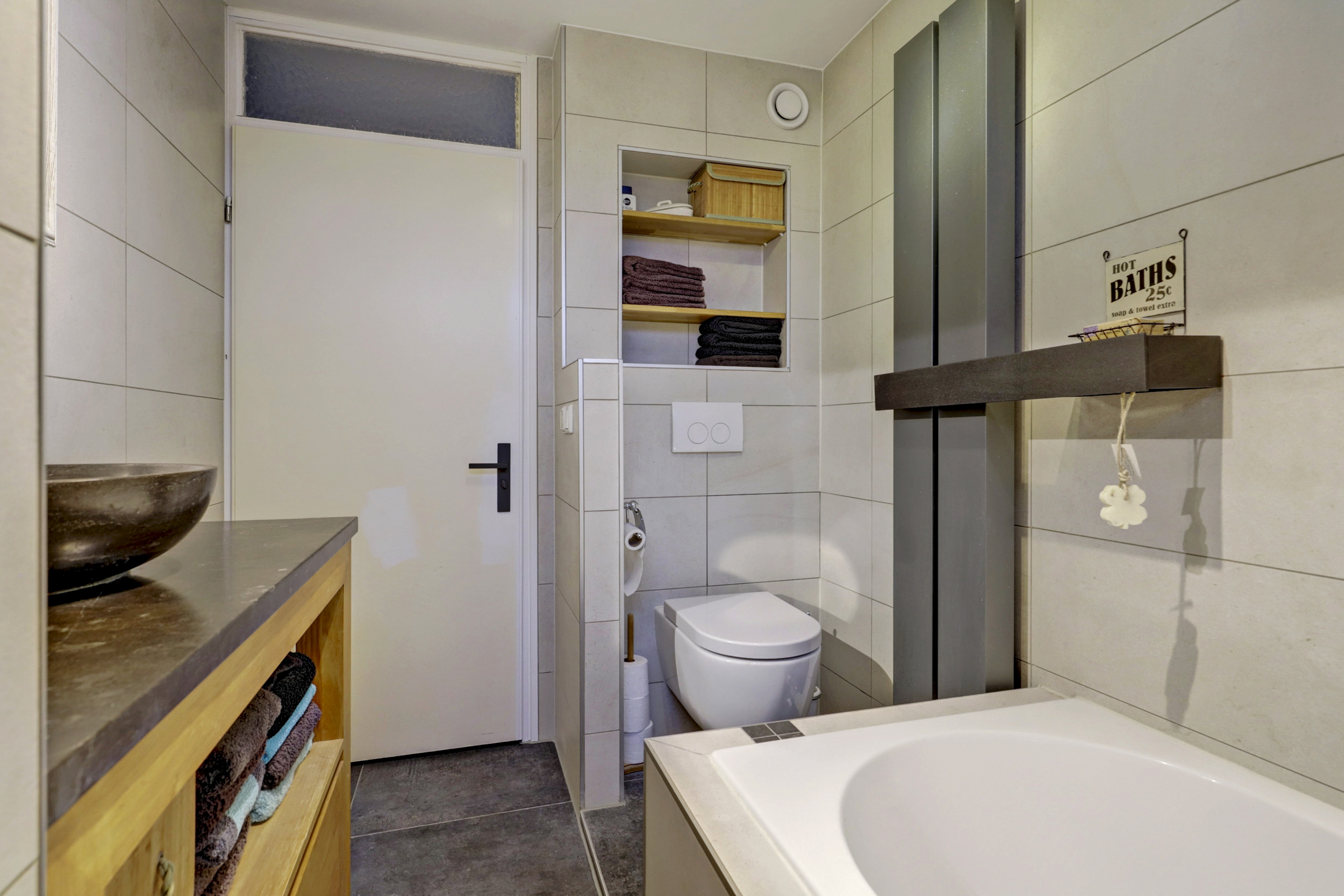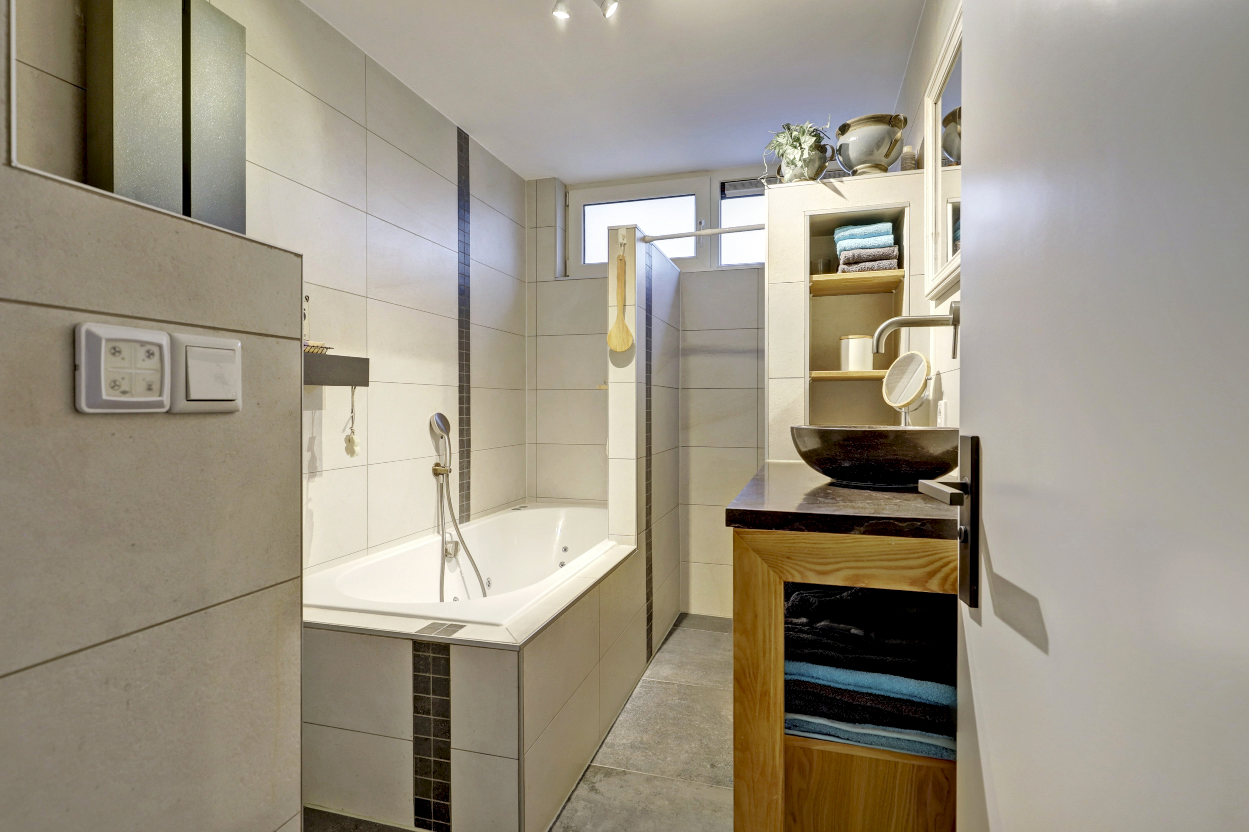 De badkamer is ruim, verzorgd en praktisch ingericht en beschikt over een heerlijke whirlpool, een inloopdouche, een wastafelmeubel en een tweede toilet. Daarmee is de badkamer van alle gemakken voorzien.