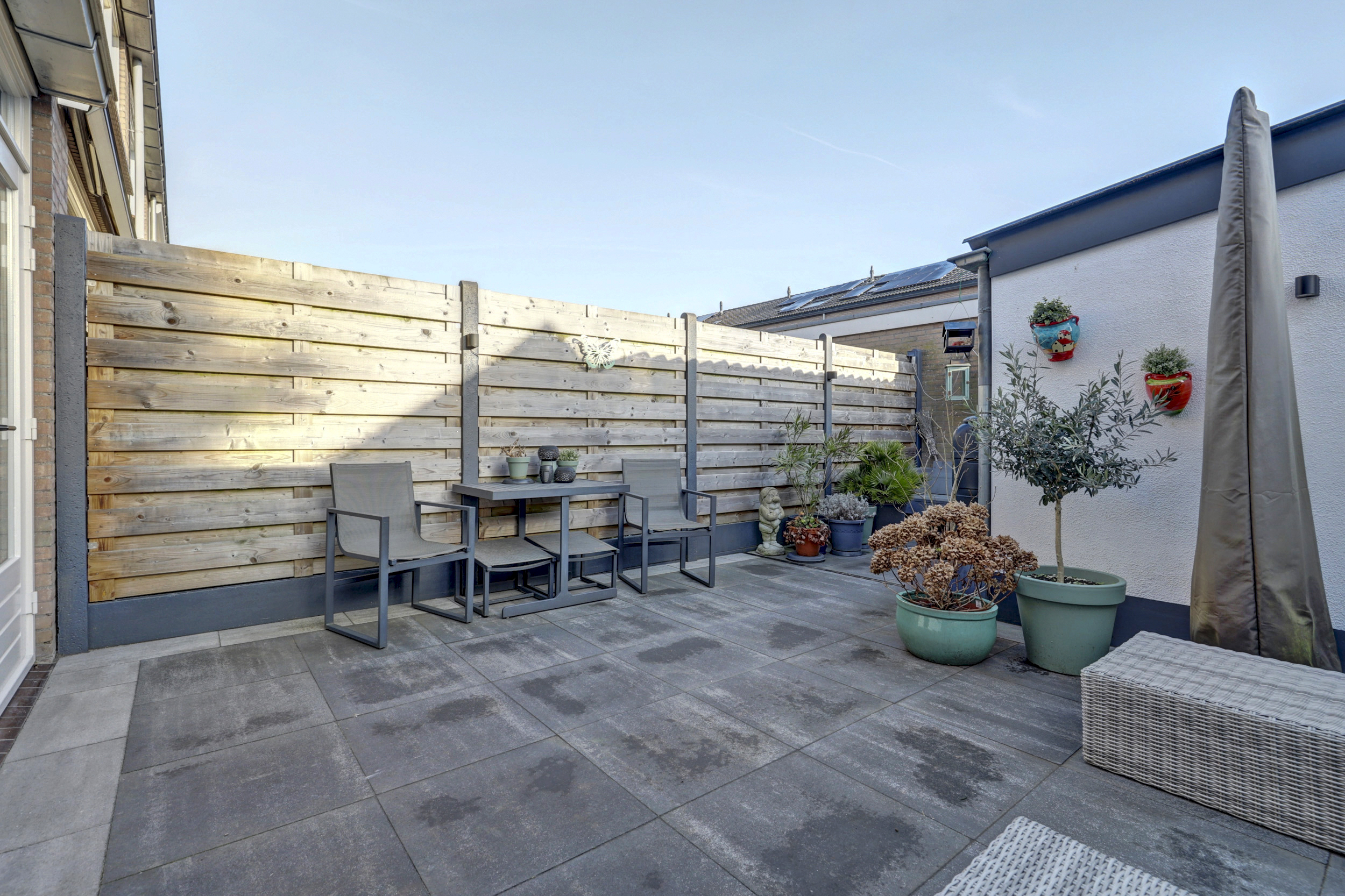 De op het oosten gelegen tuin is een heerlijke plek om te ontspannen en te genieten van de zon. Dankzij de fijne ligging is het een prettige buitenruimte waar je in alle rust kunt zitten. Daarnaast beschikt de tuin over een berging, ideaal voor het stallen van fietsen en het opbergen van diverse spullen. Ook is er een praktische achterom aanwezig.
