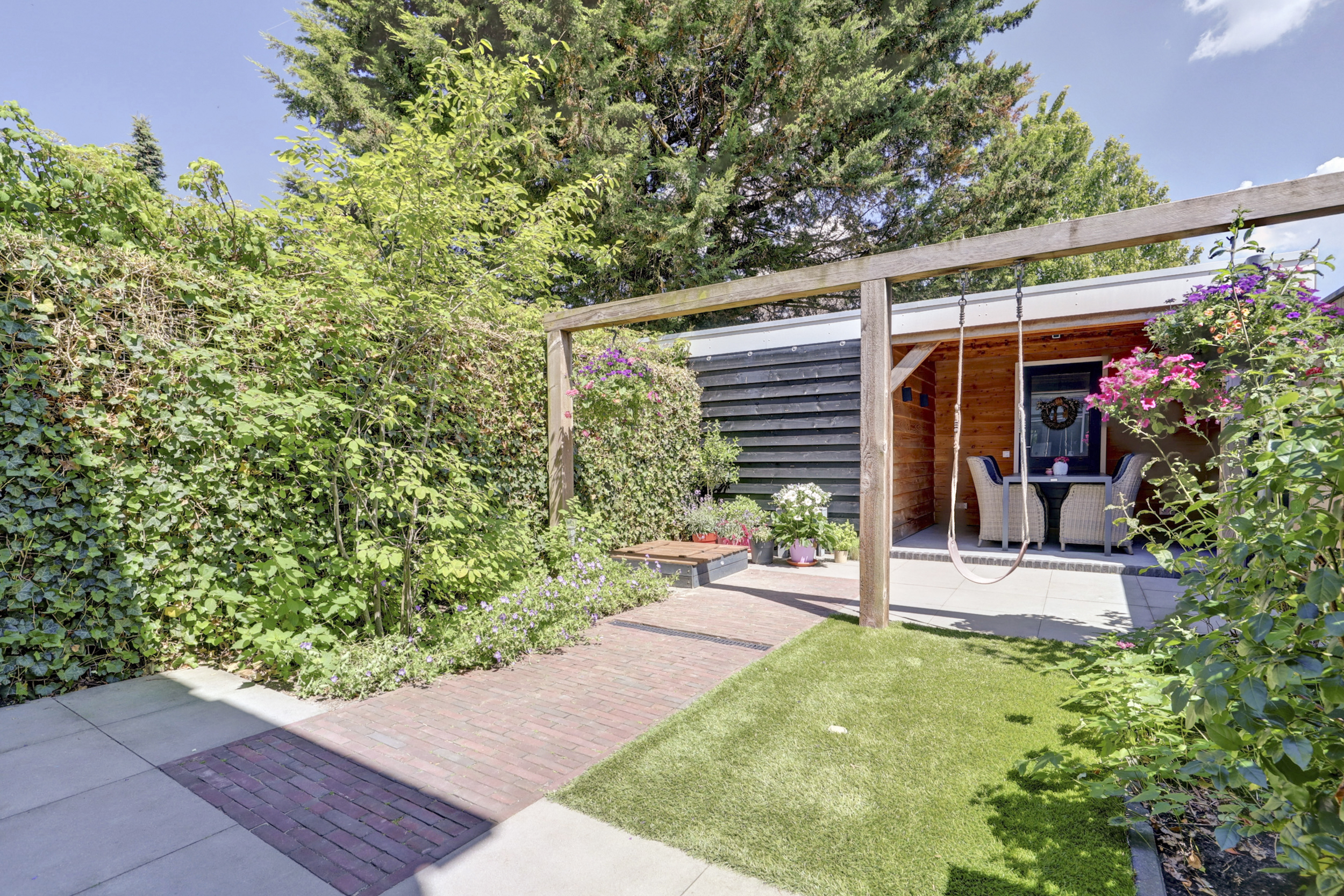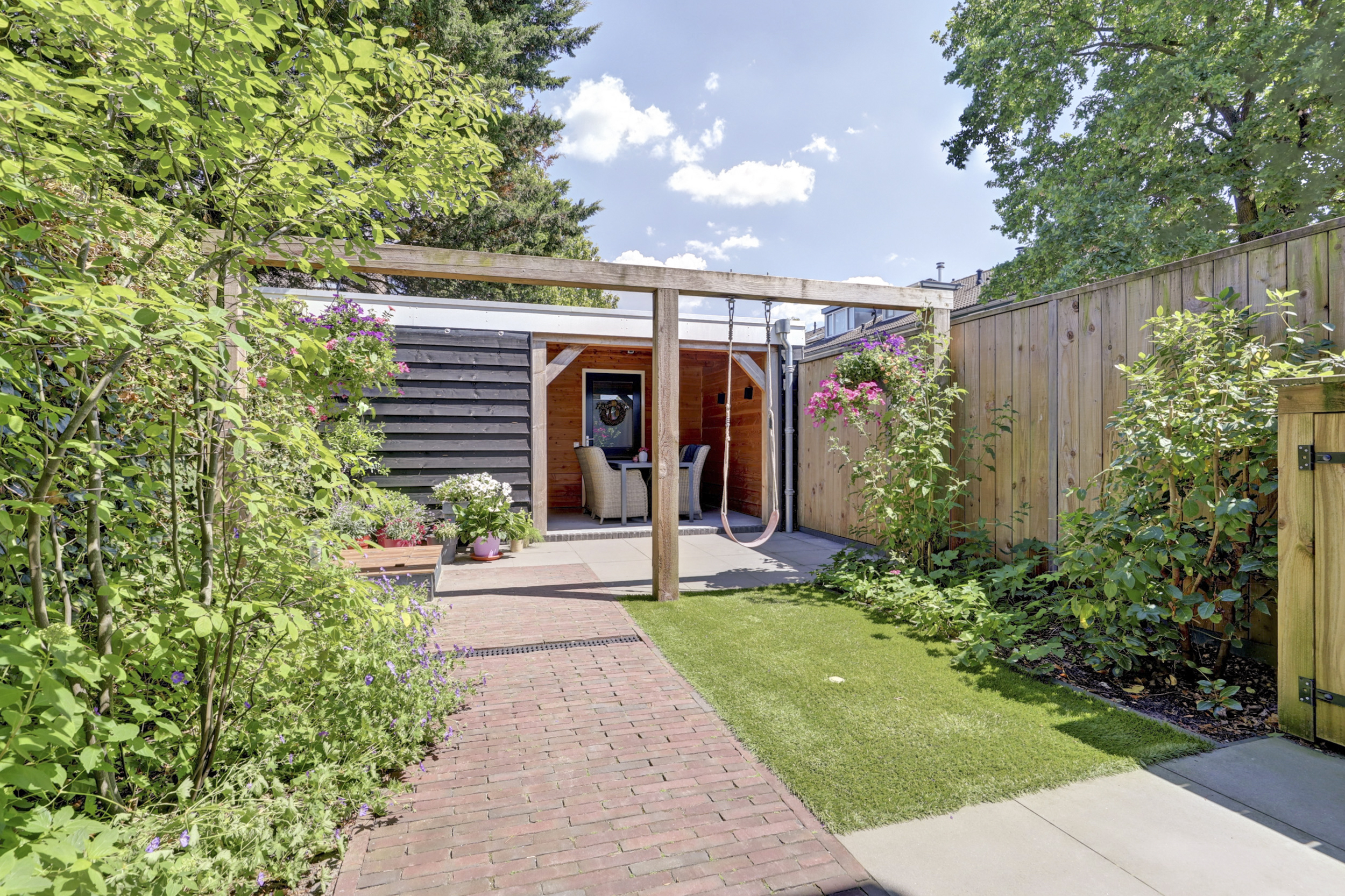 • Nette achtertuin met overkapping en ruime berging