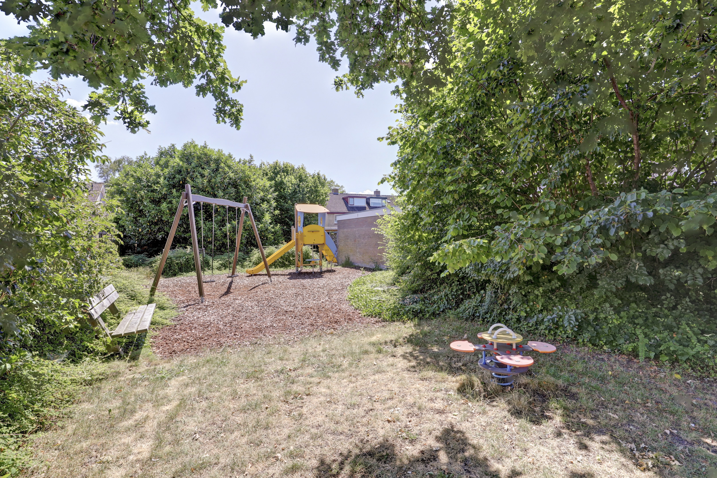 De tuin, gelegen op het oosten, is een heerlijke plek om te zitten en te genieten van de zon. Daarnaast is er een overkapping en een ruime berging (voormalige garage) waar je je spullen netjes en uit het zicht kunt opbergen. Aan de voorzijde van de woning vind je bovendien nog een tweede berging.