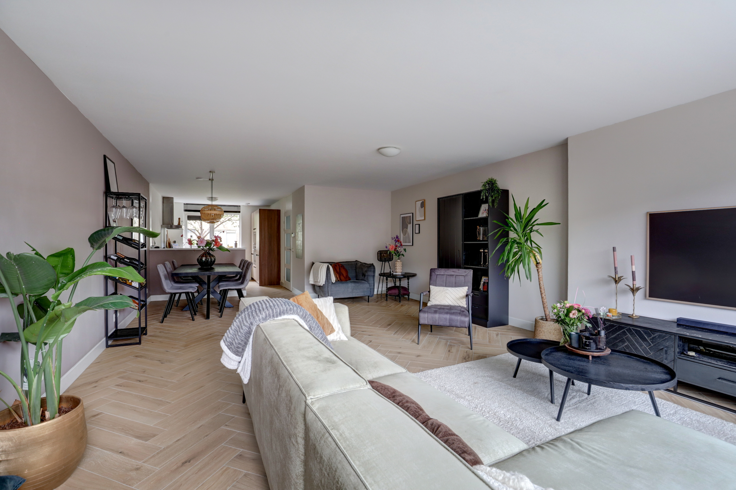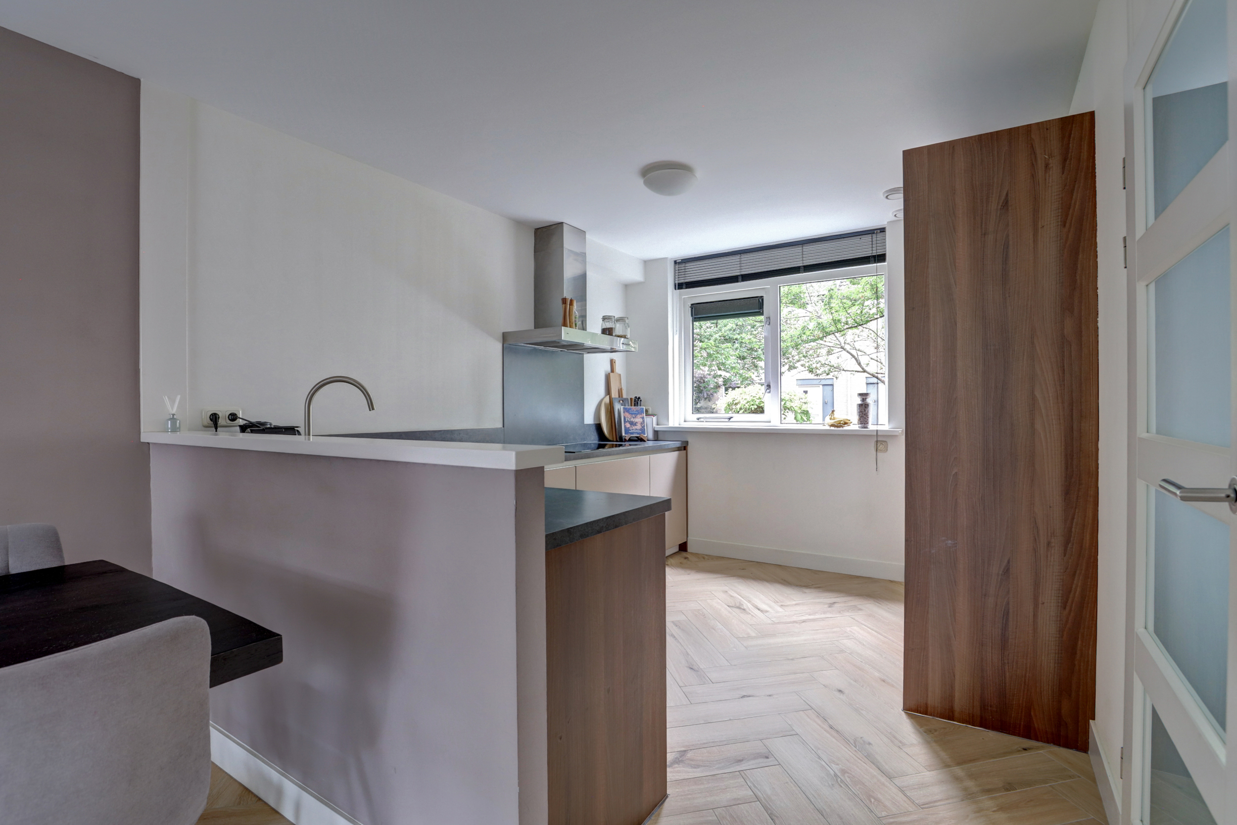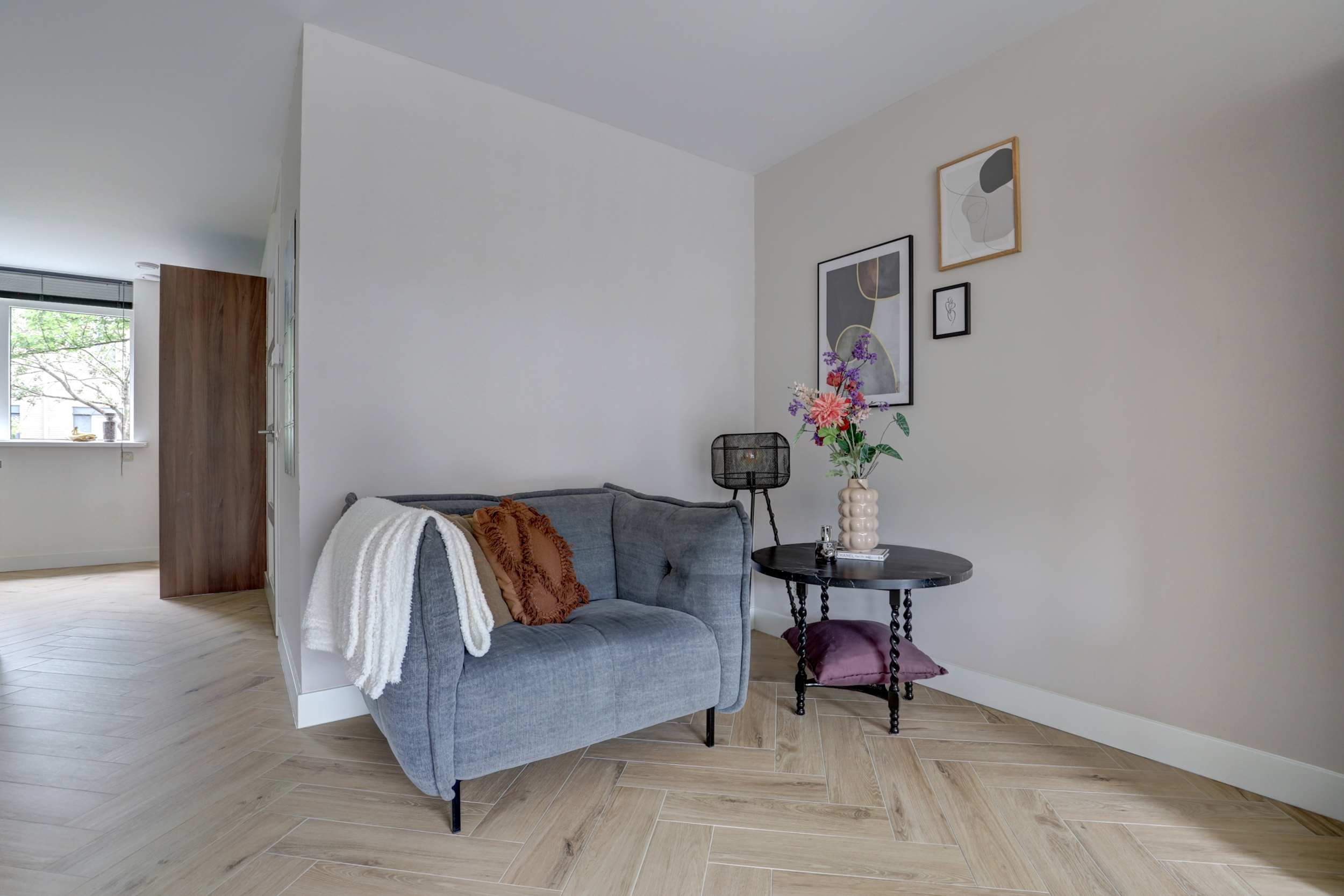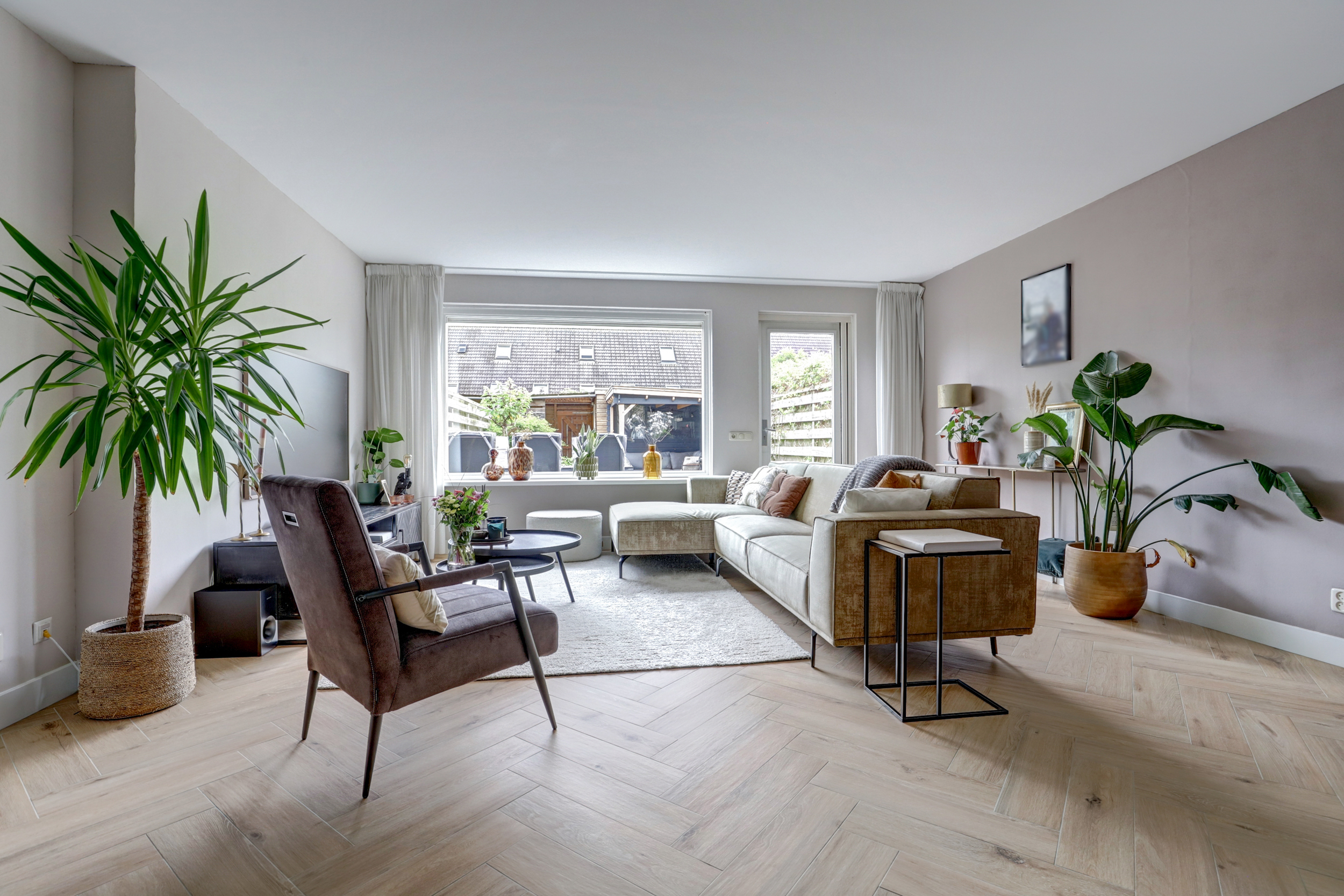 - Strak afgewerkt: gestucte wanden en visgraatvloer op de begane grond