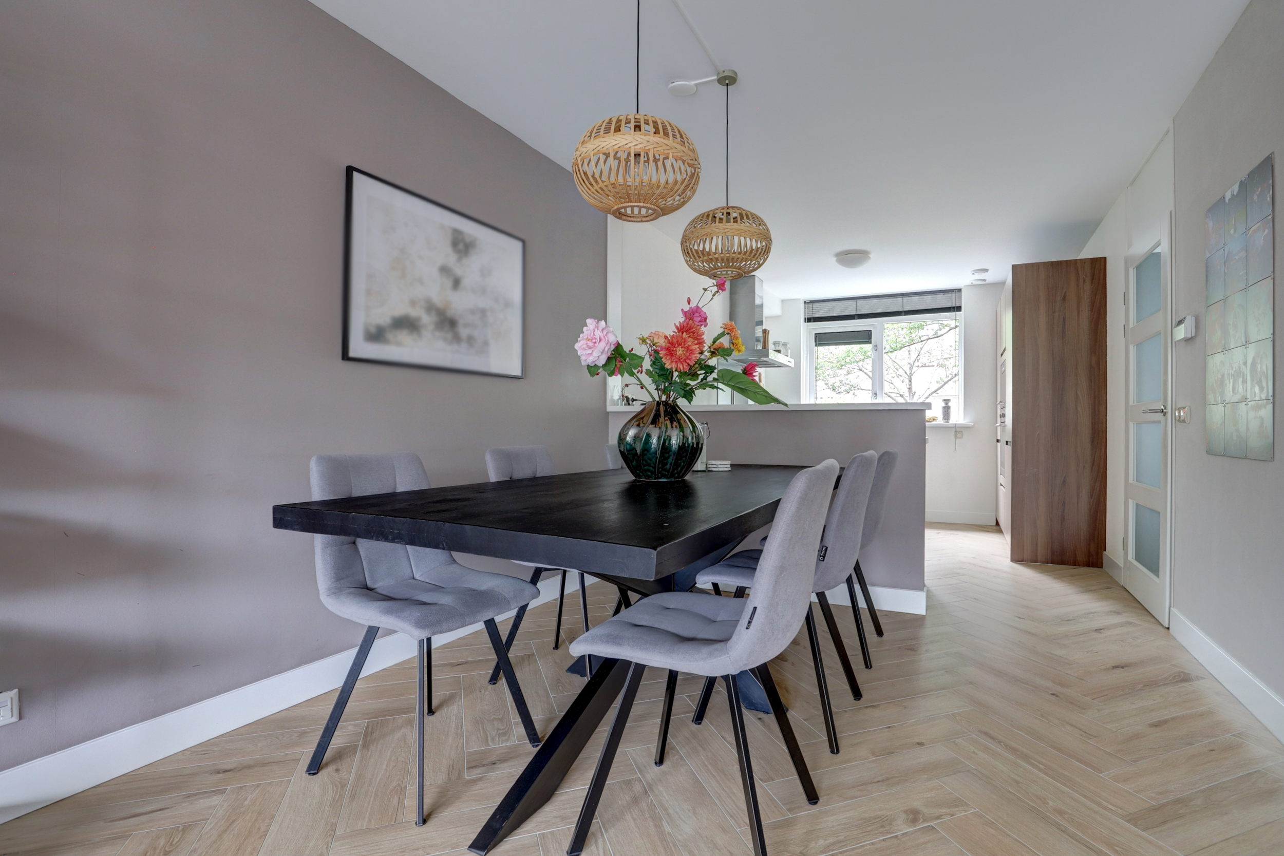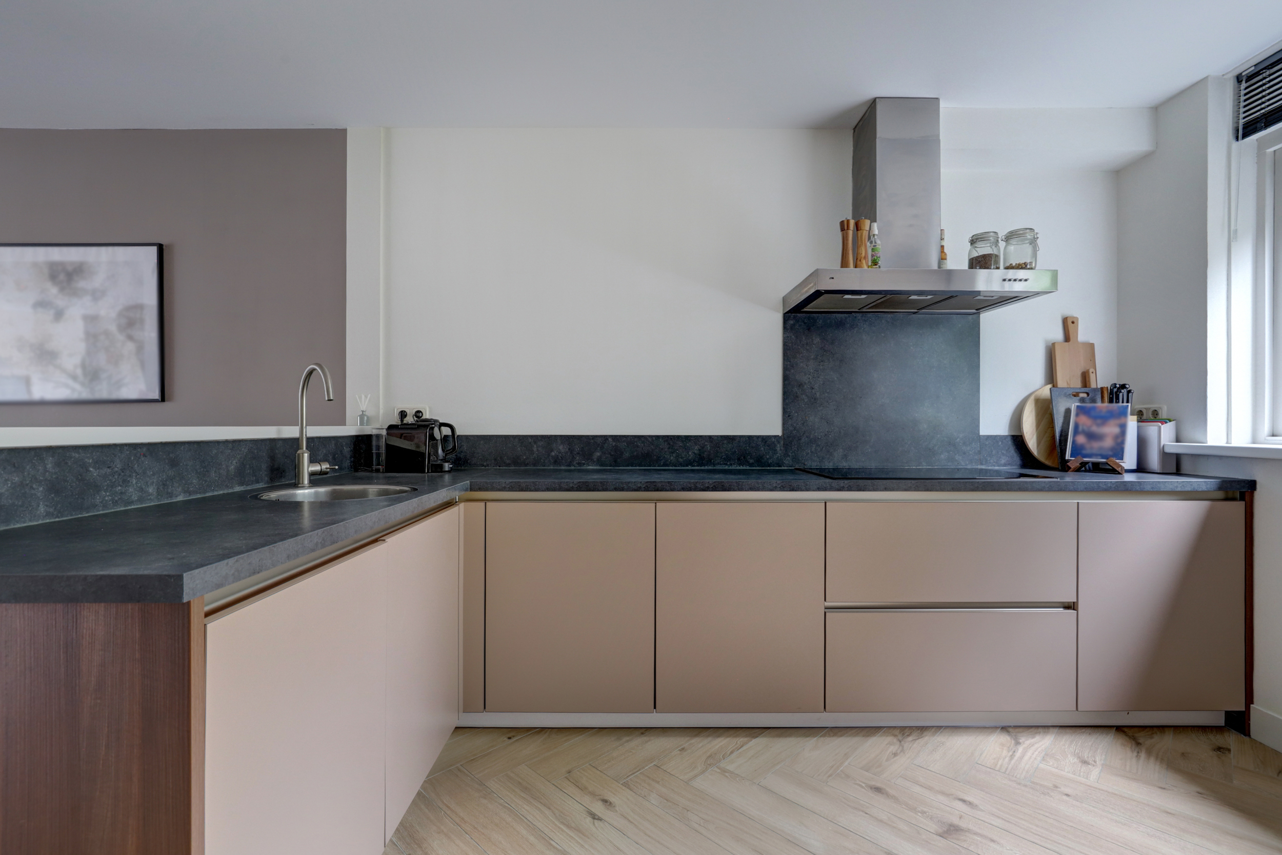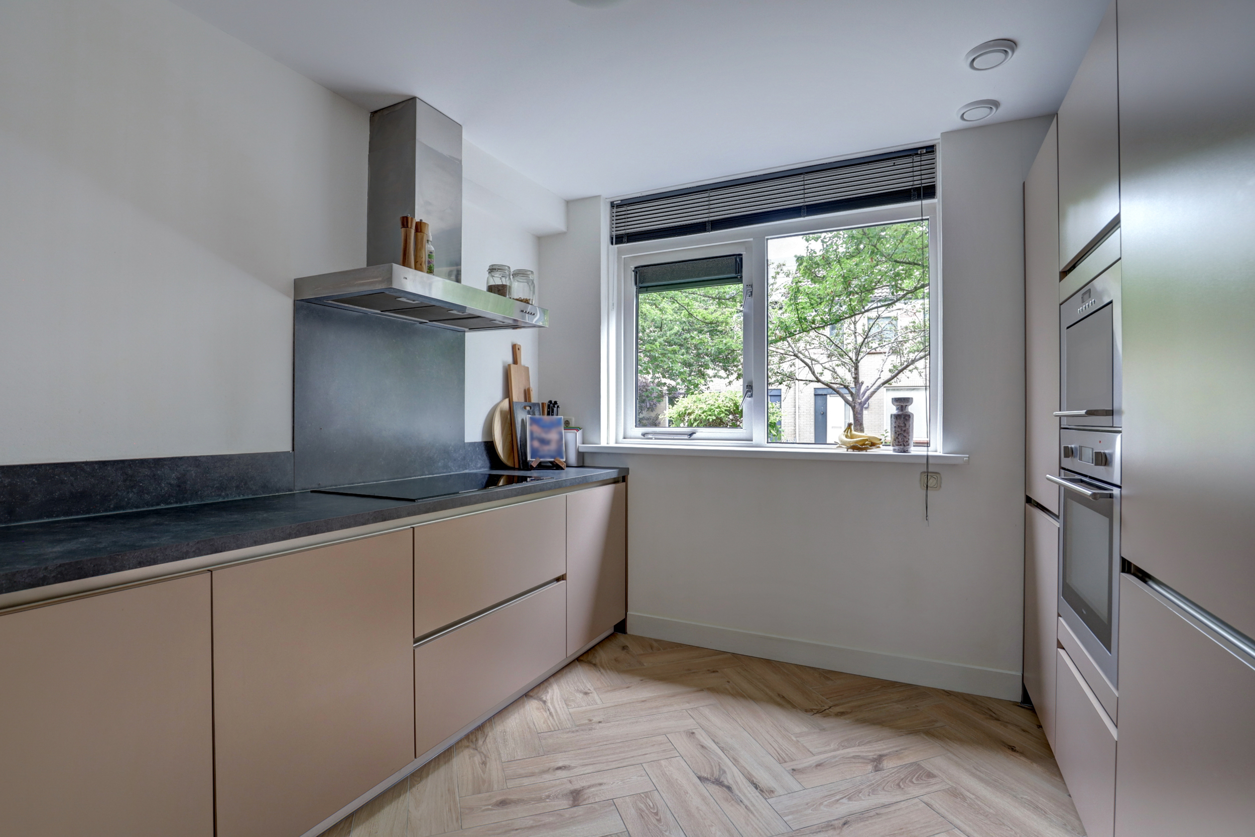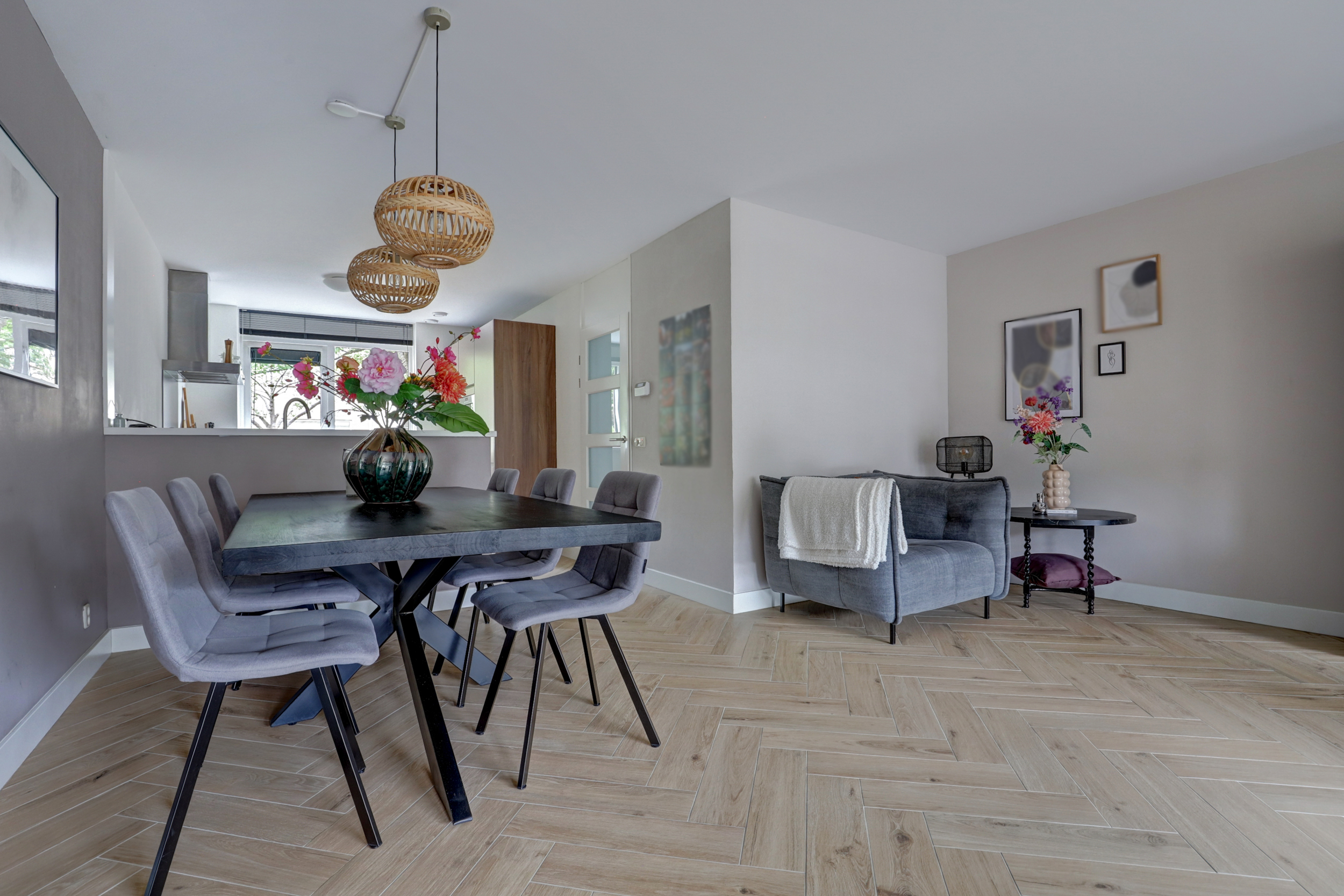 - Strak afgewerkt: gestucte wanden en visgraatvloer op de begane grond