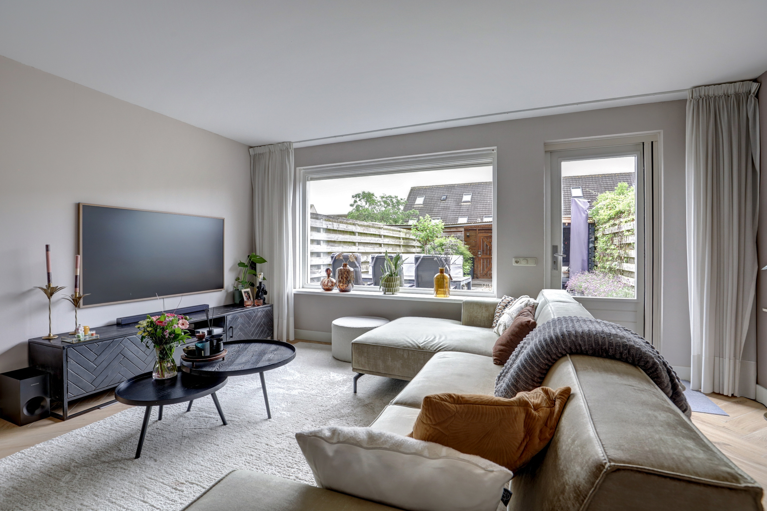De woning biedt met 122 m² woonoppervlak en een perceel van 158 m² een praktische indeling en verrassend veel ruimte. Op de begane grond vind je een lichte woonkamer met grote raampartijen waardoor het daglicht rijkelijk naar binnen valt. De strak gestucte wanden en de visgraatvloer geven de ruimte een moderne en verzorgde uitstraling. De vloerverwarming zorgt voor een aangenaam binnenklimaat en extra comfort.