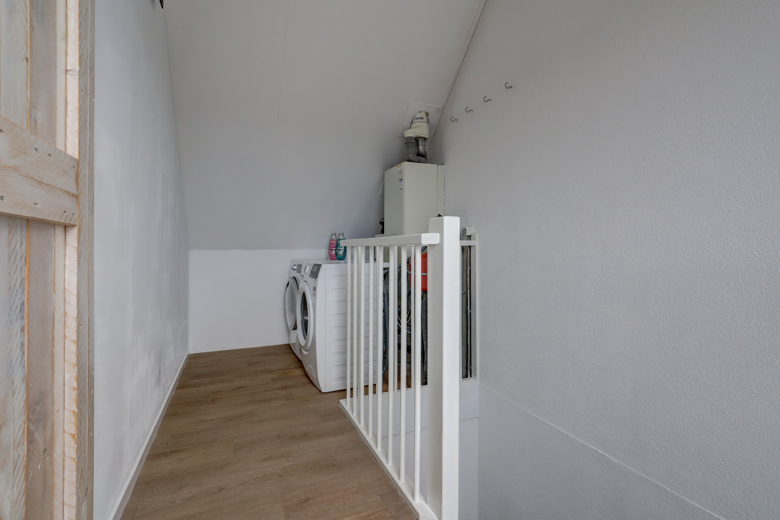 Overloop met wasmachine-aansluiting en Cv-installatie, één slaapkamer.