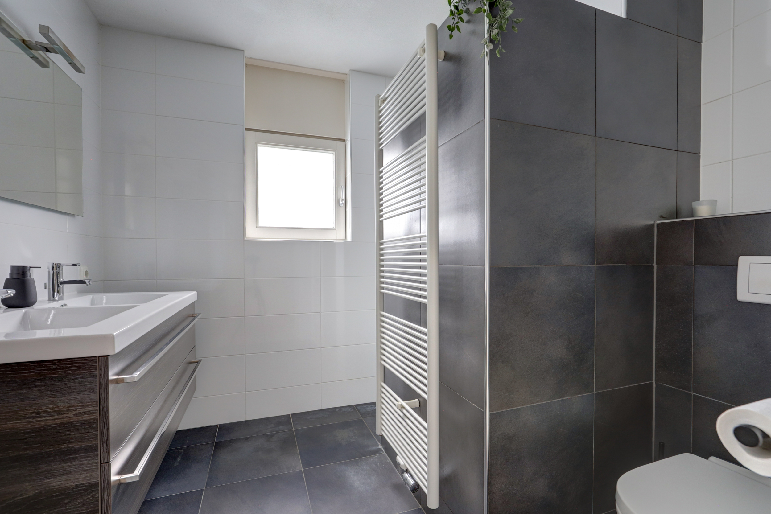 - Luxe, moderne badkamer met dubbel wastafelmeubel, inloopdouche en toilet