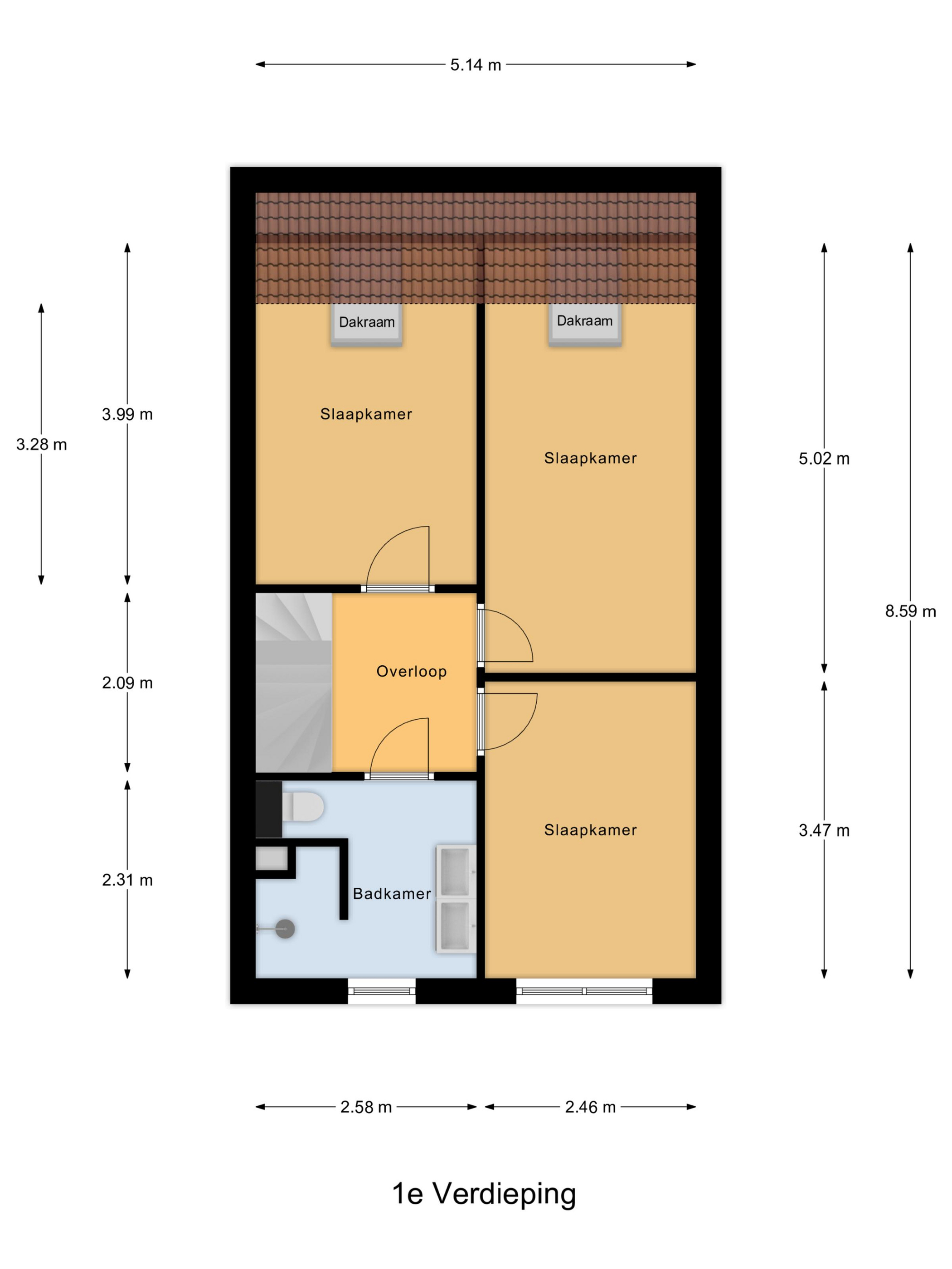 Op de eerste verdieping zijn drie slaapkamers aanwezig, De badkamer is modern en compleet uitgevoerd met een dubbele wastafel, ruime inloopdouche en toilet. De tweede verdieping biedt de master bedroom met airco, maar die ook naar wens kunt gebruiken als werkkamer of speelkamer.