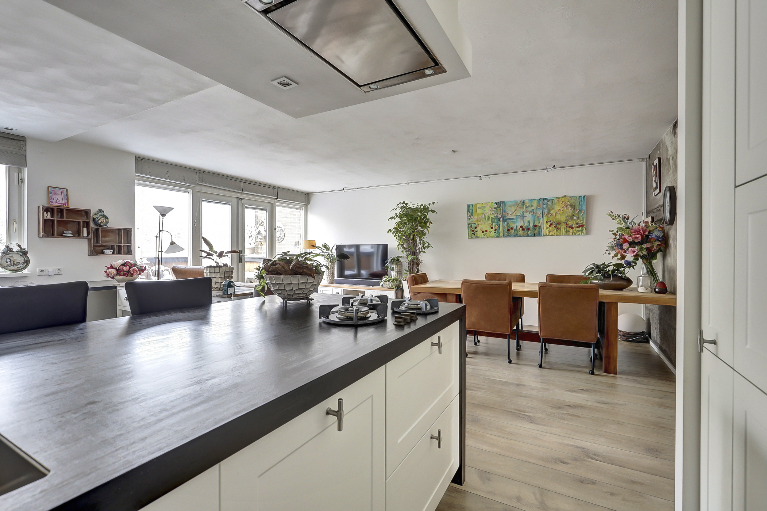 Bij binnenkomst valt direct de lichtinval en de open indeling op. De woonkamer biedt voldoende ruimte voor een comfortabele zithoek en eettafel en staat in open verbinding met de keuken. Het kookeiland vormt het hart van de ruimte en maakt de keuken praktisch én gezellig in gebruik.