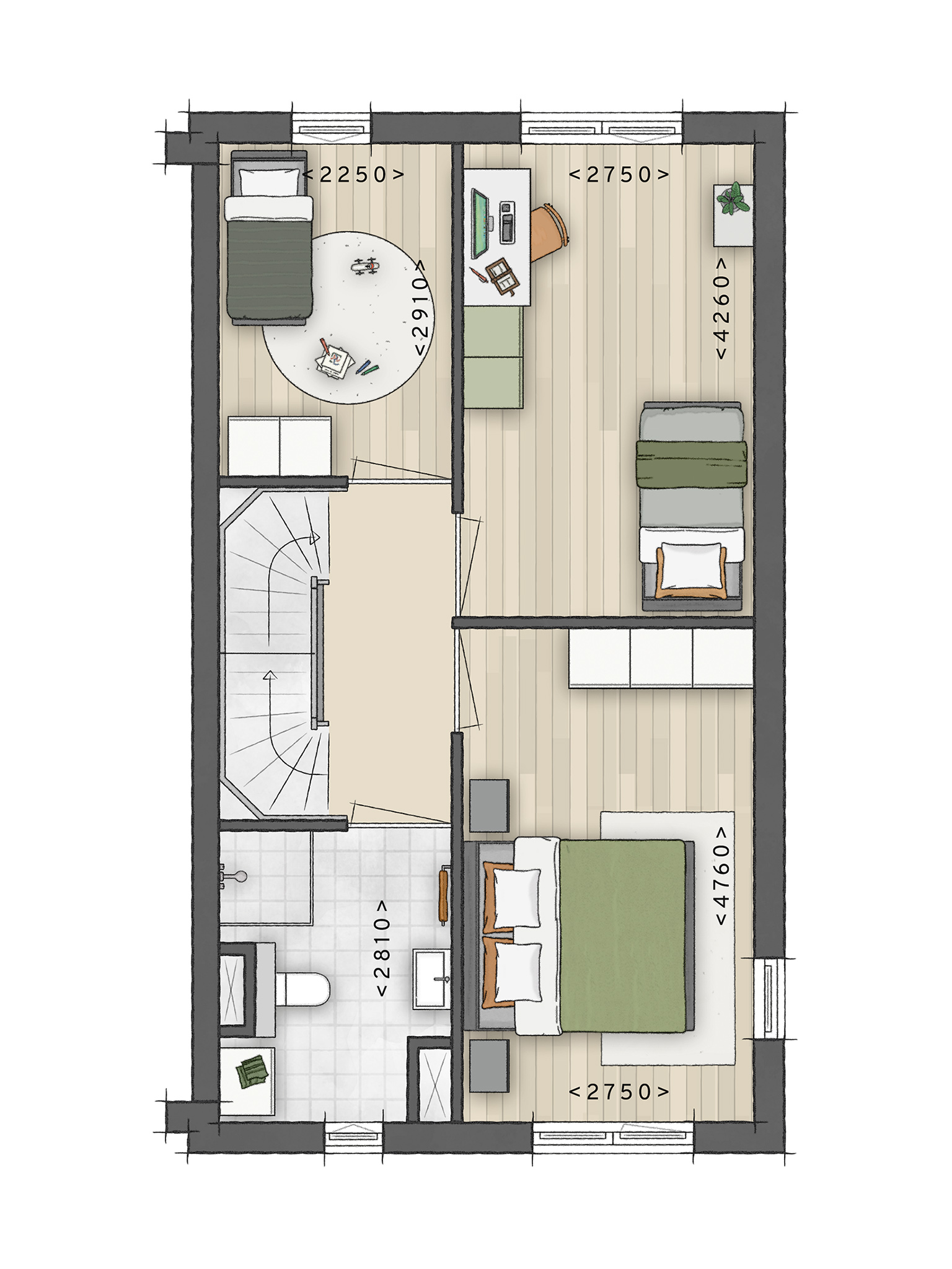 Boven vind je nog meer ruimte. Op de eerste verdieping wachten 3 lichte slaapkamers op je en een compleet ingerichte badkamer met douche, toilet en wastafel. De tweede verdieping is een fijne extra ruimte: een open zolder die je helemaal naar eigen wens kunt inrichten. Denk aan een werkplek, logeerkamer of sportruimte. Verder is hier een afgesloten techniekruimte met plek voor je wasmachine en droger. En natuurlijk is de woning helemaal klaar voor de toekomst met energielabel A++++: gasloos, uitstekend geisoleerd, voorzien van zonnepanelen en een duurzame bodemwarmtepomp. Dankzij de vloerverwarming is het bovendien het hele jaar door comfortabel in huis.