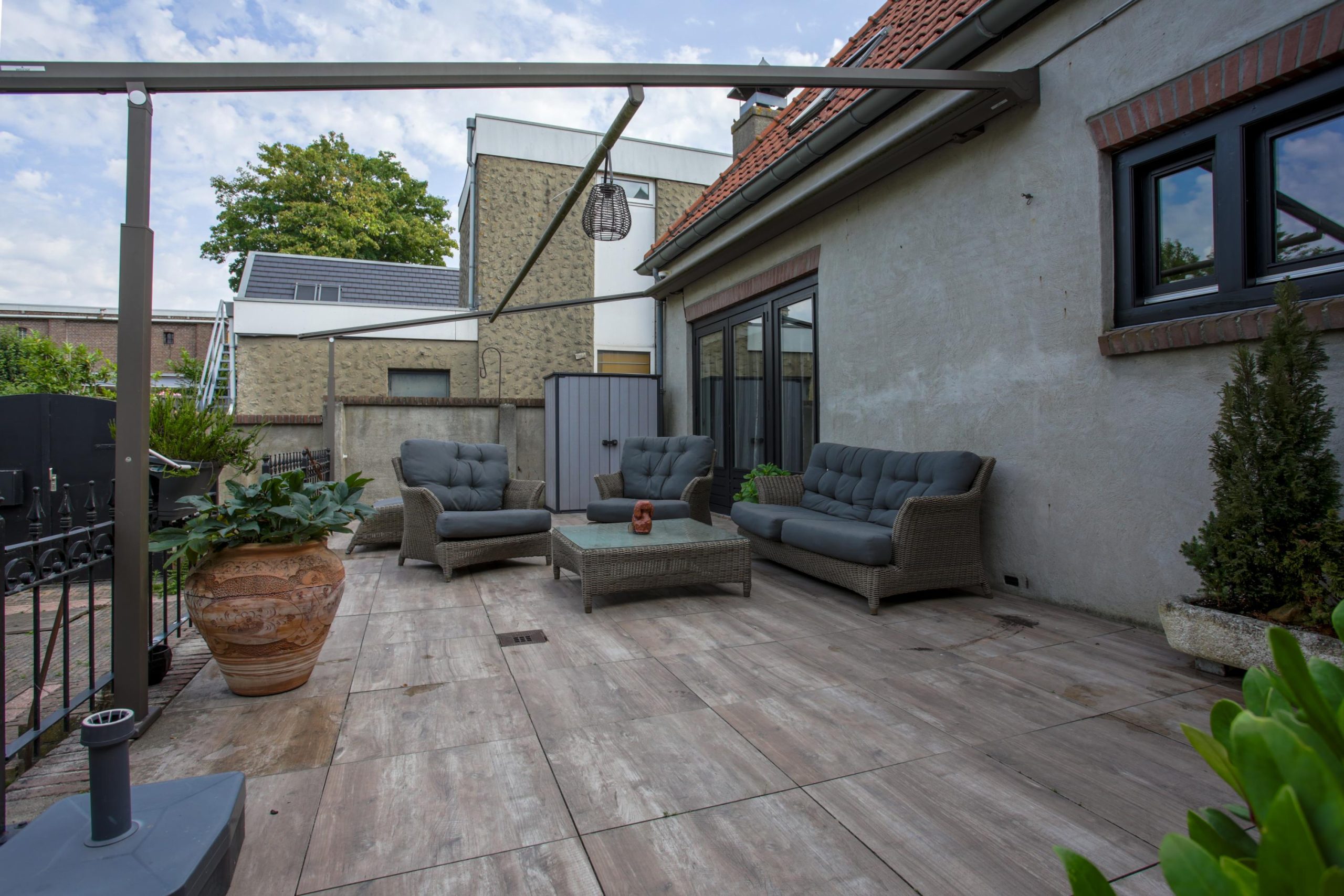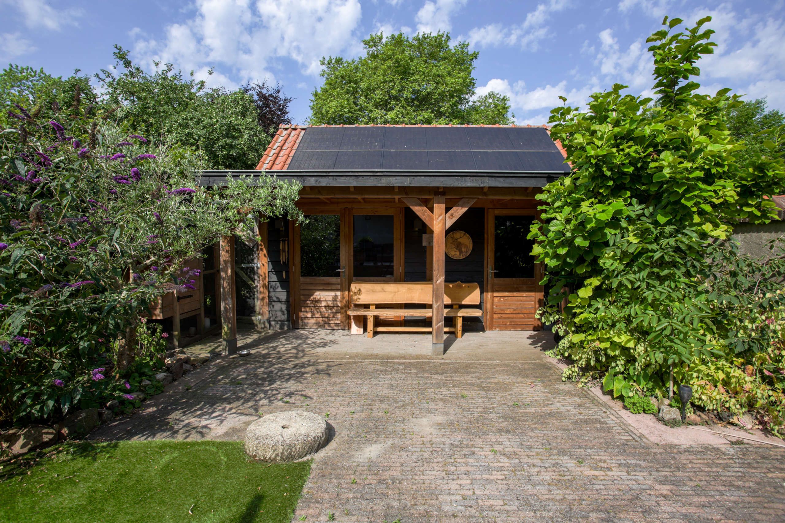 De woonkeuken biedt voldoende mogelijkheden om een lekkere maaltijd te bereiden. Het is de ideale plek om rustig te koken voor een gezellig samenzijn. Als het mooi weer is, kun je heerlijk buiten zitten in de achtertuin die op het westen ligt. De zon schijnt hier in de middag en avond, en met de overkapping kun je zelfs bij minder weer buiten blijven. De berging in de tuin biedt praktische ruimte voor je spullen.