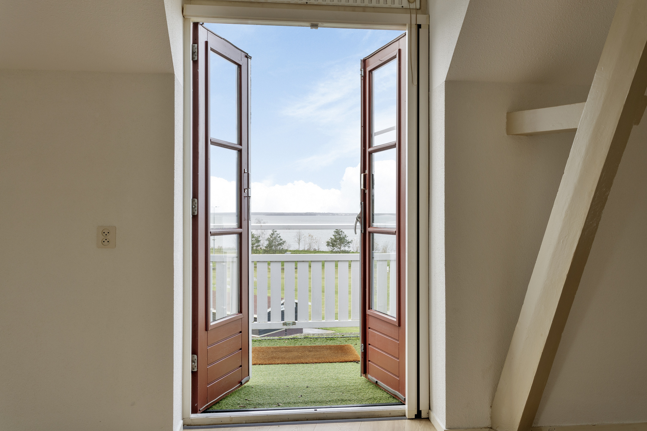 Entree, hal, toilet met fontein, ruime woonkamer met toegang tot het balkon welke uitzicht heeft over het Veluwemeer, half open keuken met inbouw apparatuur, een afgesloten ruimte met opstelplaats wasapparatuur en CV ketel, masterbedroom met directe toegang tot de badkamer, welke is voorzien van een inloopdouche en een vaste wastafel. De keuken en badkamer zijn zelfs volledig gerenoveerd onlangs!