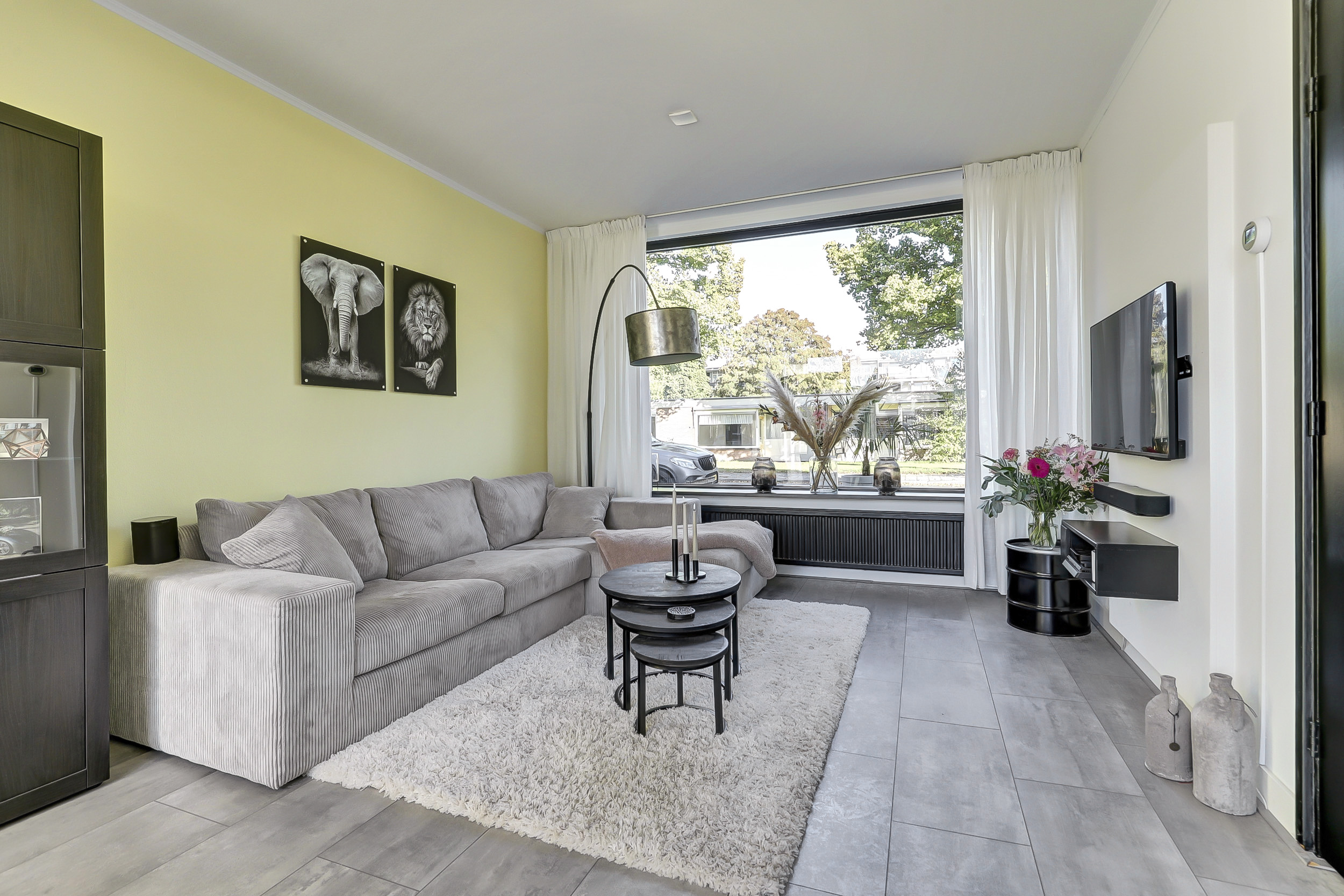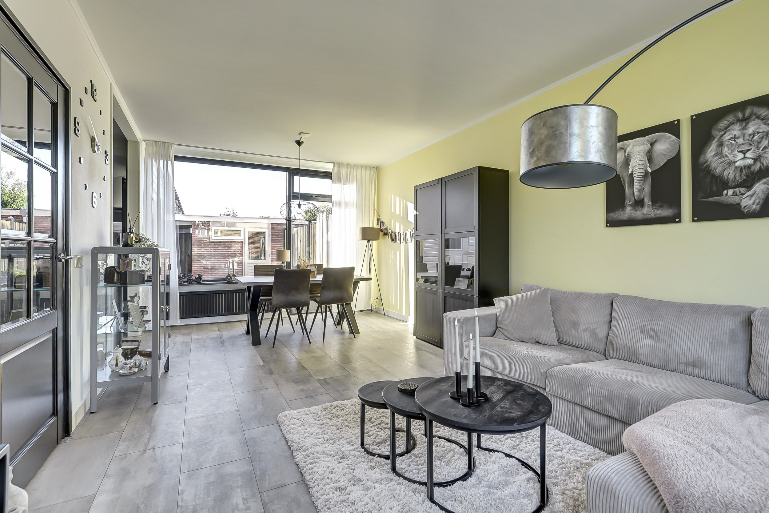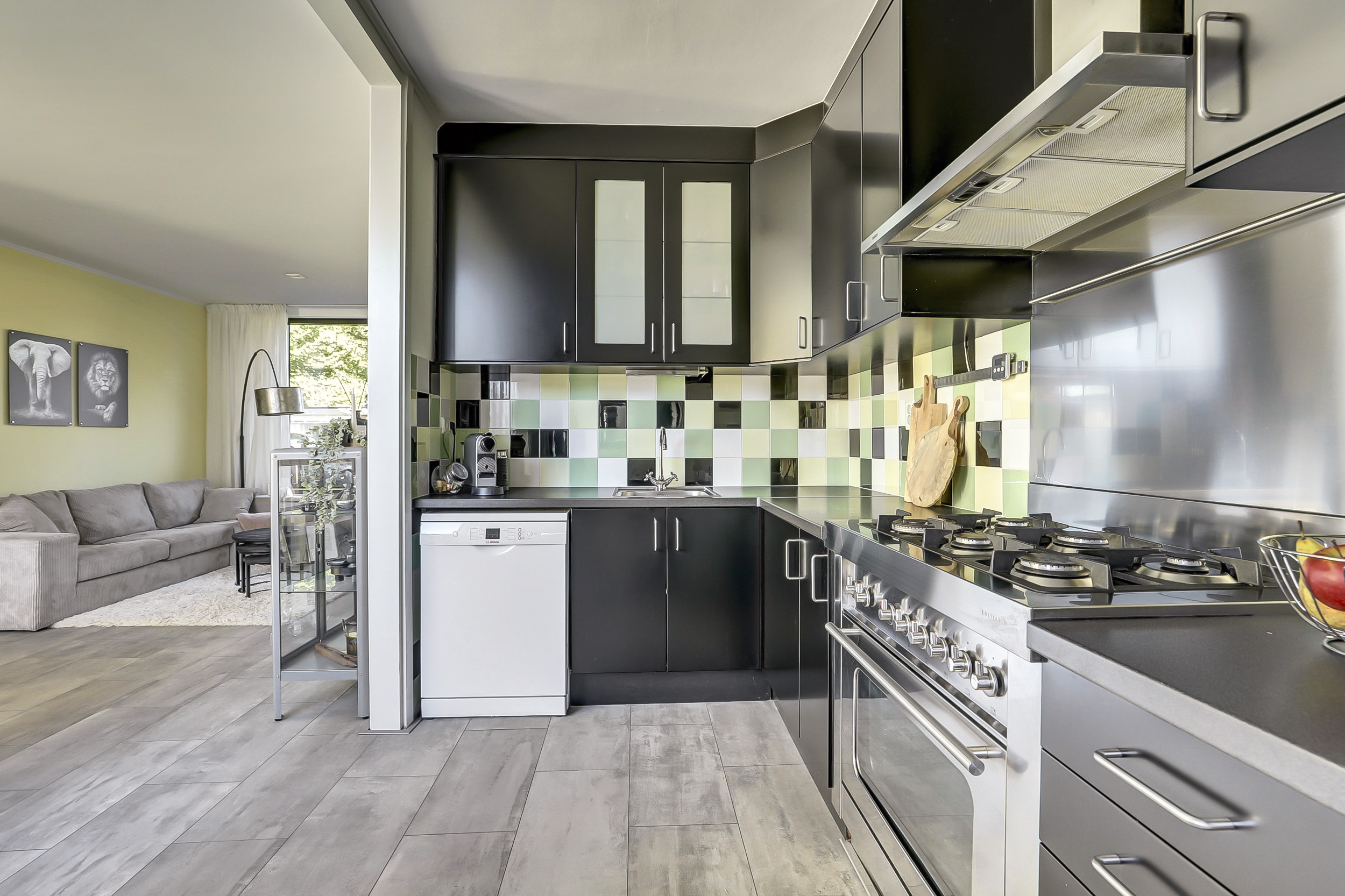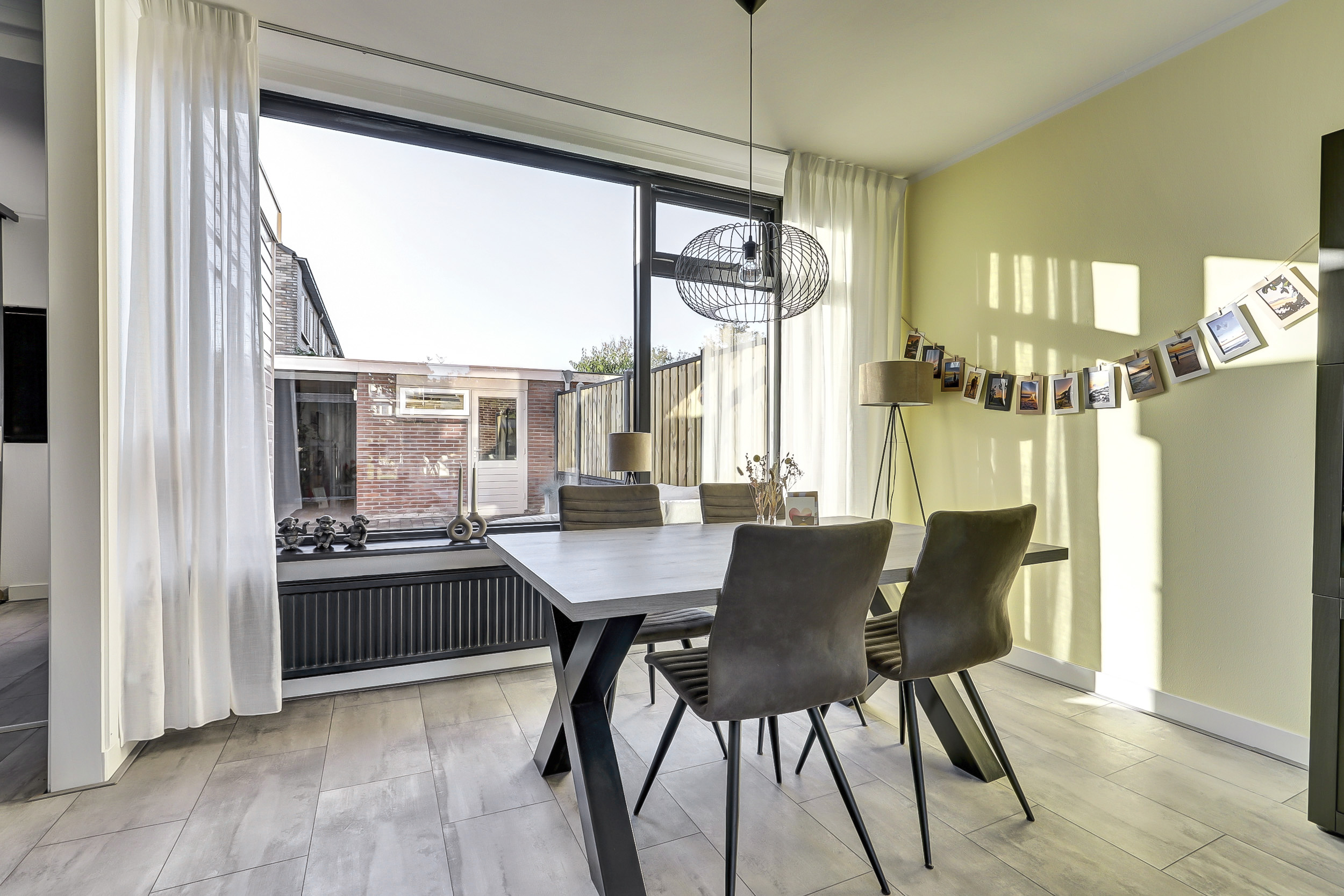 De woonkamer is ruim, hier kun je gemakkelijk een gezellige zithoek en eettafel kwijt. Met de grote raampartijen geniet je de hele dag van veel licht. De open keuken sluit goed op de woonkamer aan en biedt alles wat je nodig hebt om prettig te koken. Aangrenzend bevindt zich de praktische bijkeuken met ruimte voor de wasmachine, droger en extra opslag, een echt pluspunt van de woning.