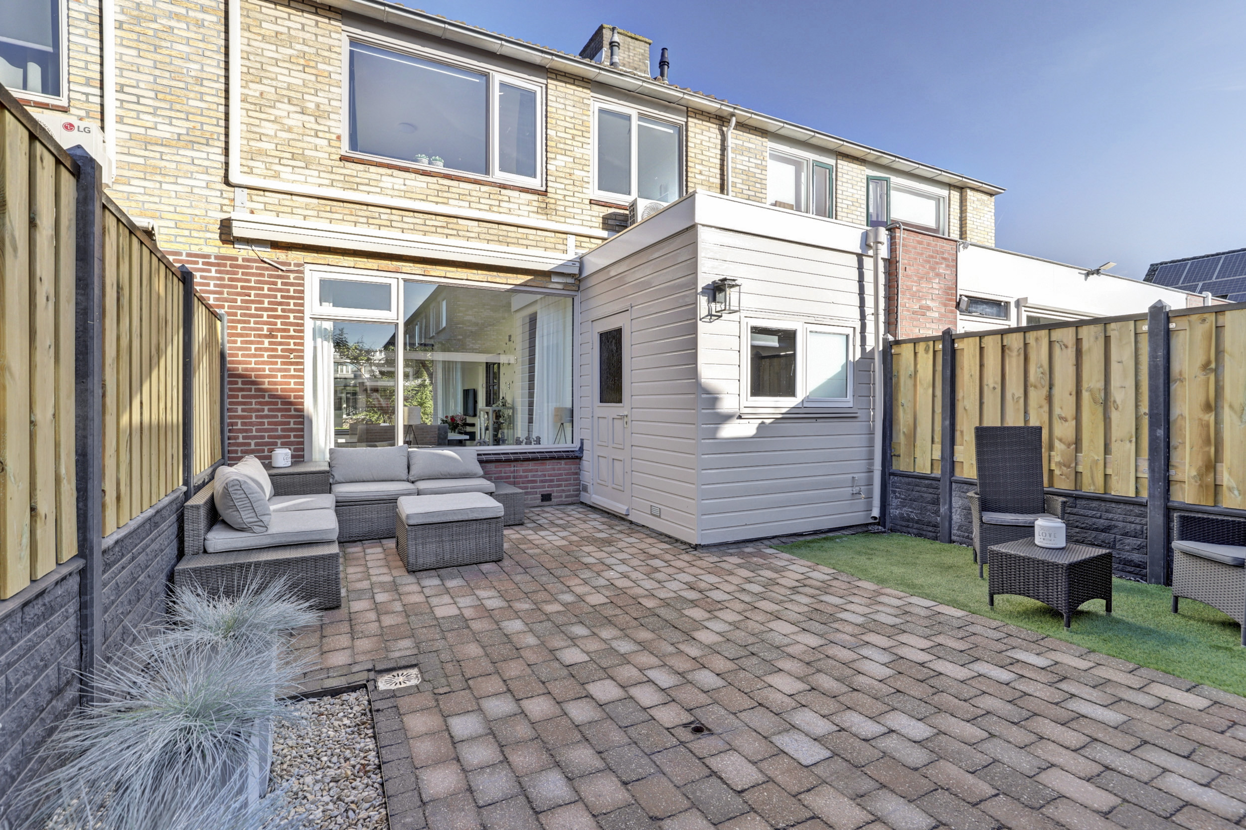 De achtertuin ligt op het zuidoosten, wat betekent dat je hier veel zon hebt. Een fijne plek om lange avonden buiten te zitten of je kinderen te laten buitenspelen. De tuin beschikt over een stenen berging en is in 2025 voorzien van nieuw hekwerk.