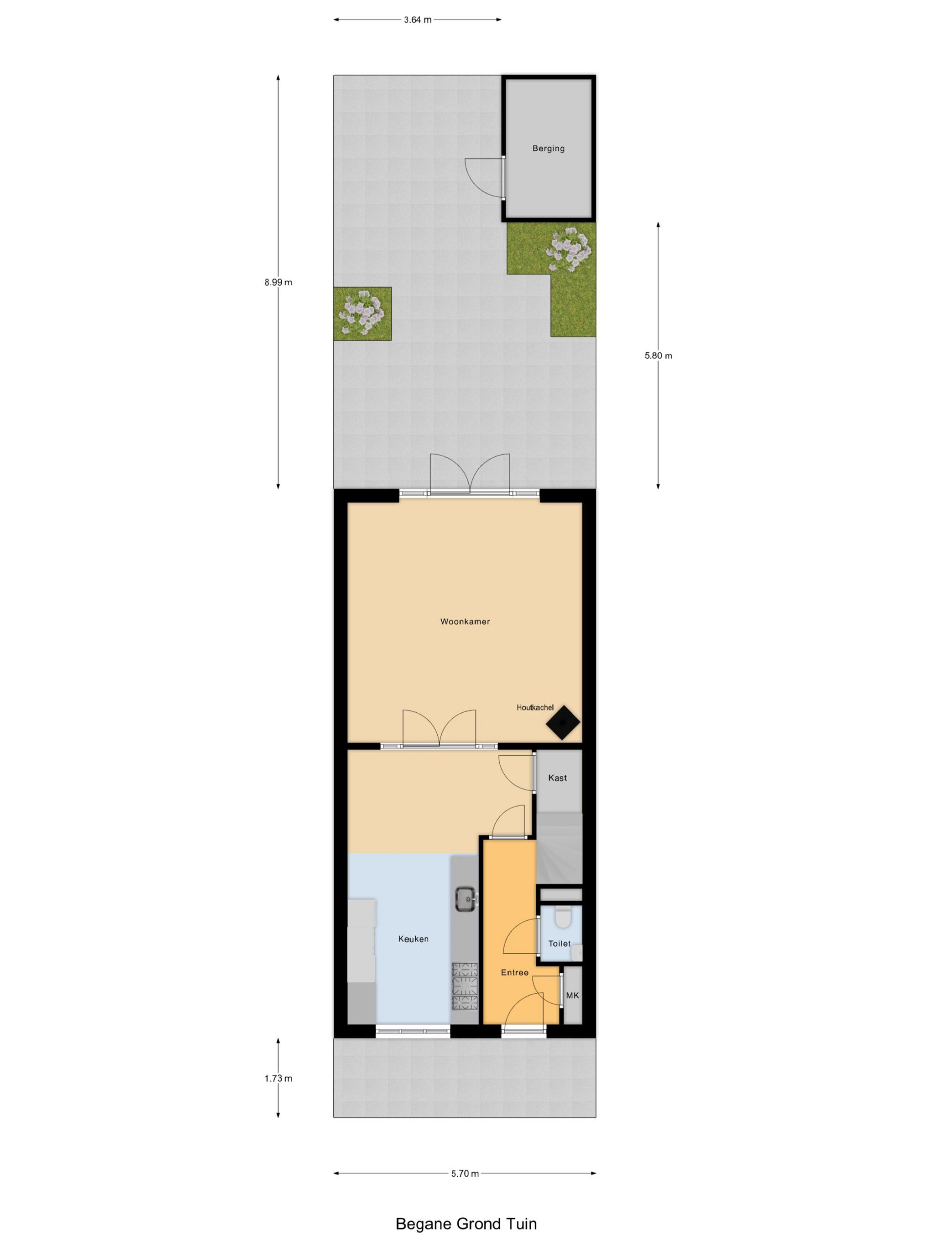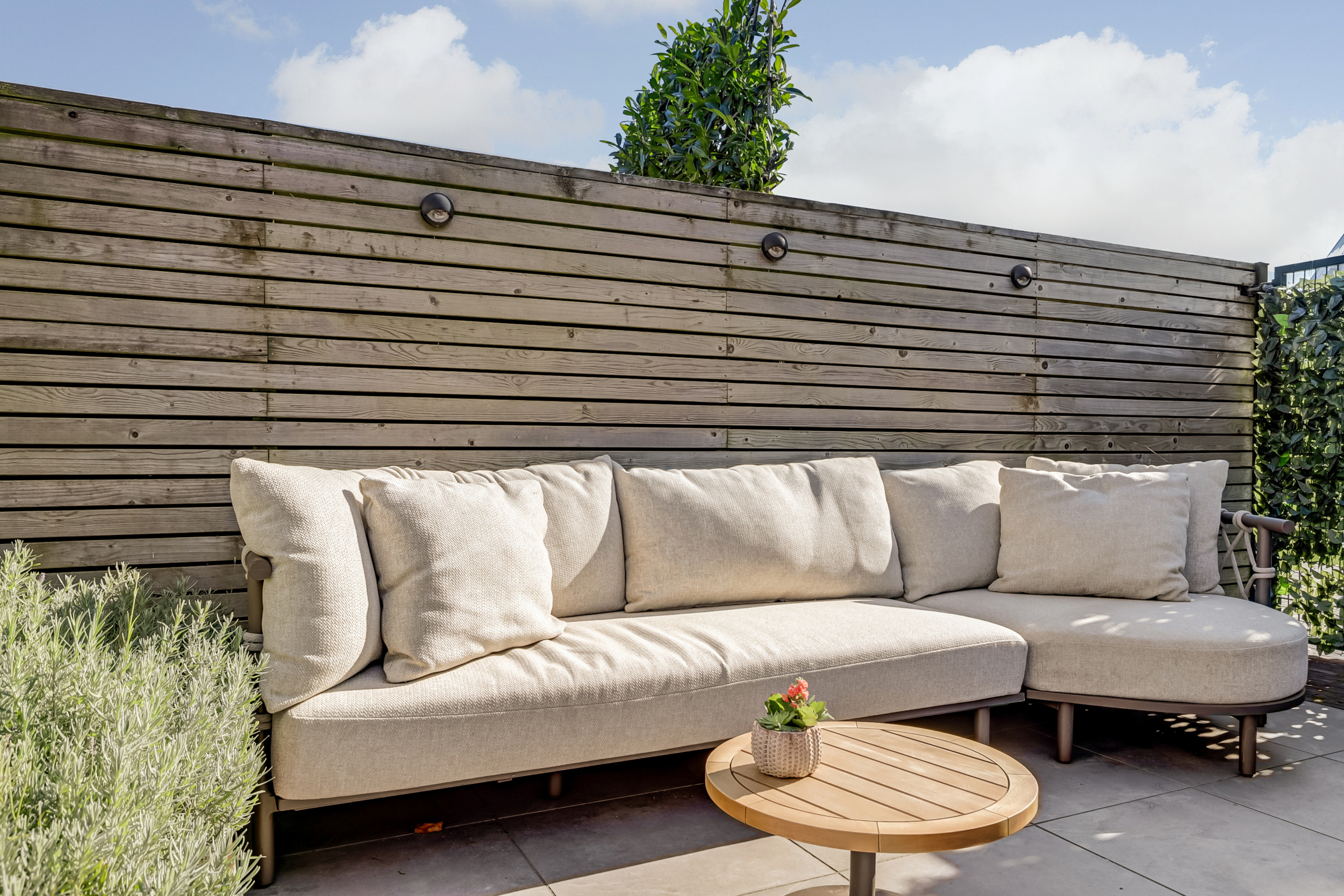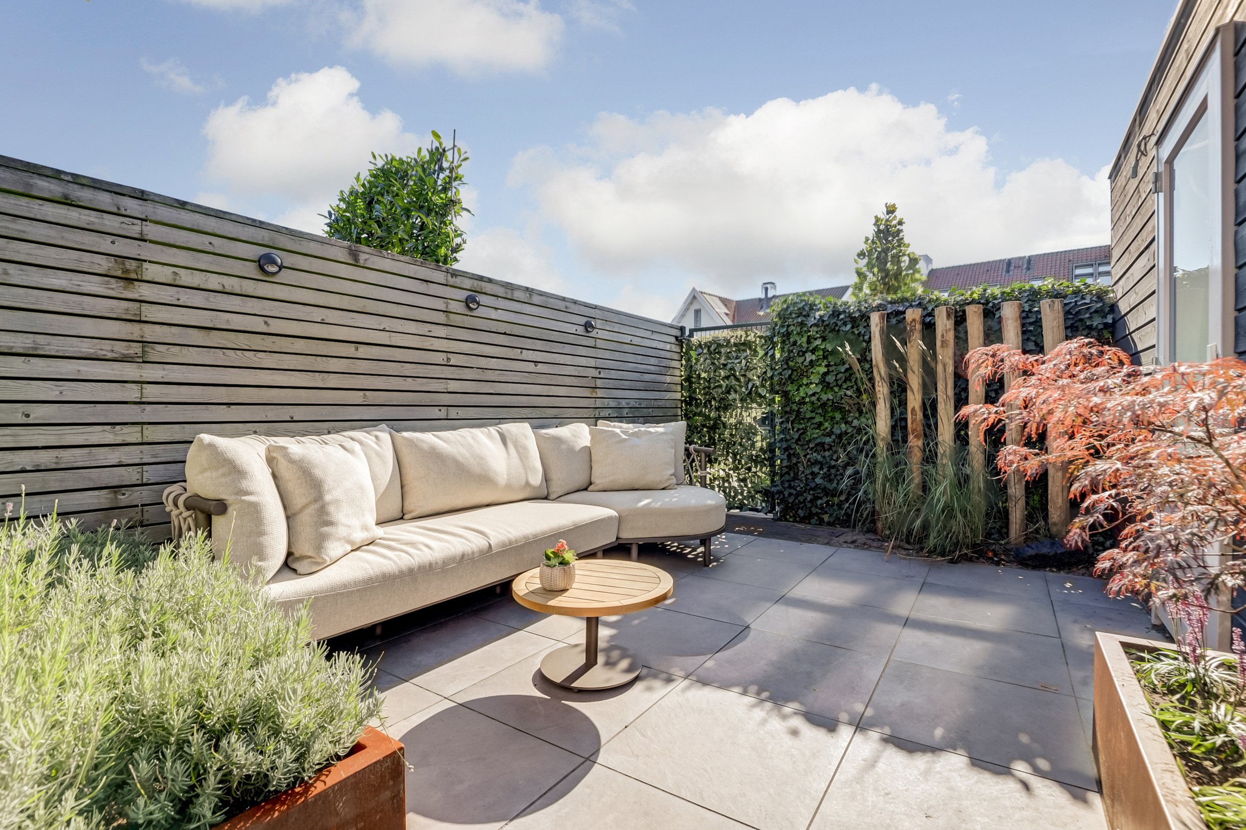 De tuin, gelegen op het zuidoosten, vangt de ochtendzon en blijft lang licht en uitnodigend. Hier vind je op elk moment van de dag wel een geschikt hoekje om te ontspannen. Het perceel van 125 m² is overzichtelijk, maar groot genoeg om zowel te spelen als te ontspannen.