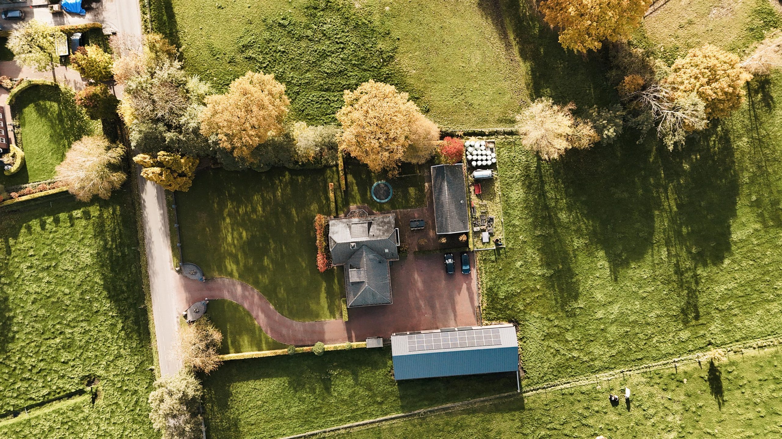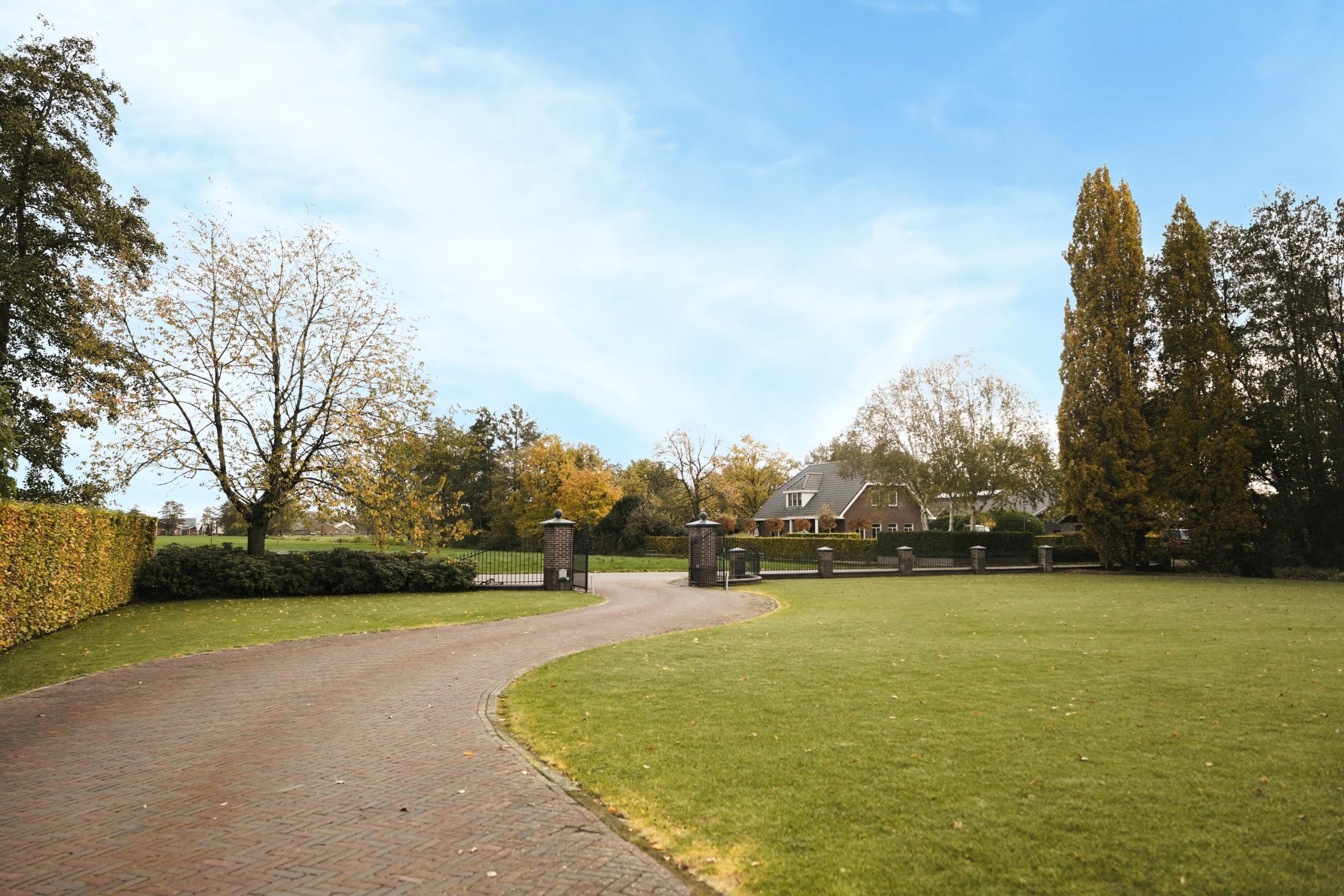 Het erf en de tuin zijn met zorg aangelegd en ingericht. De oprit wordt afgesloten met een elektrisch bedienbare toegangspoort, wat zorgt voor gemak en veiligheid.