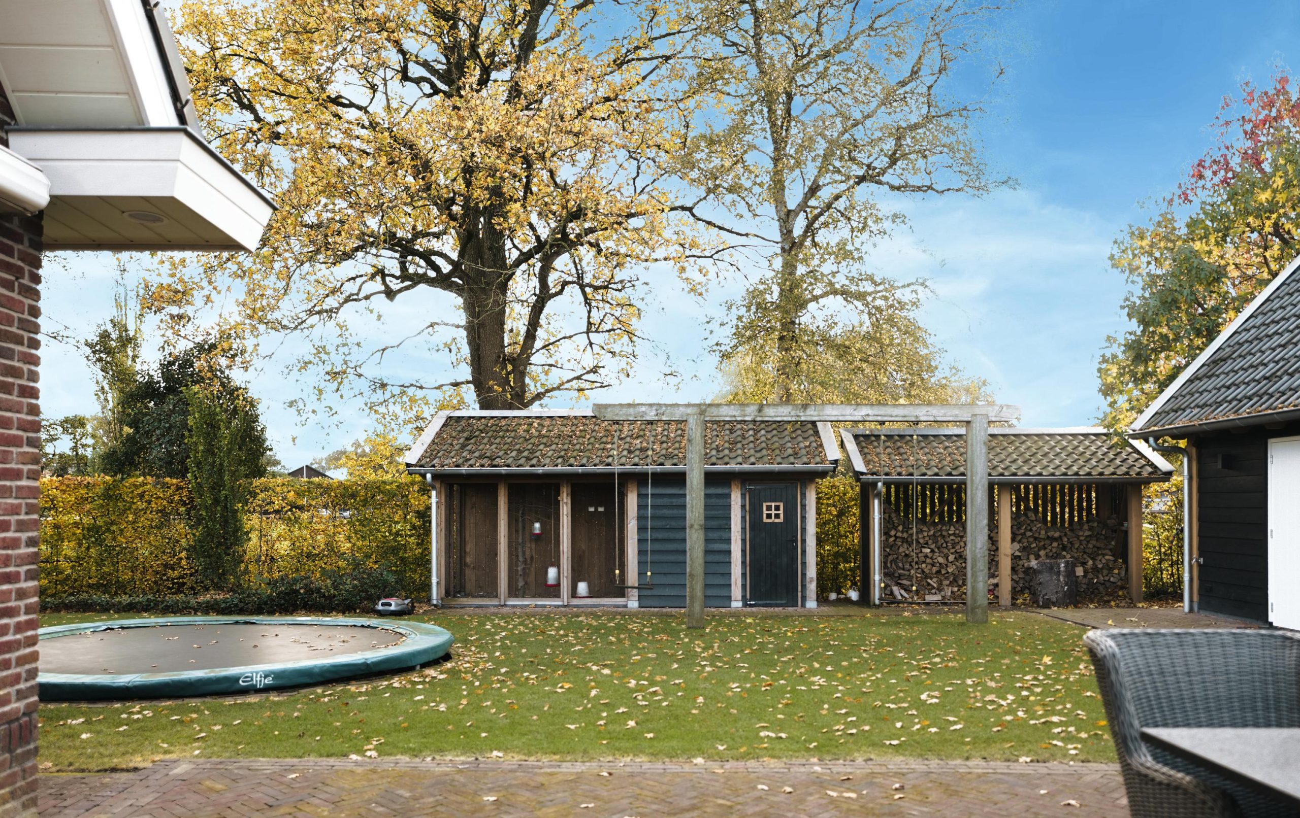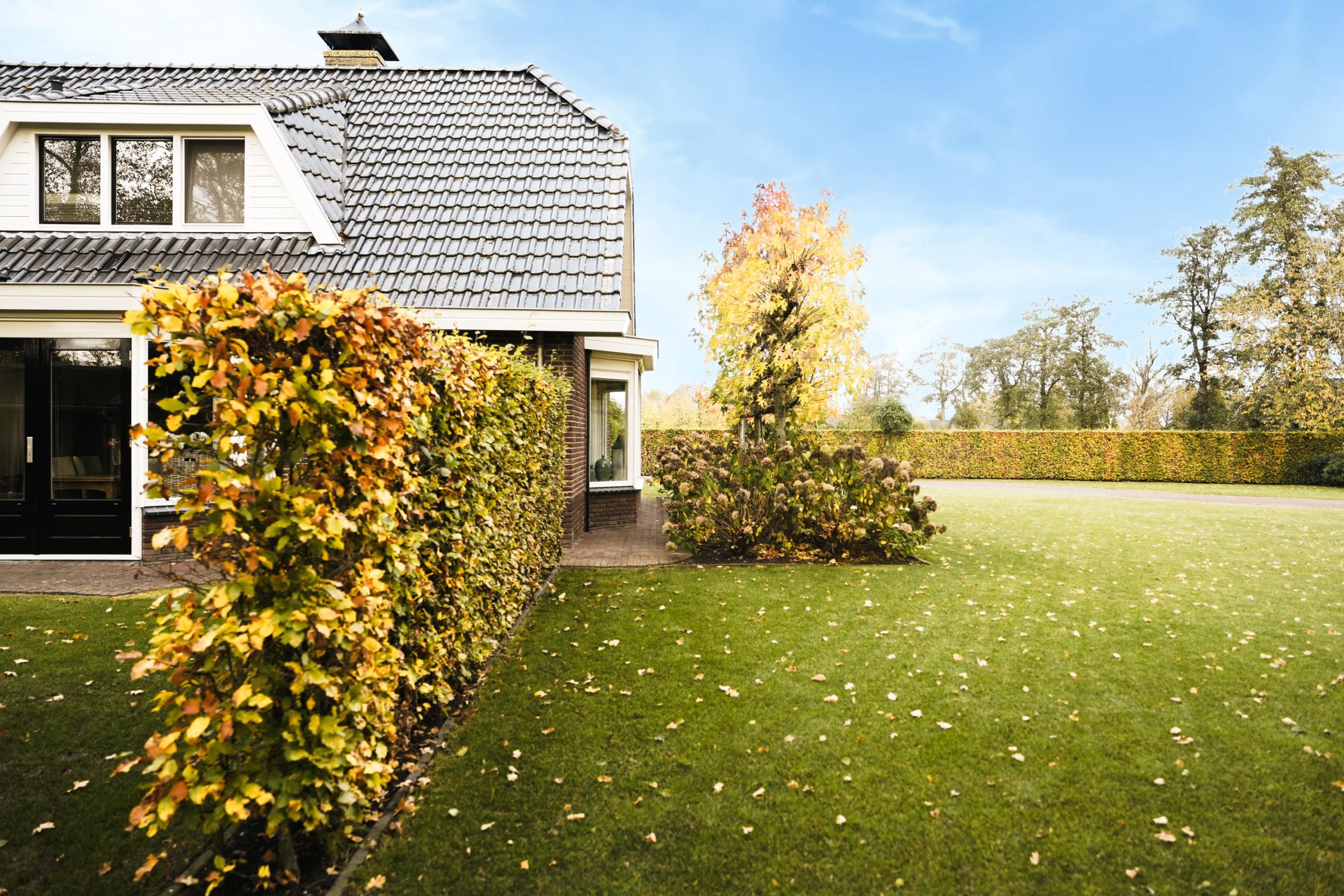 De tuin beschikt over een beregeningsinstallatie met eigen watervoorziening, zodat het gazon en de beplanting altijd in optimale conditie blijven.