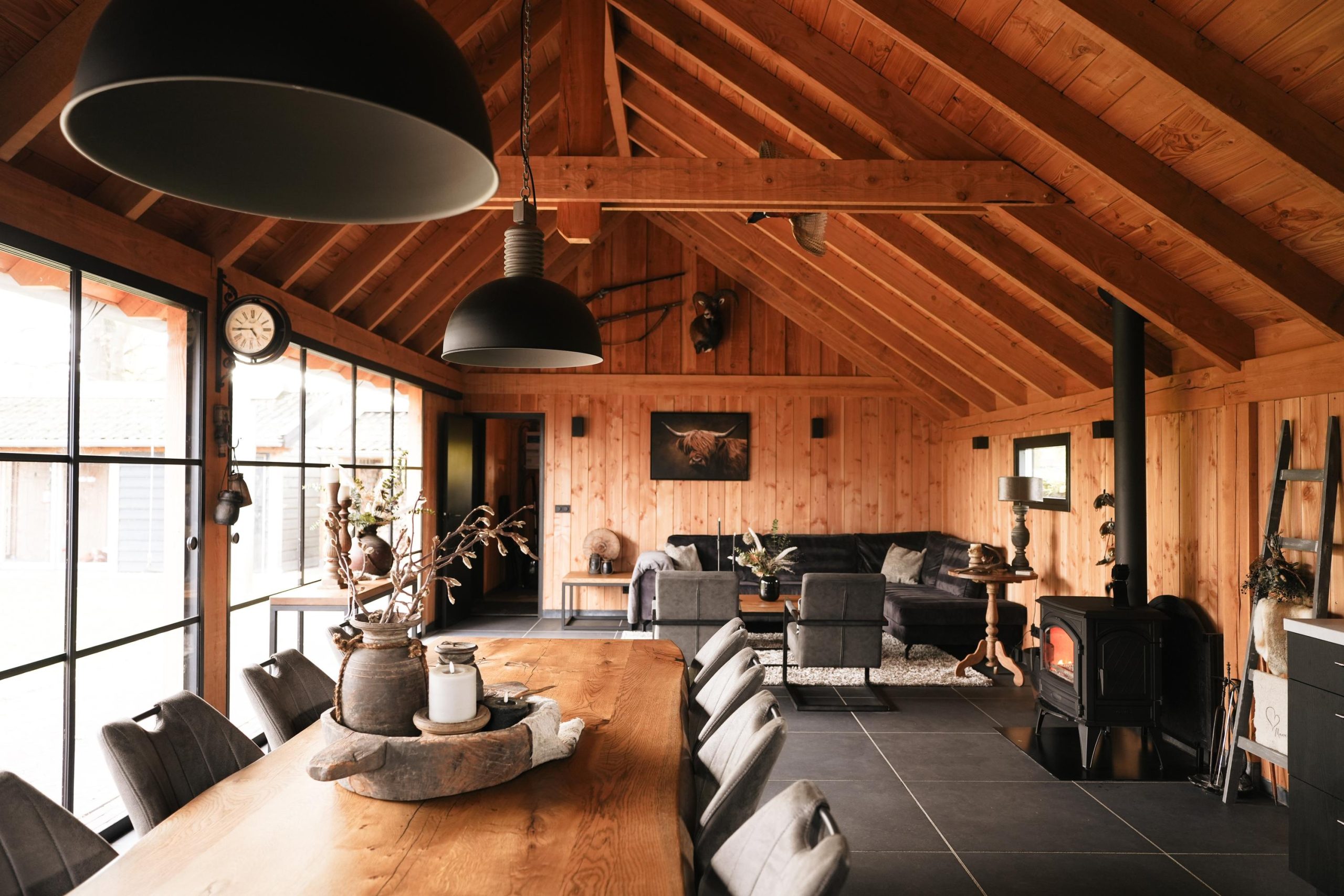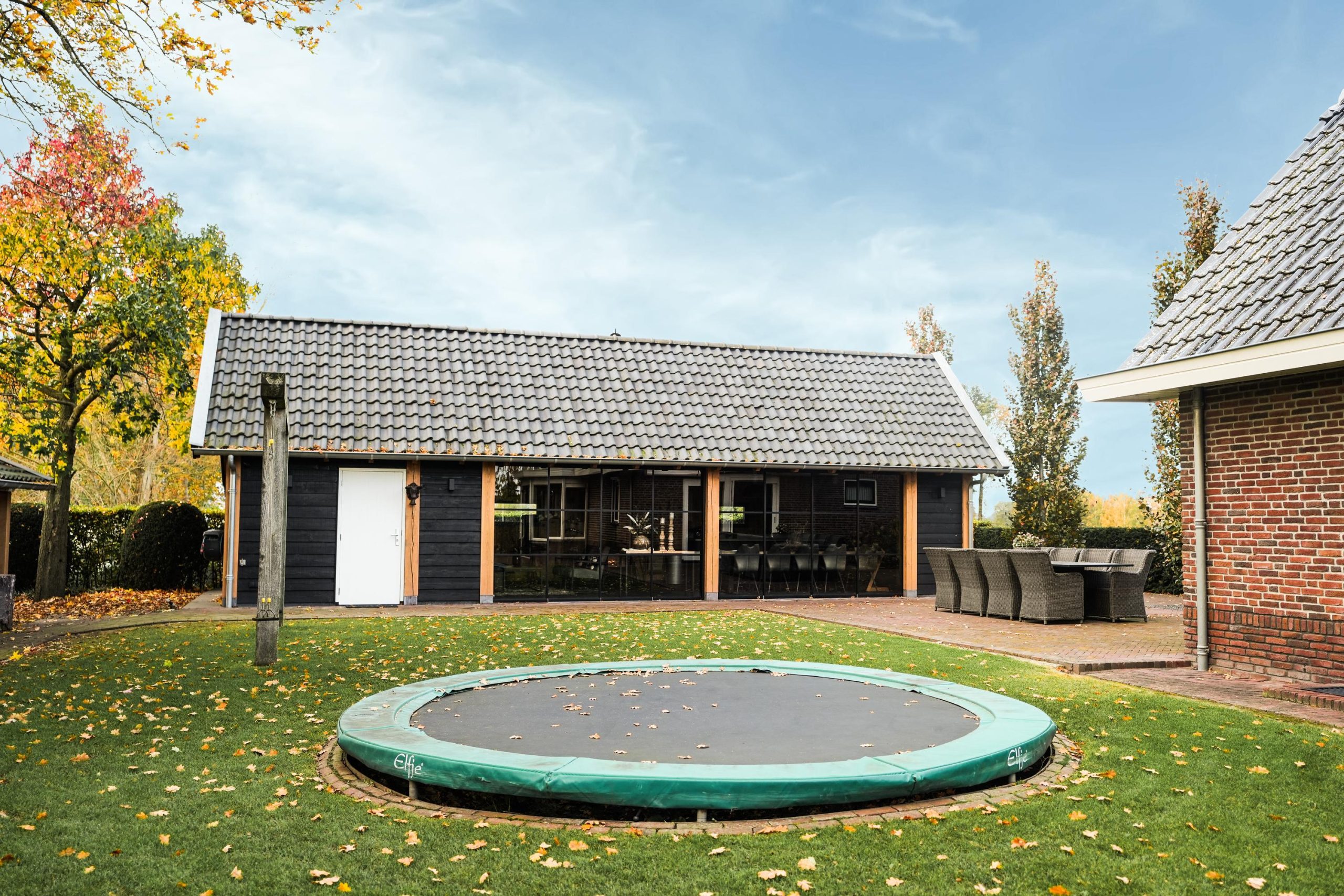 De ruime en recent gebouwde veranda vormt het hart van het buitenleven. Zowel in de zomer als in de winter is dit een heerlijke plek om te ontspannen en te genieten. Naast een sfeervolle zithoek is de veranda uitgerust met een luxe keukenblok voorzien van diverse inbouwapparatuur. Terwijl u geniet van de warmte van de houtkachel, kijkt u door de glazen schuifpui uit over de fraai aangelegde tuin, waar de kinderen veilig kunnen spelen. Bovendien beschikt de veranda over toiletvoorzieningen, wat dit buitenverblijf extra praktisch maakt.