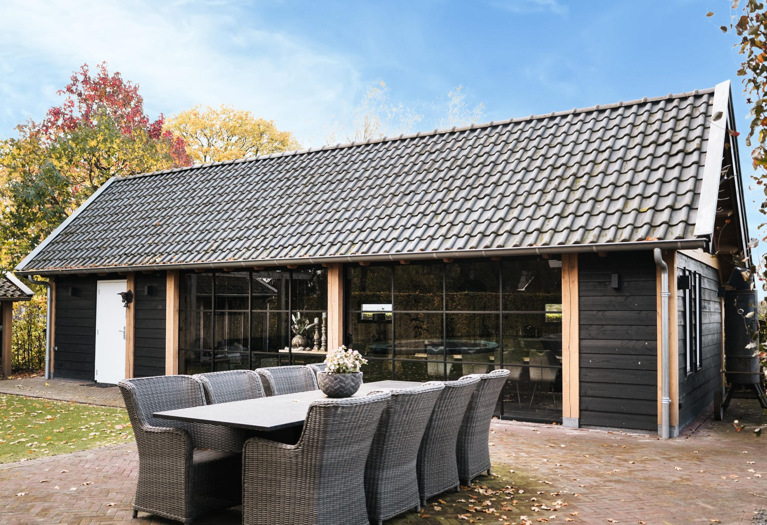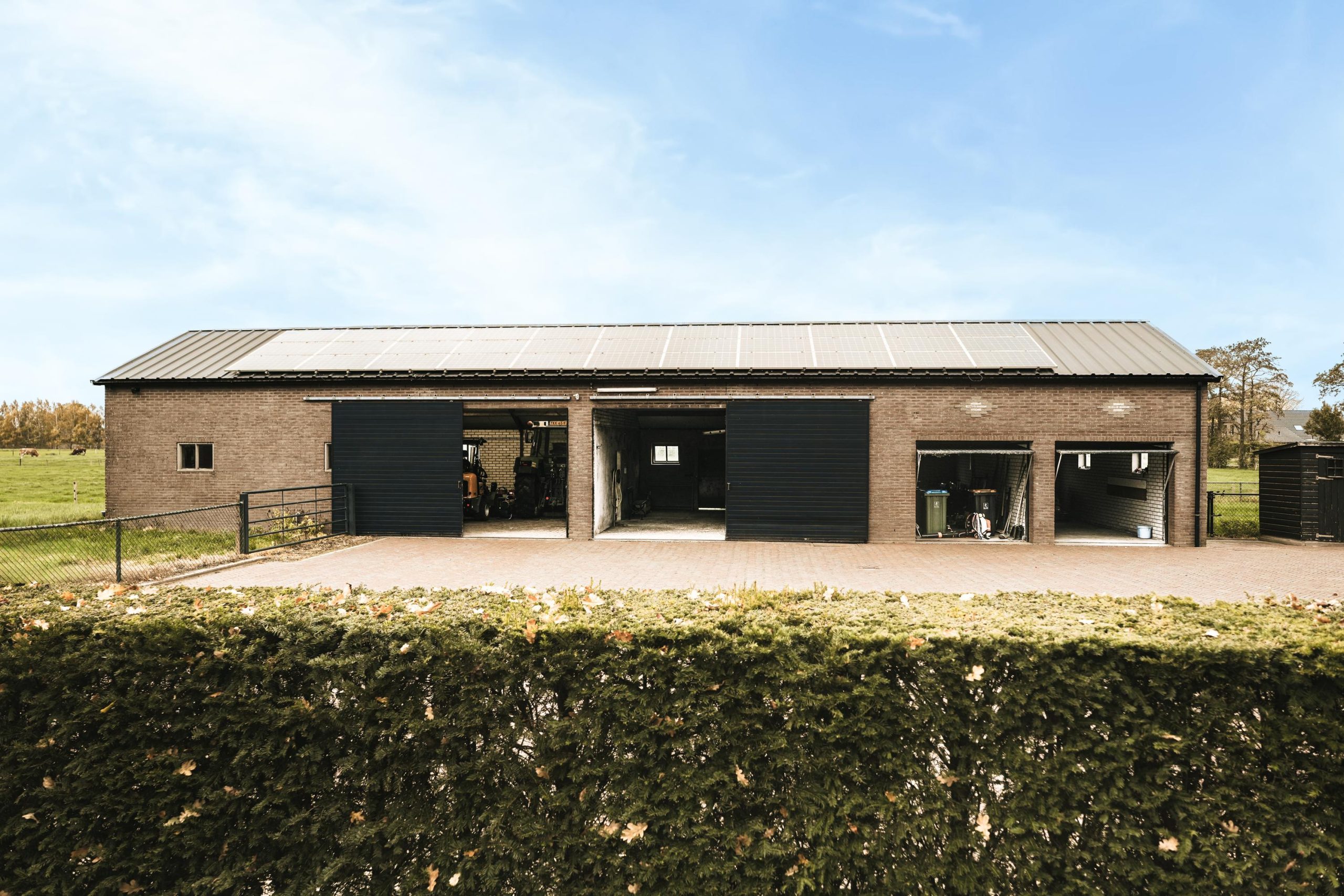 Op het erf staat een ruime, vrijstaande schuur die tal van gebruiksmogelijkheden biedt. Deze ruimte is ideaal als werkplaats, opslagruimte, extra garage of als stalling voor hobbymatig vee. Het gebouw is degelijk uitgevoerd en voorzien van een geïsoleerd dak met zonnepanelen, wat bijdraagt aan een duurzaam en energiezuinig geheel.