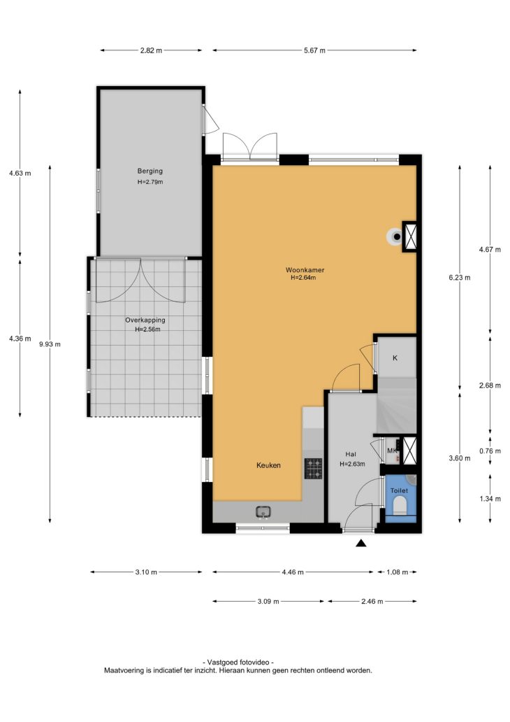 De ruime hal met moderne toiletruimte en meterkast geeft toegang tot de royale woonkamer. De afwerking is direct indrukwekkend: strakke gestucte wanden en plafonds (inclusief sierplinten), een smaakvolle PVC-vloer, sfeervolle houtkachel, inbouwspots, en veel lichtinval door de grote ramen. De keuken aan de voorzijde is uitgevoerd in een landelijke stijl met een donker front, natuurstenen werkblad en hoogwaardige apparatuur. De keuken biedt volop bergruimte en zicht op de groene omgeving aan de zijkant van de woning.