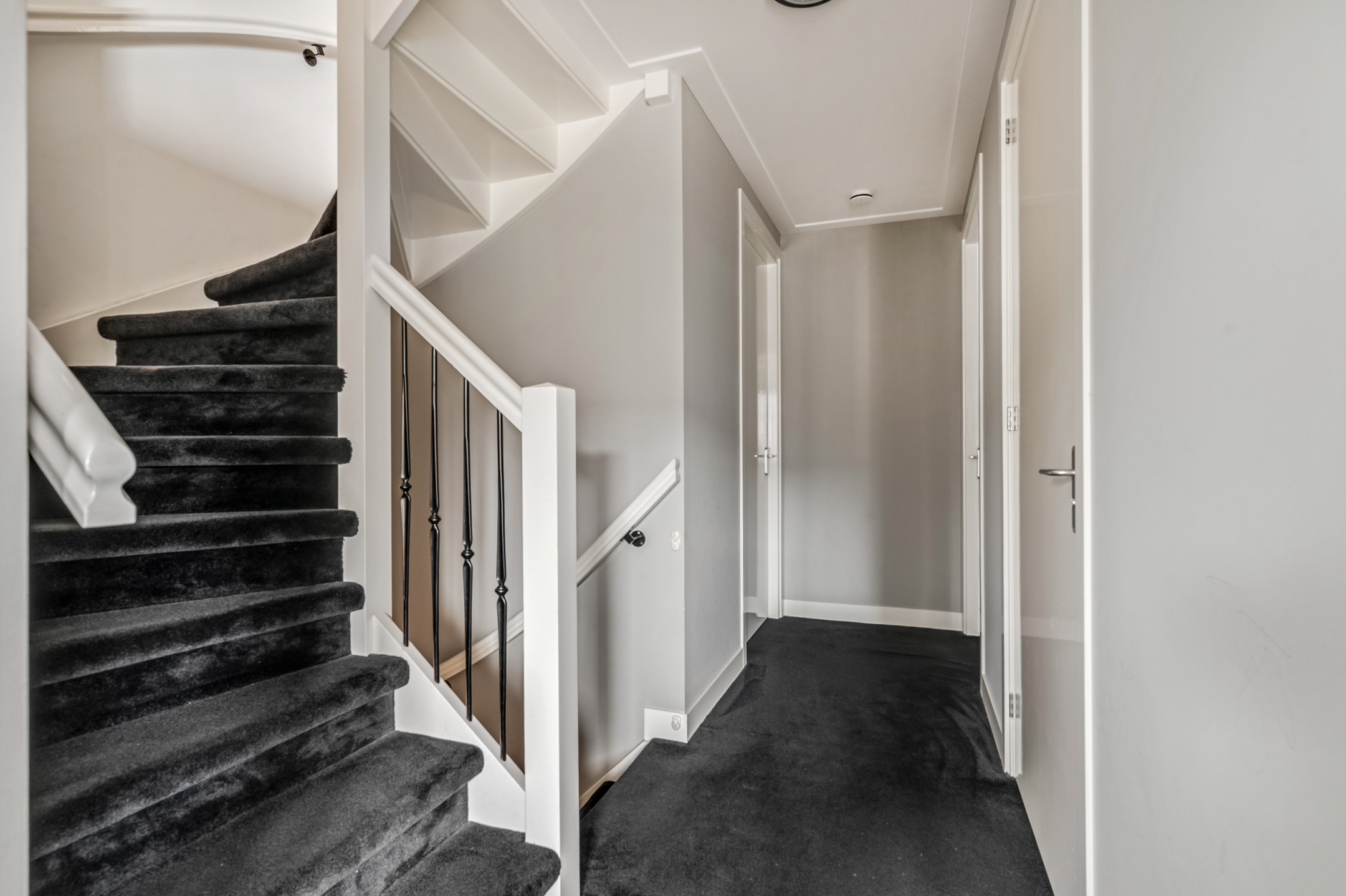 Op de eerste verdieping zijn drie slaapkamers aanwezig, stuk voor stuk netjes afgewerkt. De moderne badkamer is voorzien van een ligbad, inloopdouche, dubbele wastafel, vloerverwarming en toilet. Aan de achterzijde bevinden zich rolluiken voor de ramen in verband met de zonnige ligging op het zuiden.