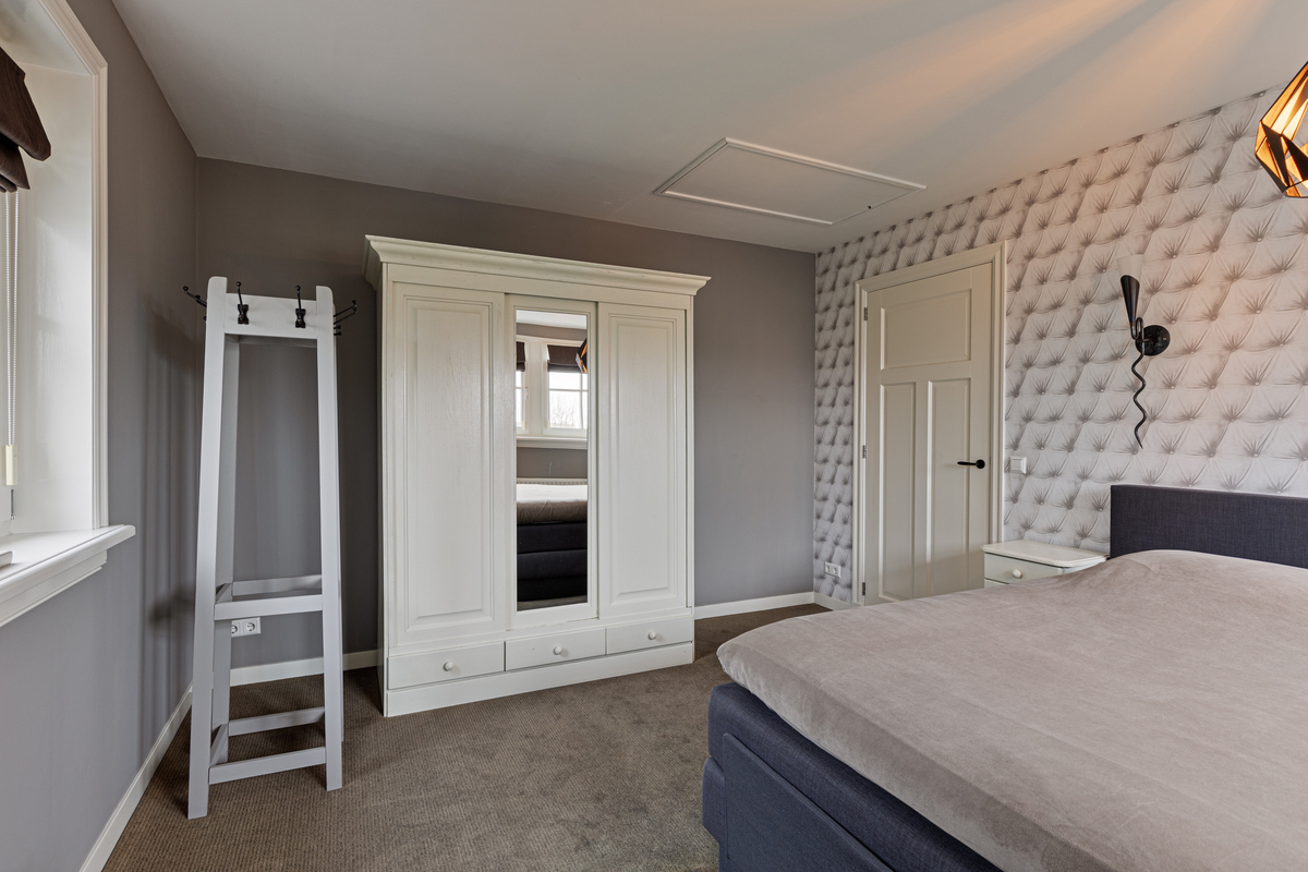 De eerste verdieping is bereikbaar via een vaste trap. De overloop biedt toegang tot twee grote slaapkamers, die beide veel natuurlijke lichtinval ontvangen, en de eerste badkamer. De kamers zijn goed in te delen en bieden volop mogelijkheden voor diverse interieurstijlen en functies.