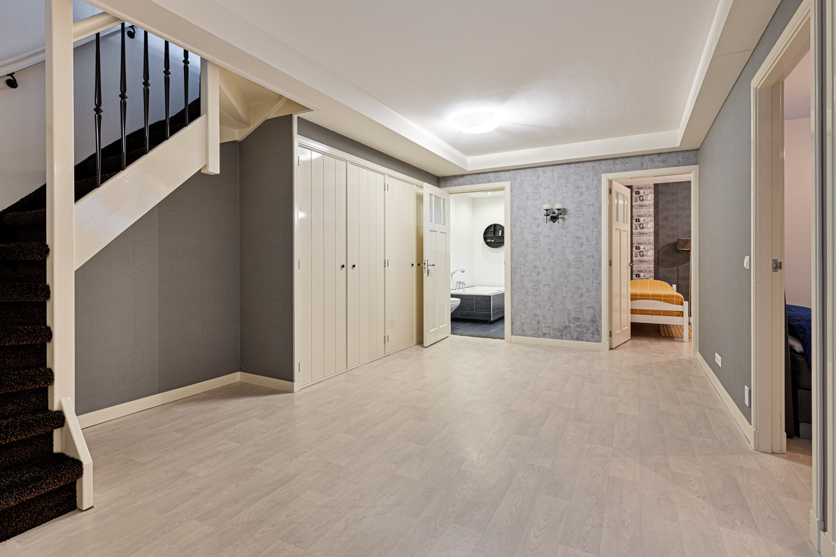 Het souterrain beschikt over een ruime overloop, vier slaapkamers en de tweede badkamer. De indeling is efficiënt en de afwerking is strak, waardoor dit souterrain een zeer functionele en comfortabele ruimte biedt.