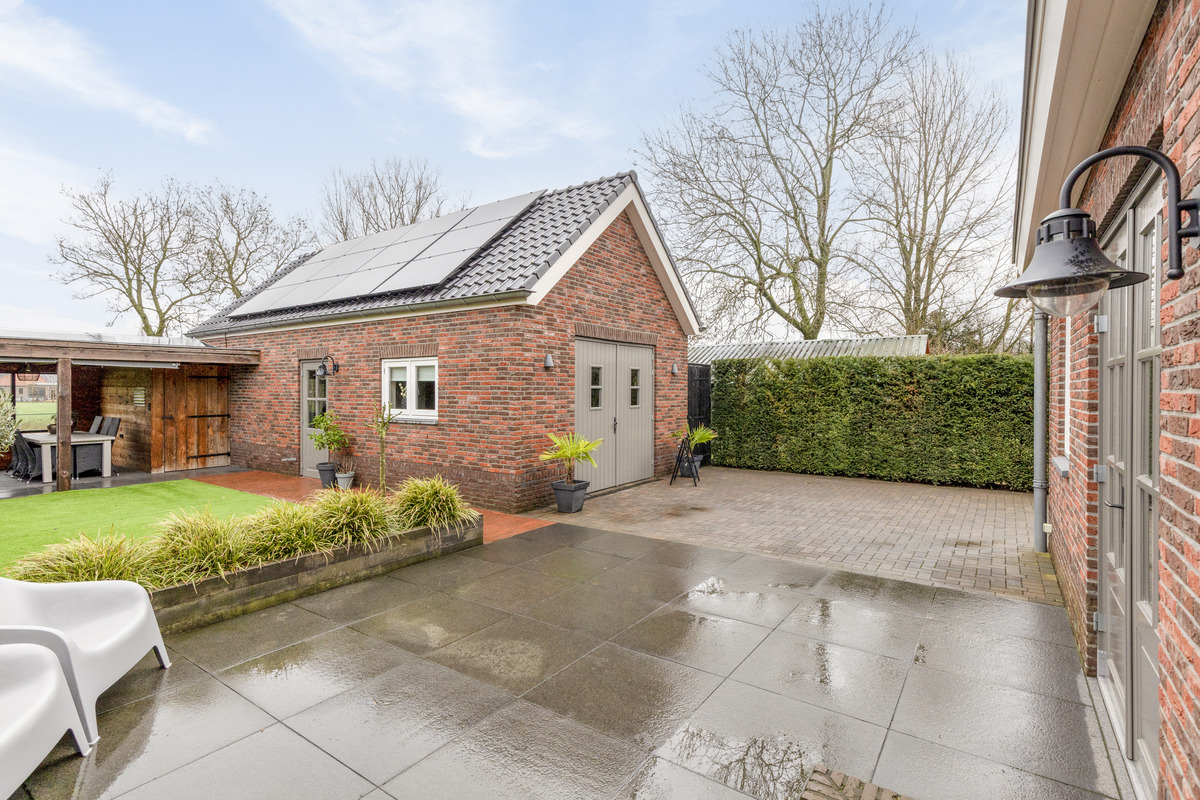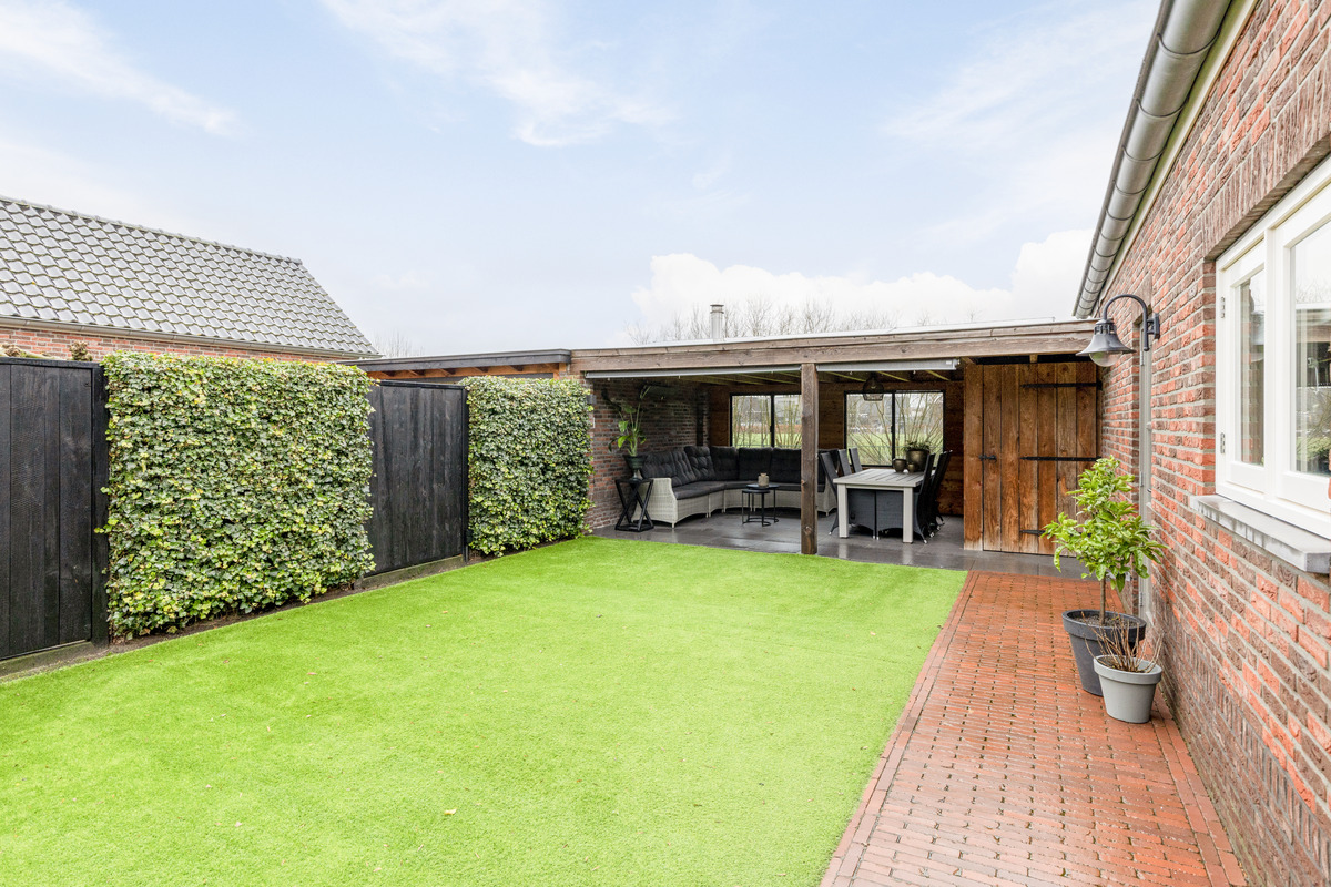 De tuin is prachtig onderhouden en biedt volop mogelijkheden voor ontspanning, met een mooi overdekt terras en diverse zitgedeeltes. Een bijzonder element is de garage, die niet alleen ruimte biedt voor je auto, maar ook voor een kapperssalon/werkplek. Dit maakt de woning ideaal voor mensen die een werkruimte aan huis nodig hebben.