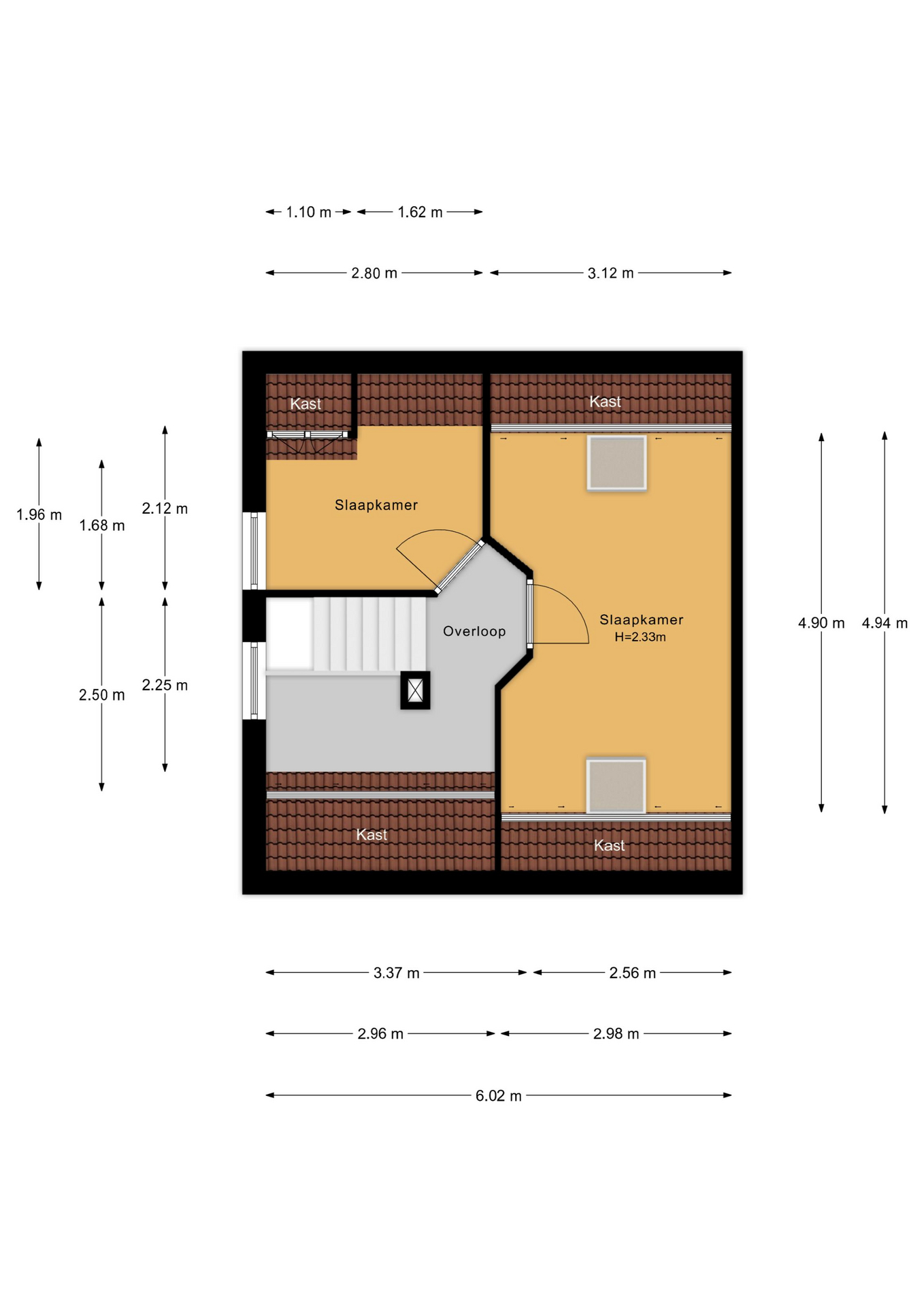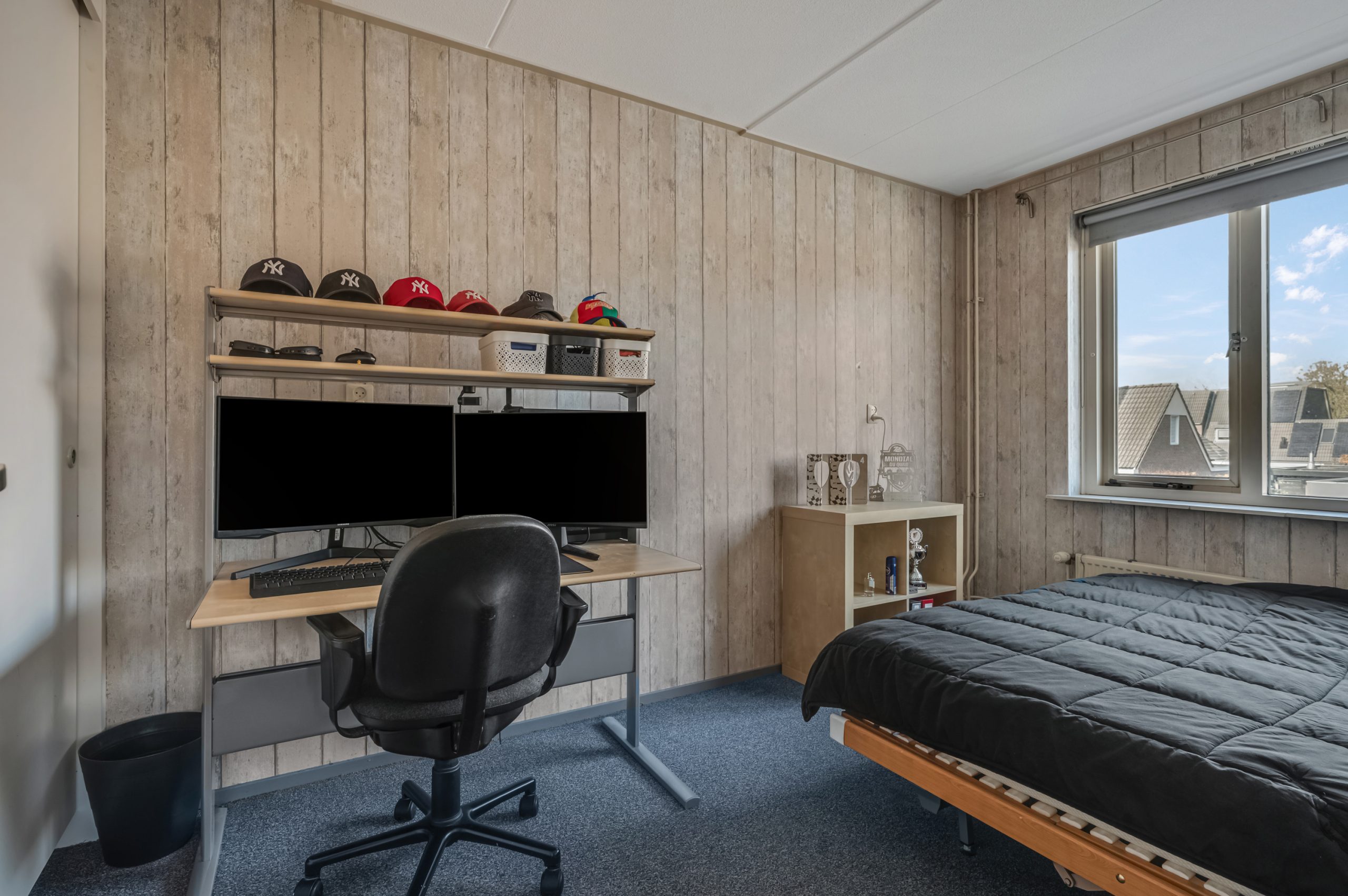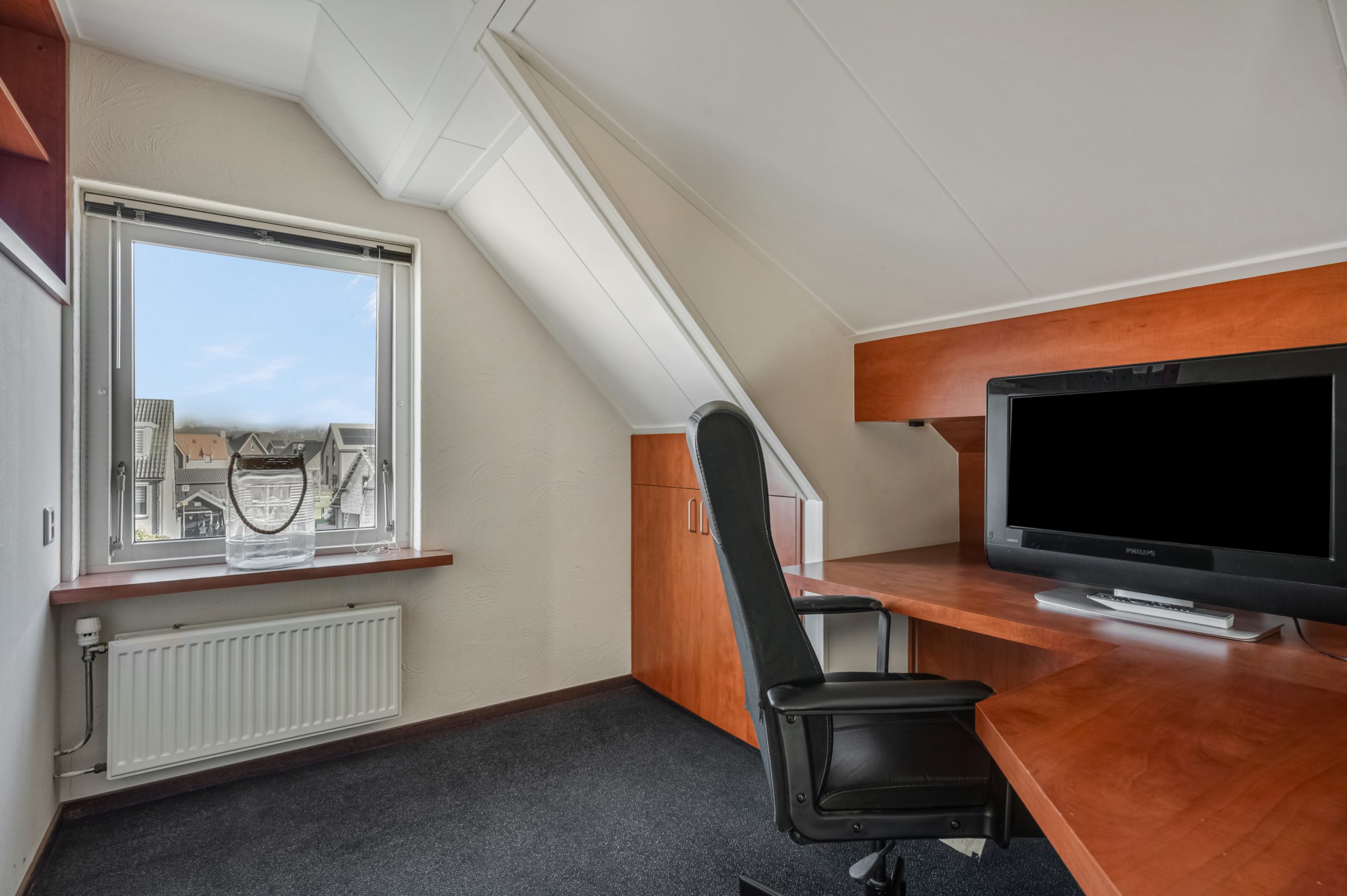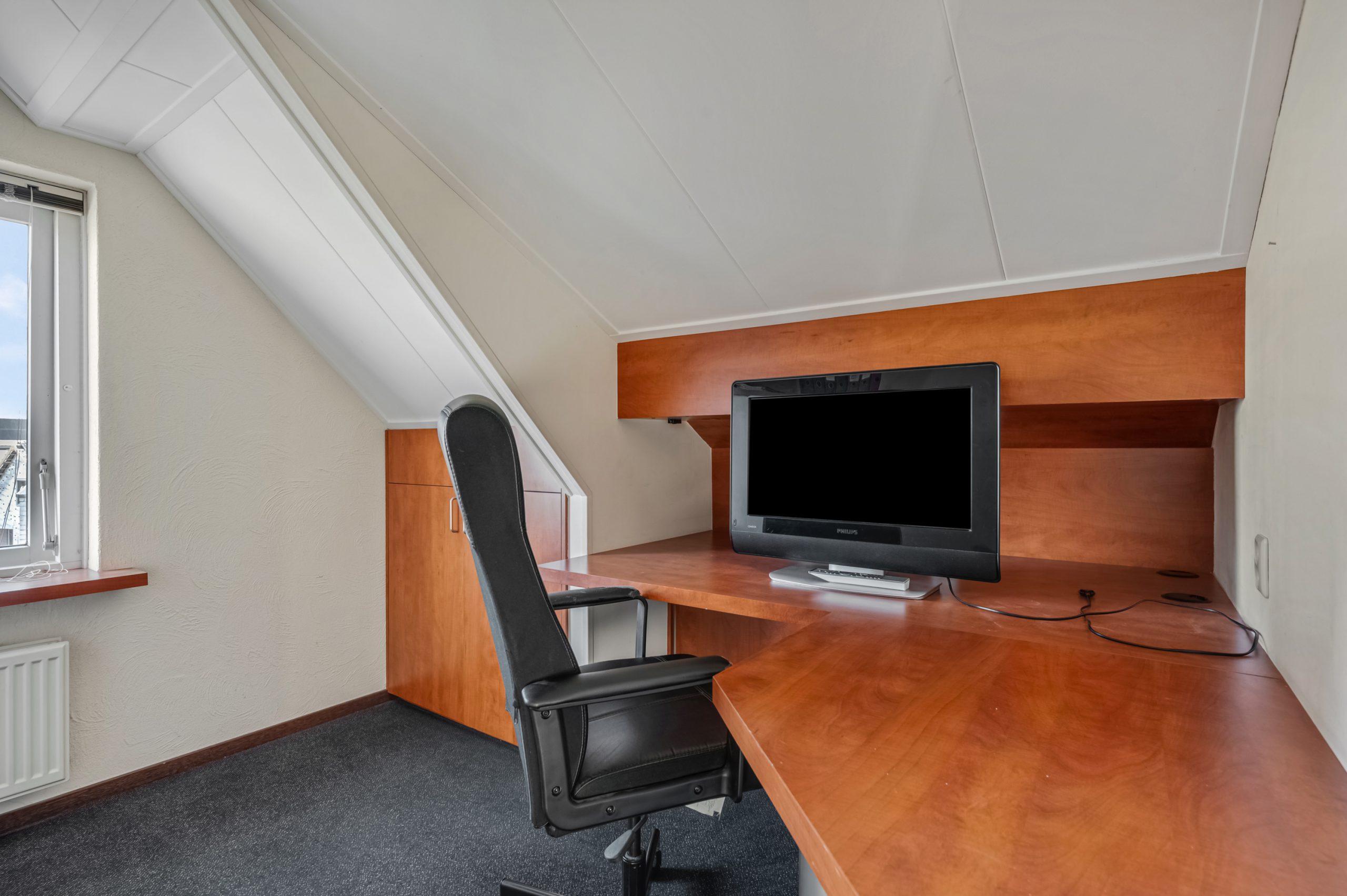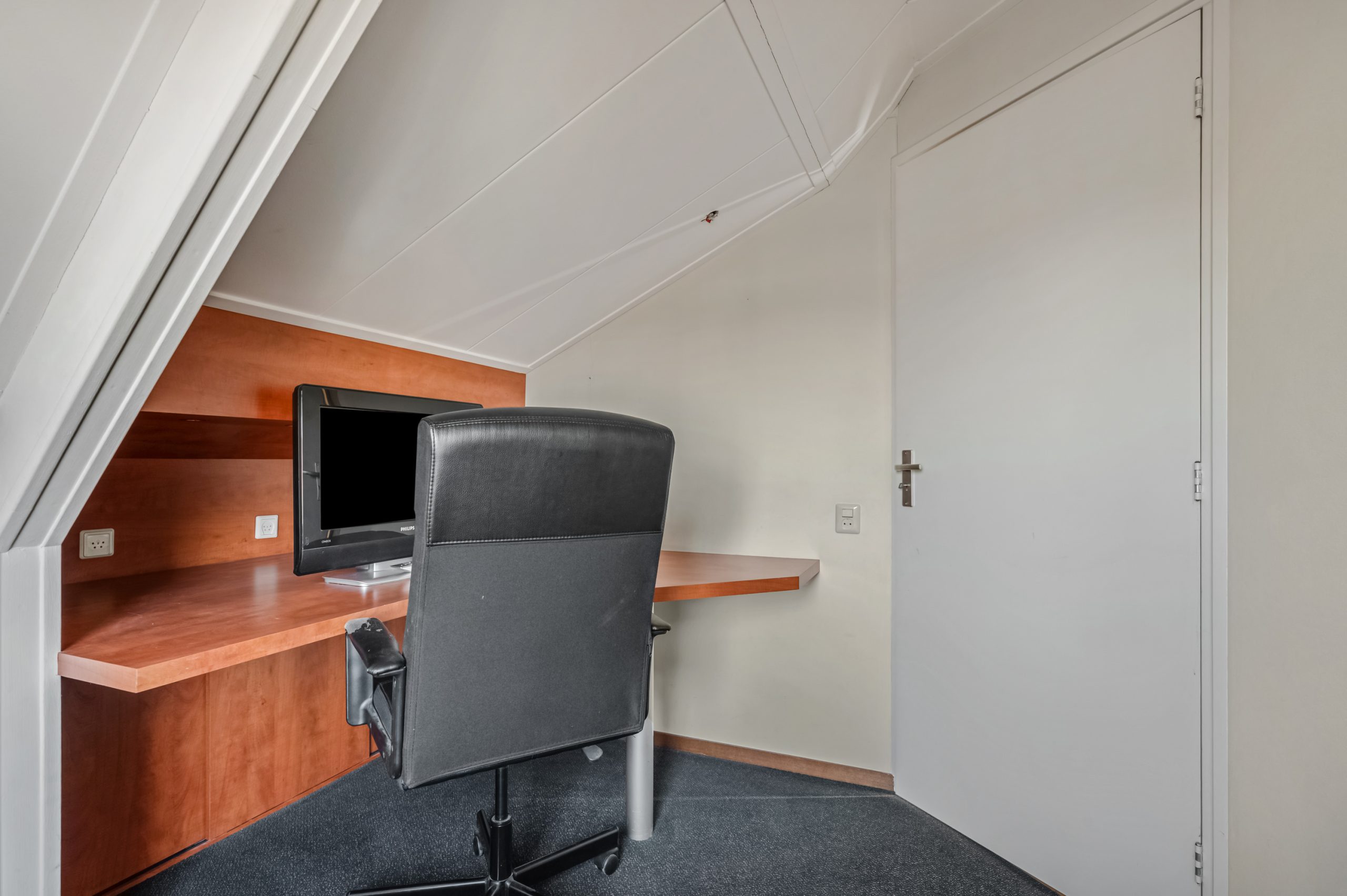 Via een vaste trap bereikt u de tweede verdieping. De overloop geeft toegang tot twee extra kamers die uitstekend kunnen dienen als slaapkamer, werkruimte of hobbykamer. Eén van de kamers is voorzien van een dakraam, wat zorgt voor prettig daglicht. Daarnaast is er praktische bergruimte aanwezig achter de knieschotten.