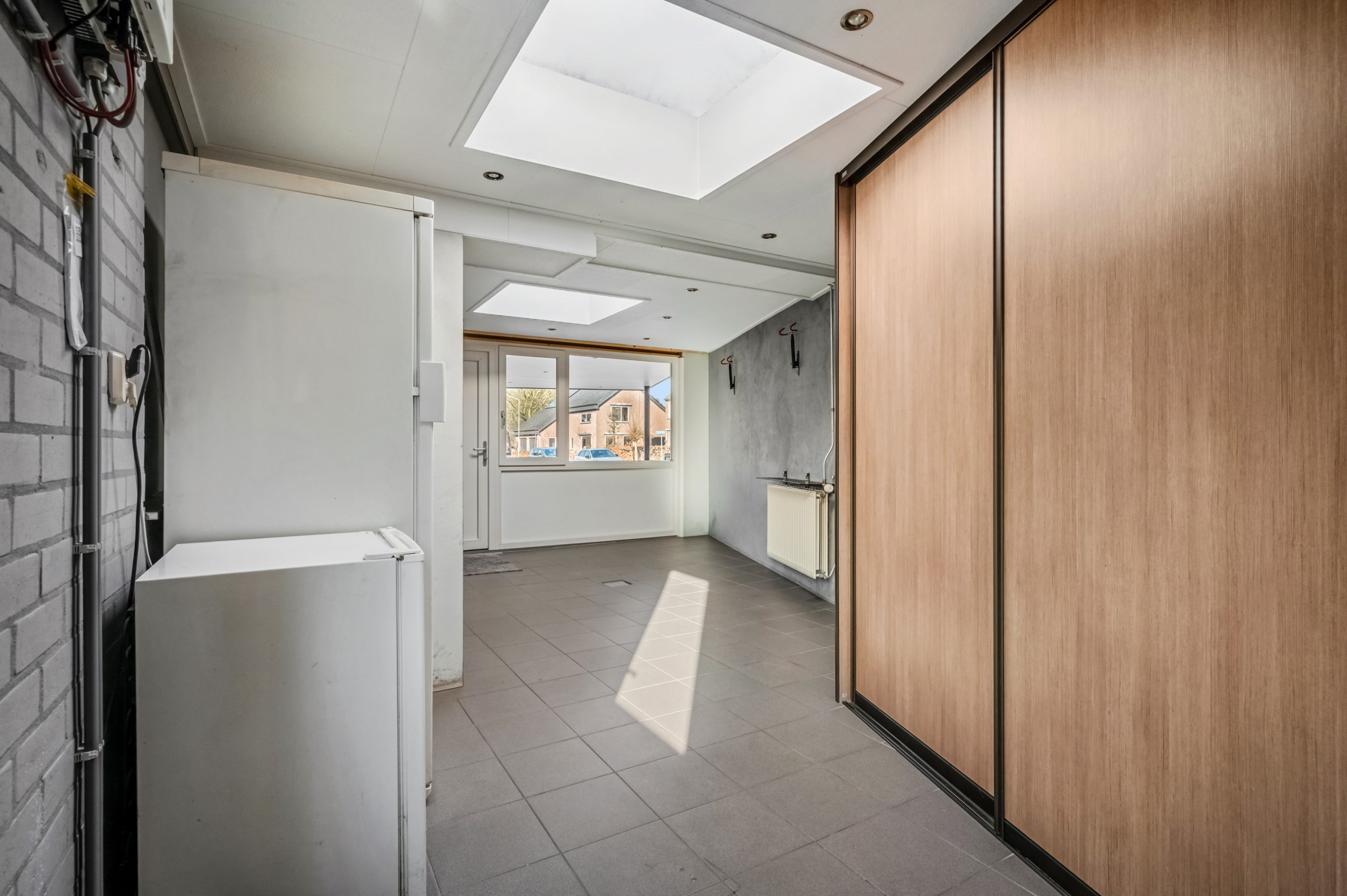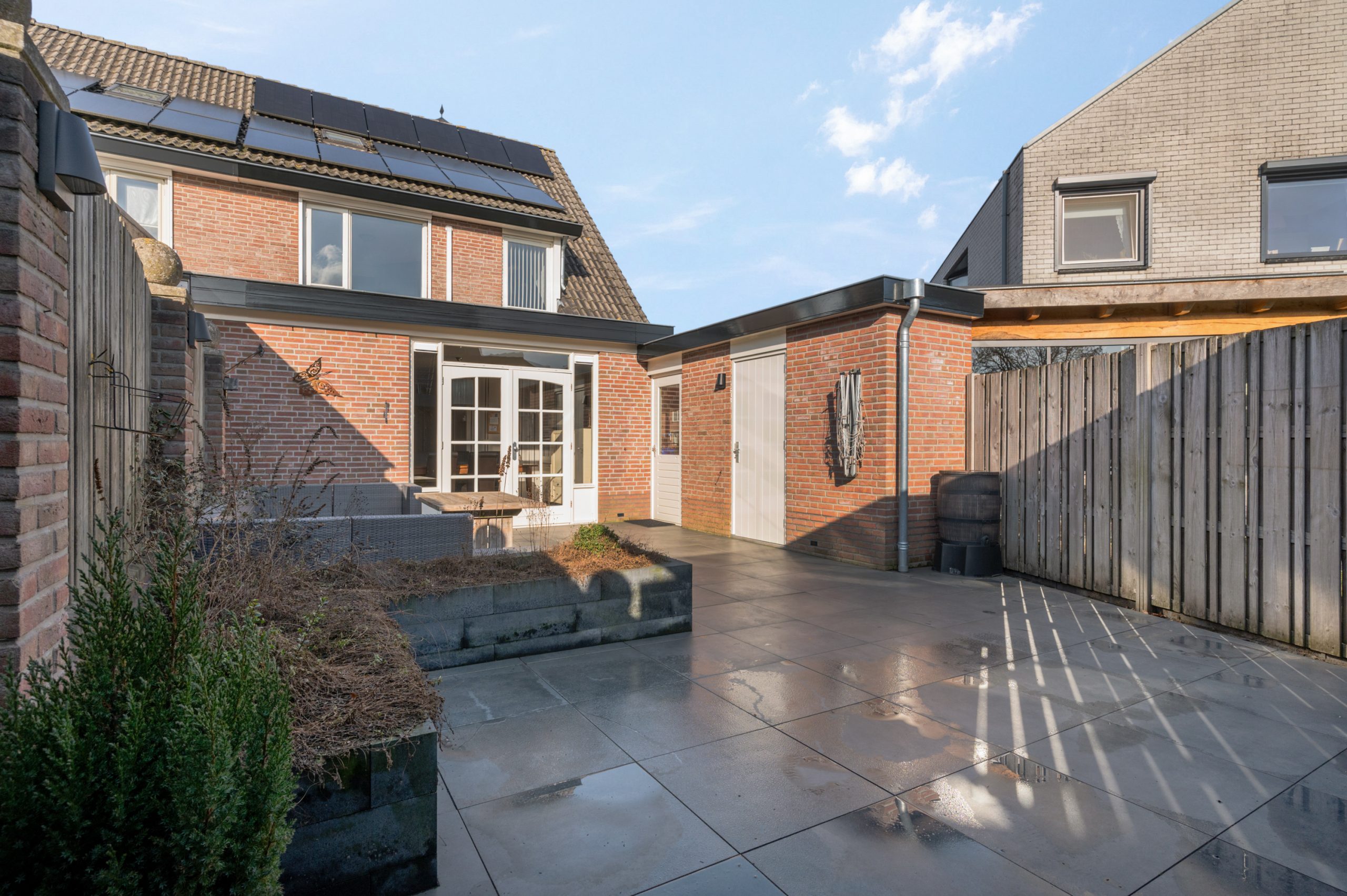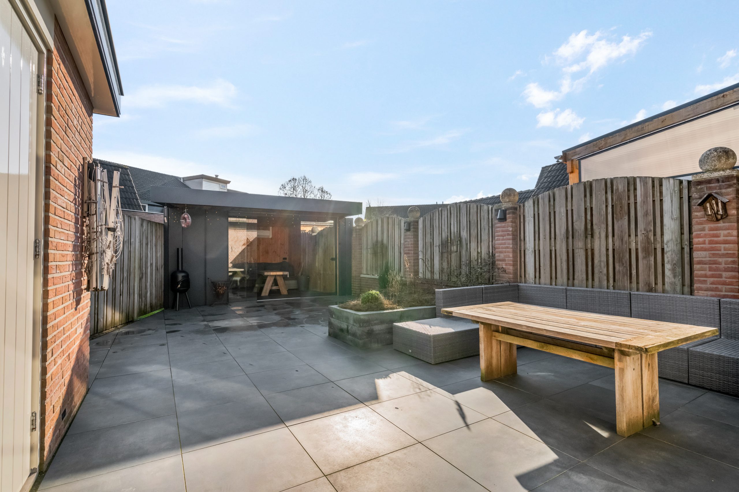 De achtertuin is verzorgd aangelegd en biedt een heerlijke plek om te ontspannen. Dankzij het ruime terras is er volop ruimte voor een grote eettafel of loungehoek. Achterin de tuin bevindt zich een luxe veranda, volledig afgewerkt met houten wanden en voorzien van een televisieaansluiting en airconditioning. Dit maakt het een perfecte plek om het hele jaar door te genieten van gezellige avonden met familie of vrienden.