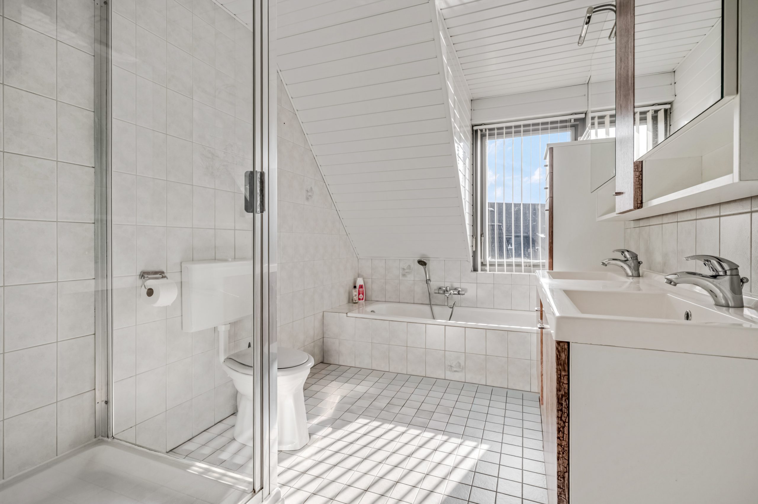 Op de eerste verdieping bevinden zich meerdere ruime slaapkamers. De royale ouderslaapkamer is voorzien van airconditioning, wat zorgt voor extra comfort tijdens warme dagen. Twee van de slaapkamers beschikken daarnaast over een praktische inbouwkast, ideaal voor extra bergruimte. De badkamer is compleet uitgevoerd met een ligbad, douche, dubbele wastafelmeubel en toilet.