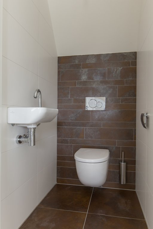 - Ruime hal, toilet met waskom v.v. warm en koud water, garderobe, bergkast, meterkast en trap naar de verdieping;
