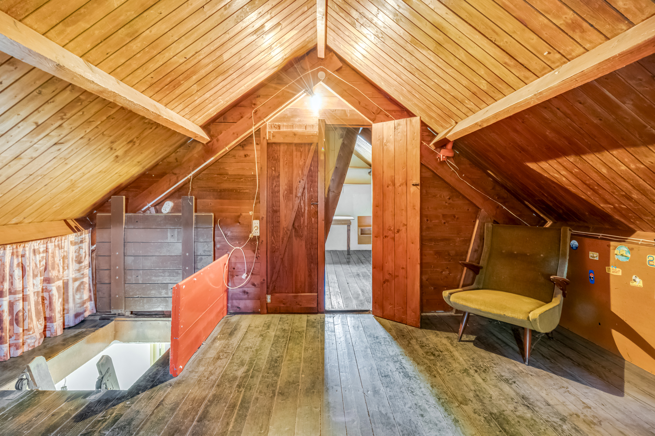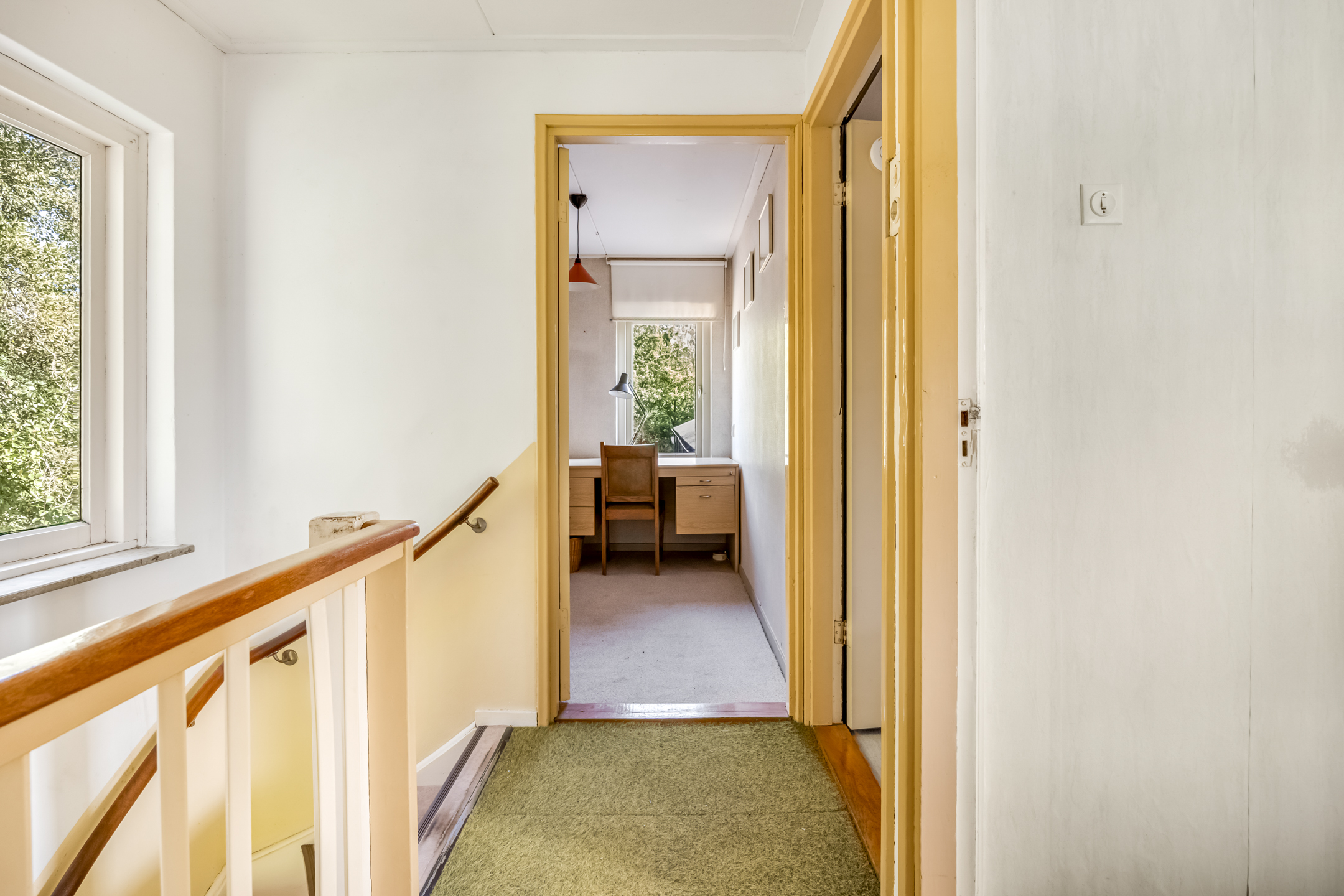 Via de vaste trap bereikt u de eerste verdieping met een overloop. Hier bevinden zich een drietal slaapkamers en een eenvoudige badkamer met wastafel en bad/douchecombinatie. Met de vlizotrap komt u op de ruime zolder, die uitstekend kan worden gebruikt voor opslag, een extra gebruiksruimte of een eventuele slaapkamer.