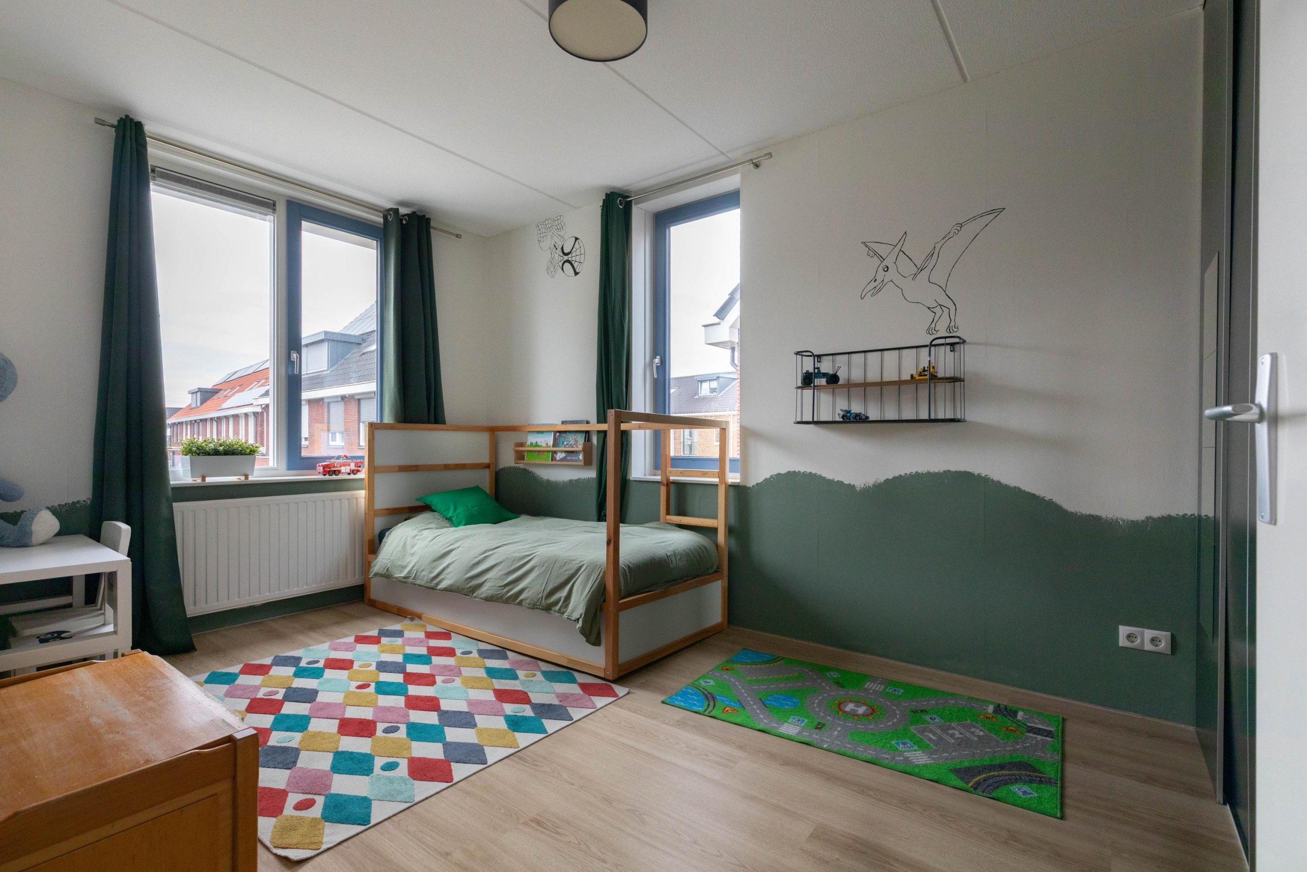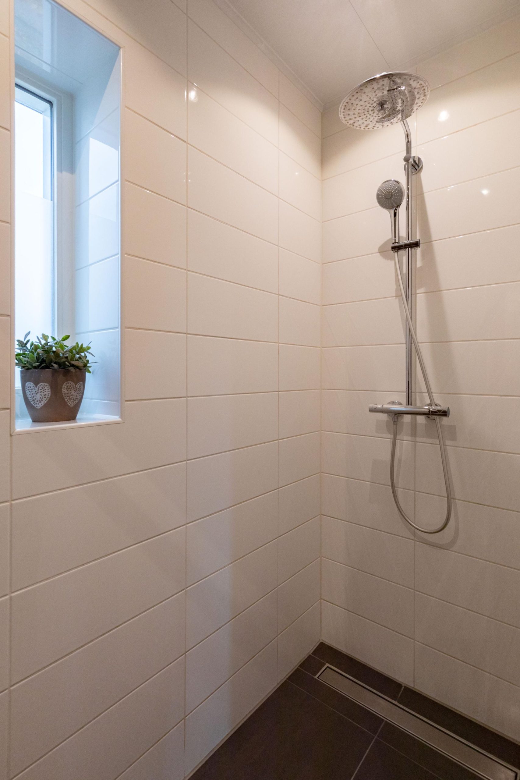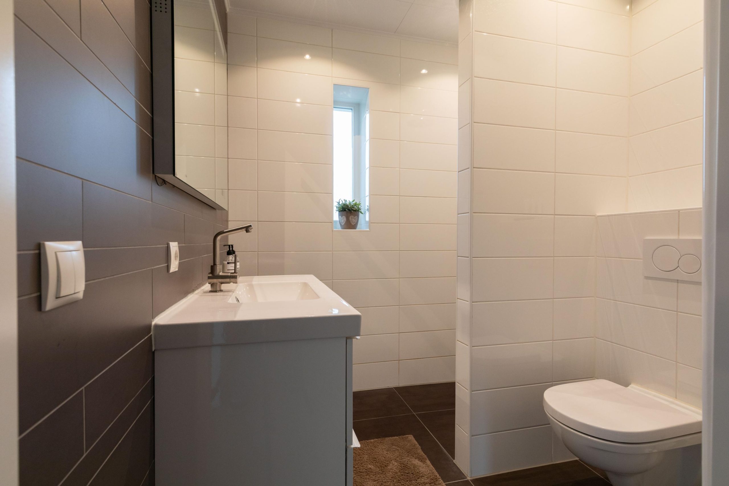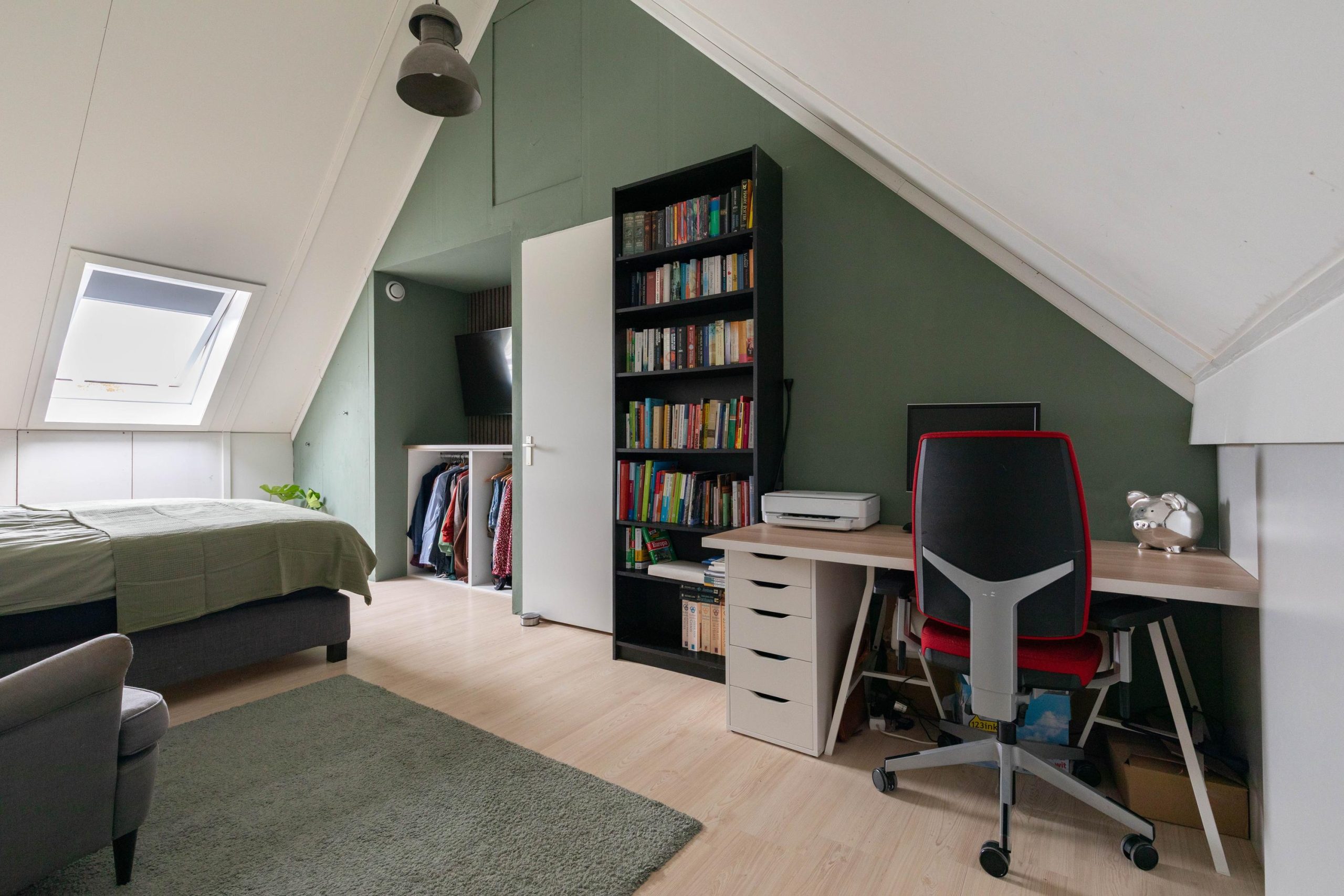 Eerste verdieping: Overloop met toegang tot drie royale slaapkamers en een nette badkamer met inloopdouche, wastafelmeubel en tweede toilet. De ouderslaapkamer is extra ruim en voorzien van een vaste kast.