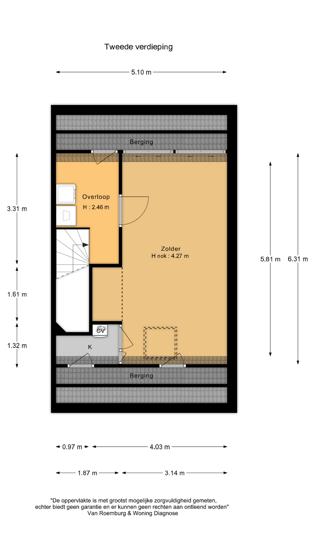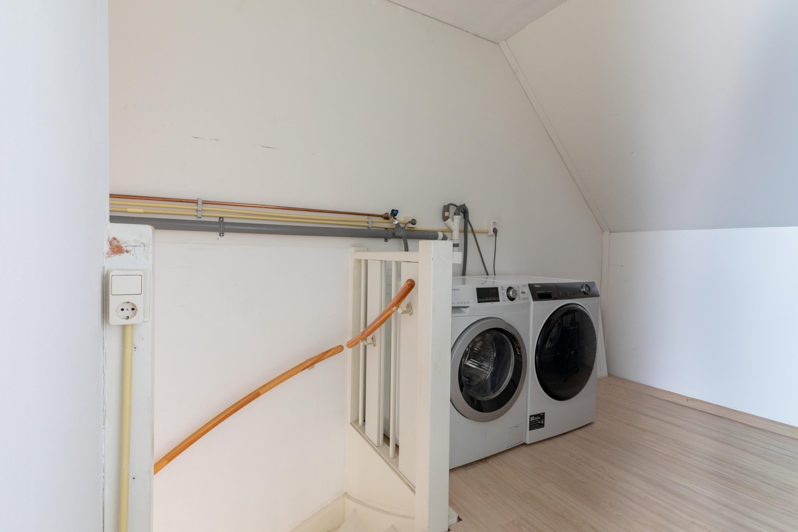 Tweede verdieping: Via een vaste trap bereik je de zolderverdieping met een overloop waar plaats is voor de wasmachine en droger. In de schuine kanten is handige bergruimte gecreëerd en er is een aparte stookruimte met de cv-ketel. Daarnaast bevindt zich hier een nette vierde slaapkamer met extra bergruimte.