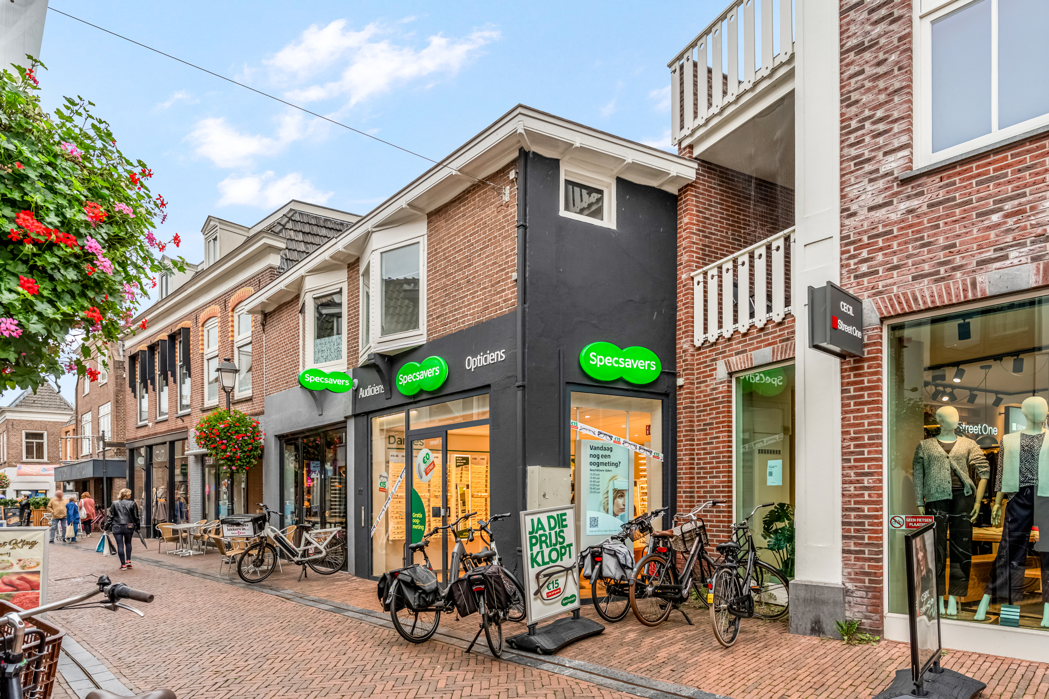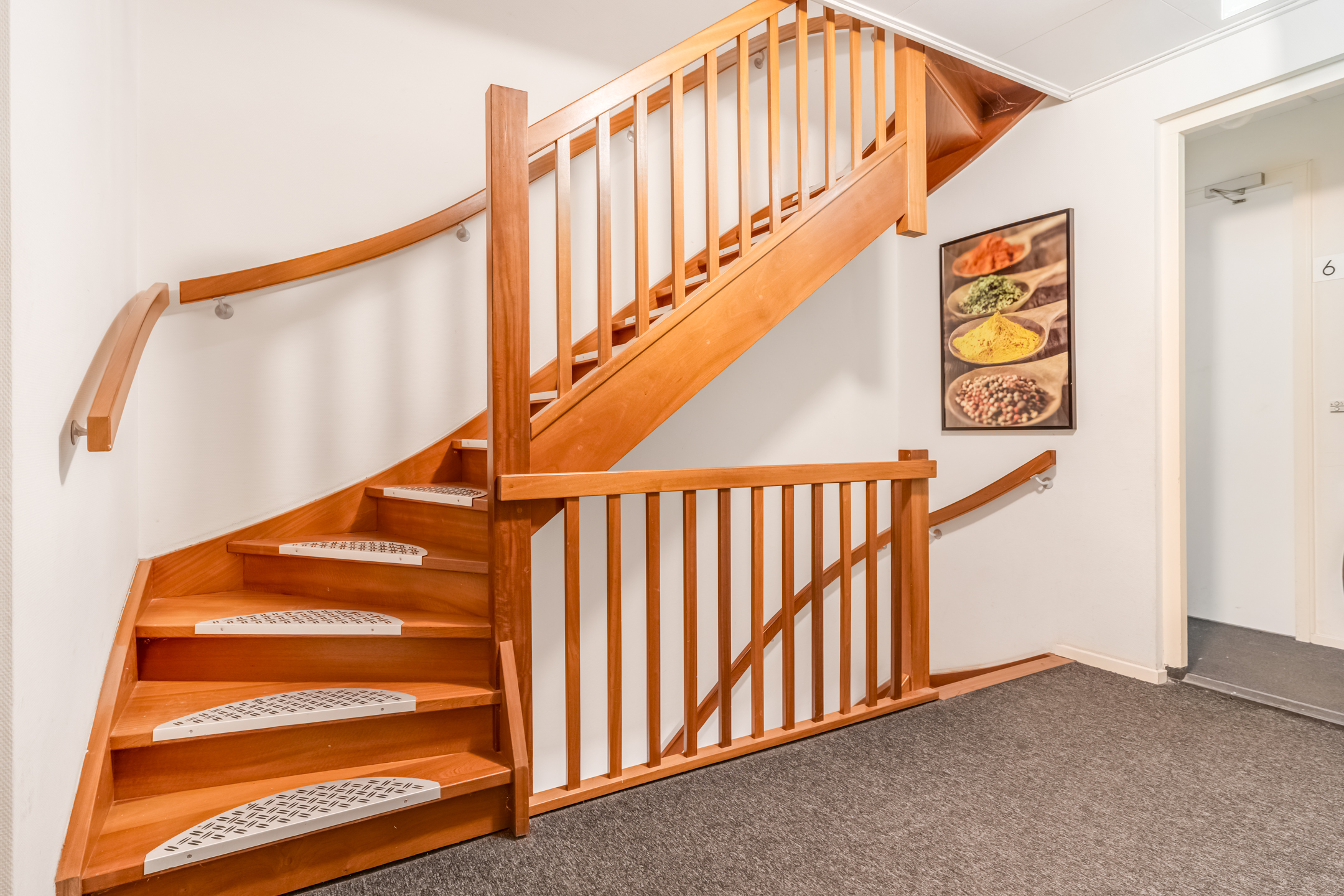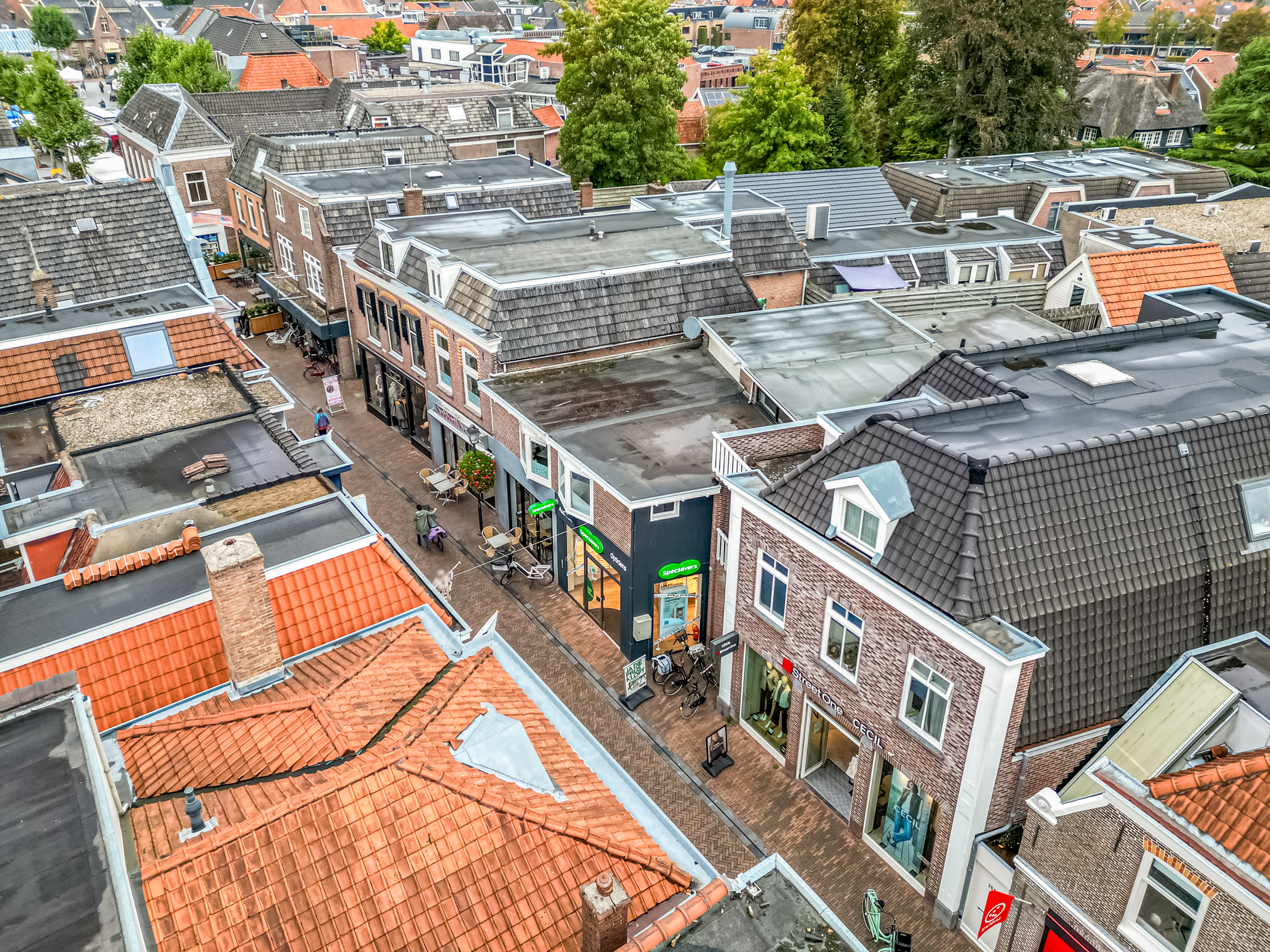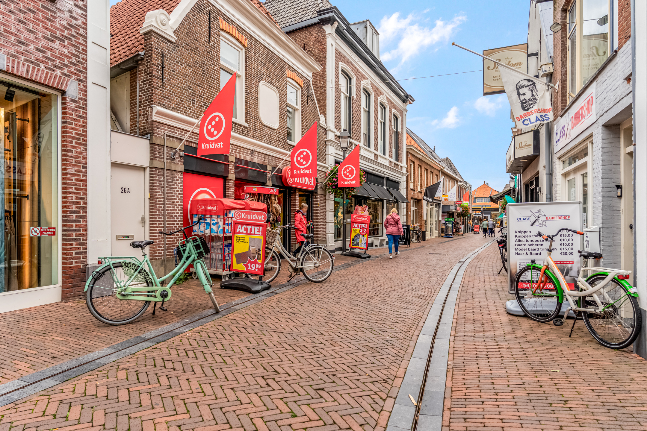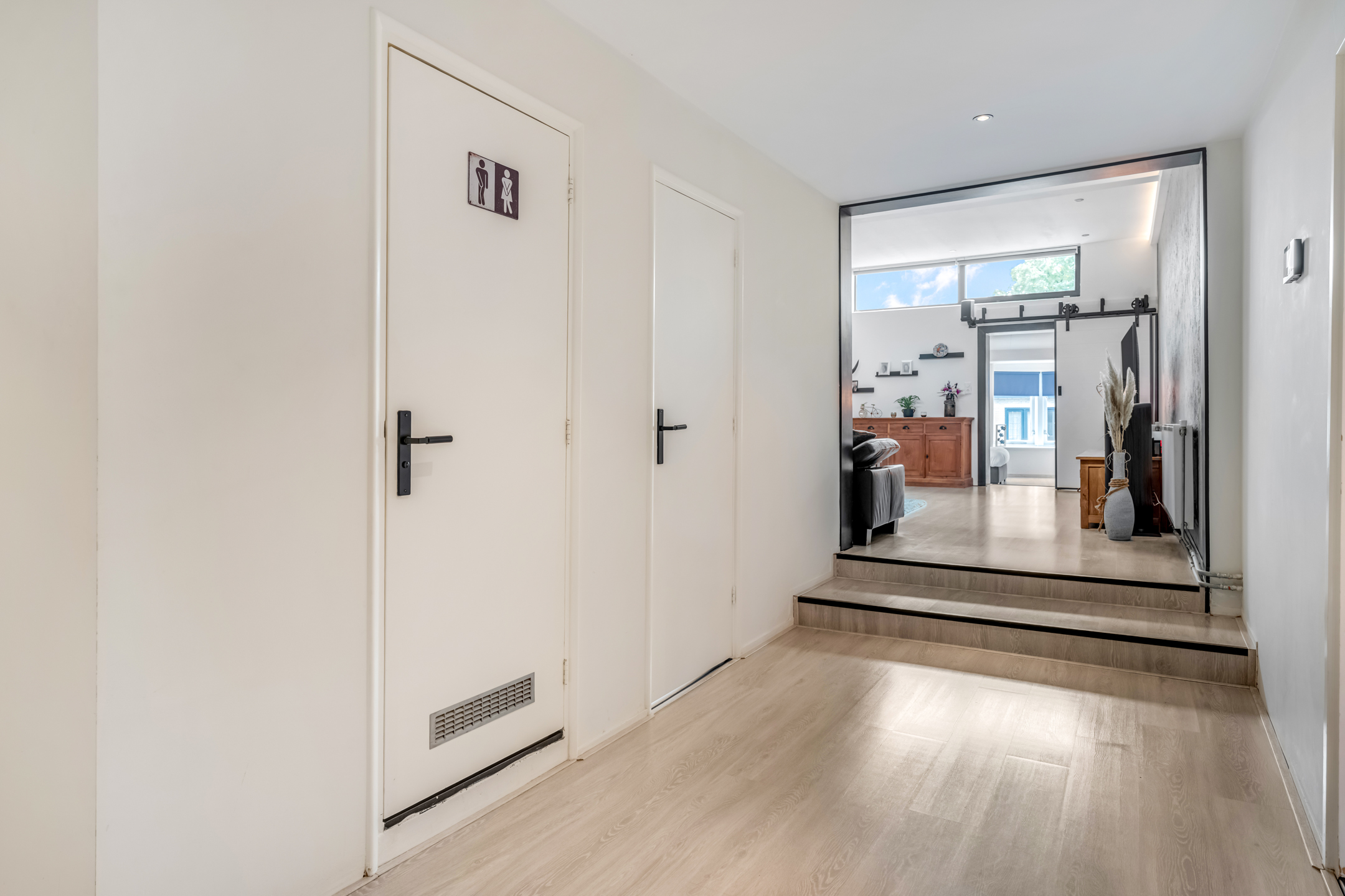 Op de eerste verdieping stap je binnen in een ruime hal die toegang biedt tot alle vertrekken. Hier vind je onder andere de meterkast en een aparte berging met aansluitingen voor wasapparatuur. Via een klein opstapje bereik je de lichte woonkamer, die dankzij hooggeplaatste ramen aan twee zijden baadt in daglicht. Extra comfort in alle seizoenen? De woonkamer is voorzien van een airco-unit, waardoor het hier ook op warme dagen heerlijk koel blijft. Deze lichte leefruimte staat in open verbinding met de voorgelegen slaapkamer, die uitkijkt op de winkelstraat en voorzien is van een lichtkoepel voor extra daglicht. Daarnaast is er een aparte kamer die ideaal dienstdoet als kantoor, werkplek of hobbyruimte, perfect voor wie thuiswerkt of gewoon graag wat extra ruimte heeft.