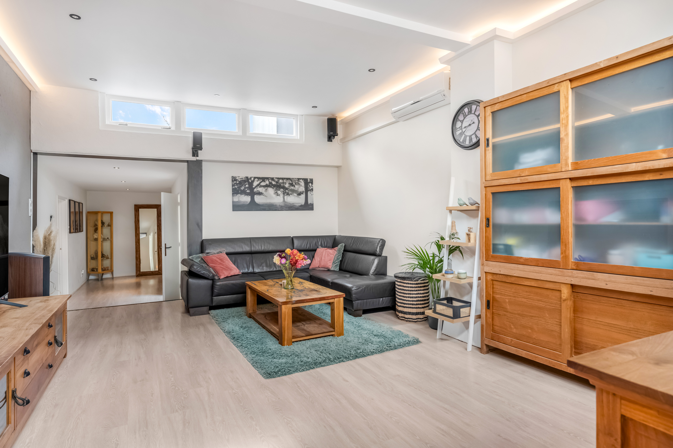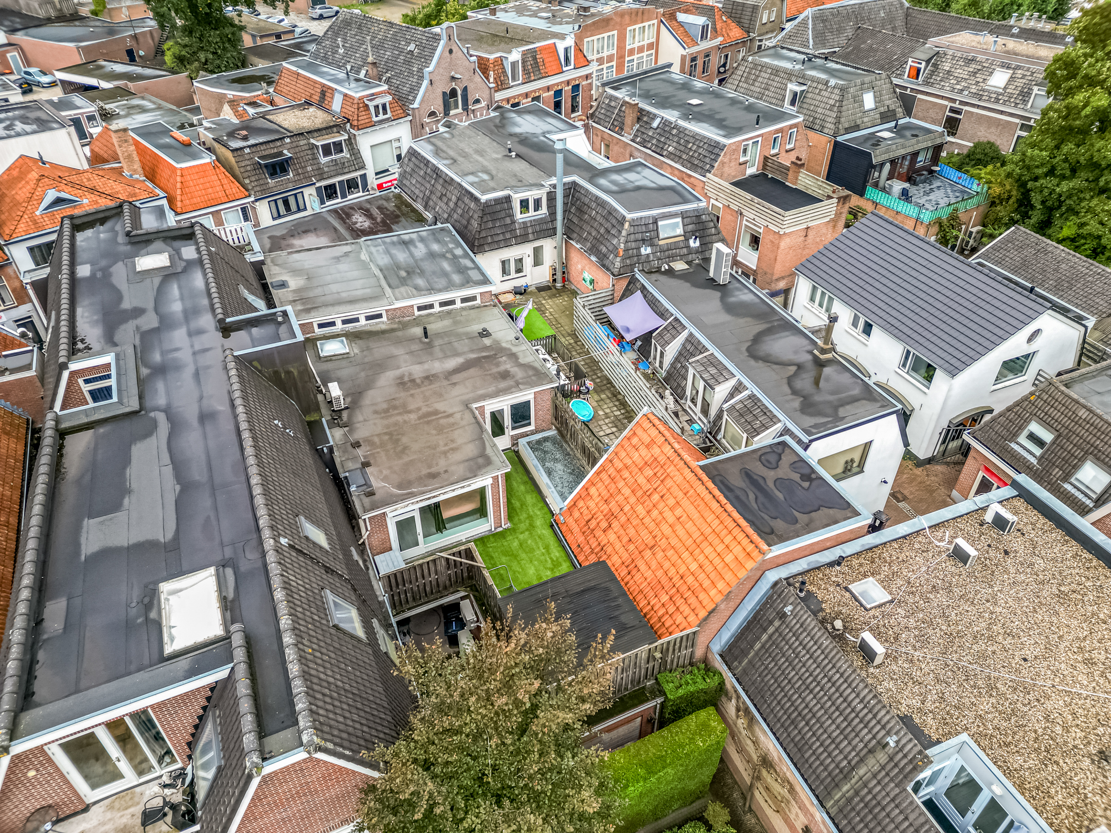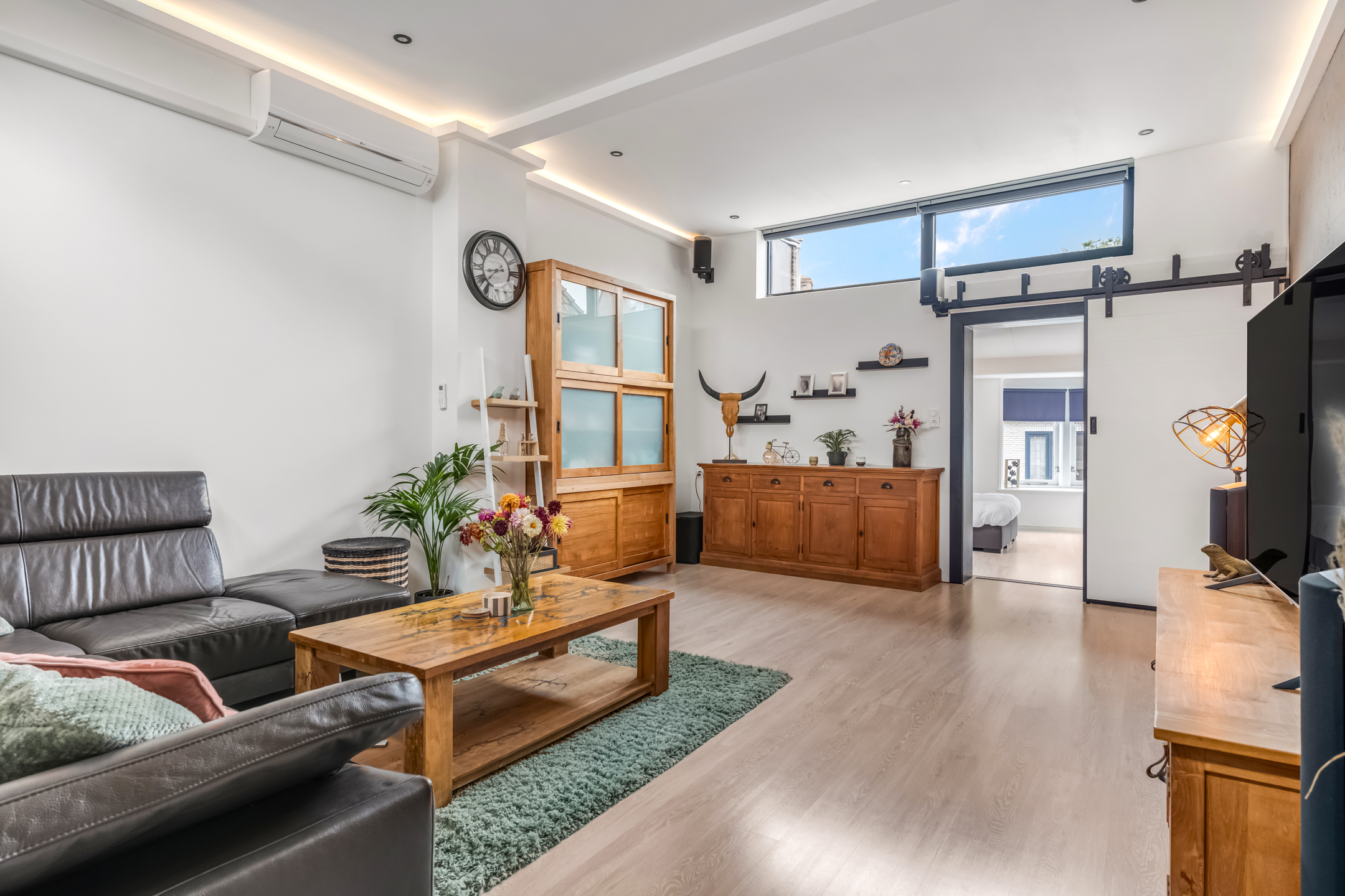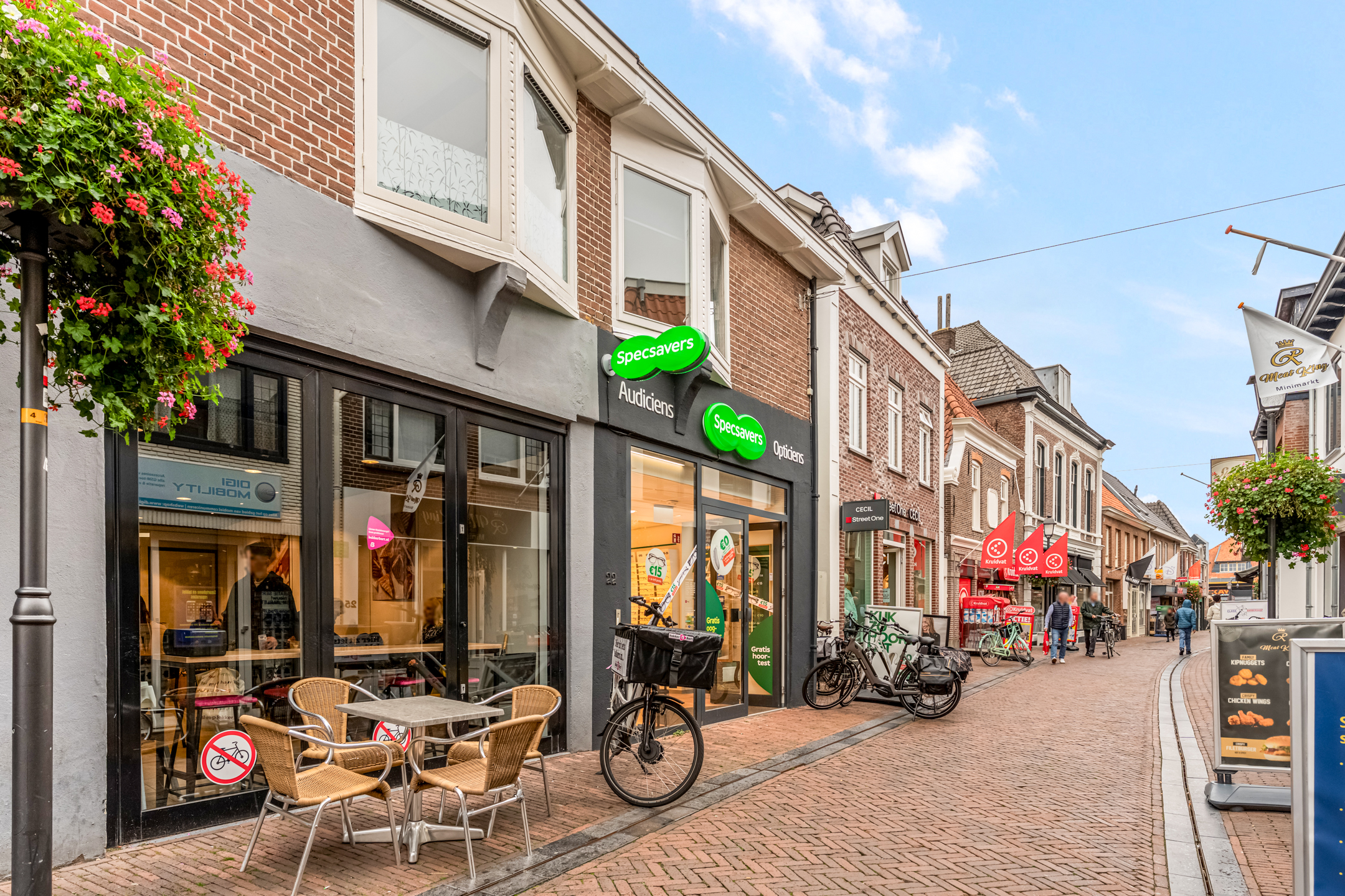 Op de eerste verdieping stap je binnen in een ruime hal die toegang biedt tot alle vertrekken. Hier vind je onder andere de meterkast en een aparte berging met aansluitingen voor wasapparatuur. Via een klein opstapje bereik je de lichte woonkamer, die dankzij hooggeplaatste ramen aan twee zijden baadt in daglicht. Extra comfort in alle seizoenen? De woonkamer is voorzien van een airco-unit, waardoor het hier ook op warme dagen heerlijk koel blijft. Deze lichte leefruimte staat in open verbinding met de voorgelegen slaapkamer, die uitkijkt op de winkelstraat en voorzien is van een lichtkoepel voor extra daglicht. Daarnaast is er een aparte kamer die ideaal dienstdoet als kantoor, werkplek of hobbyruimte, perfect voor wie thuiswerkt of gewoon graag wat extra ruimte heeft.