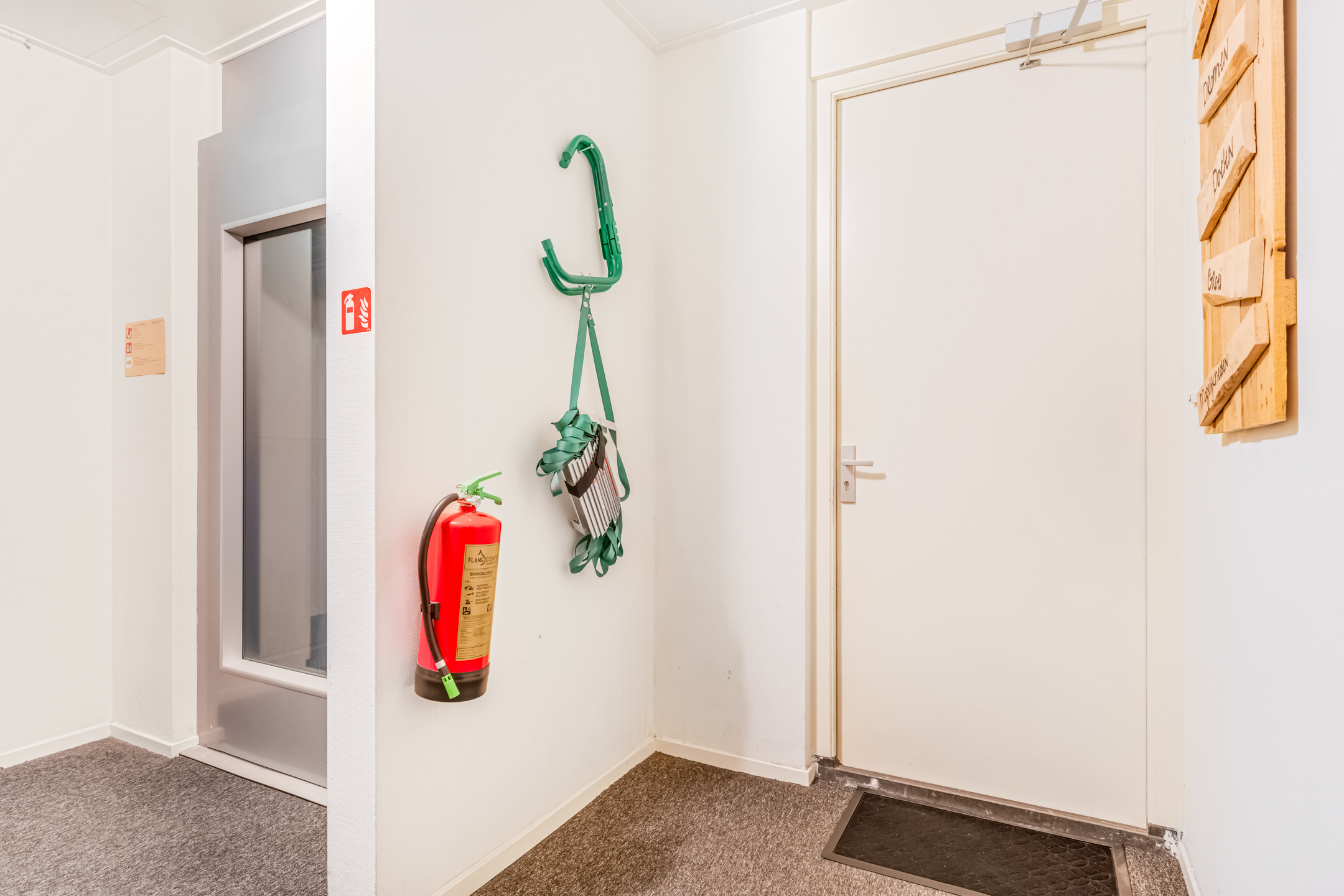 Bij binnenkomst op de begane grond vind je de centrale entree met toegang tot de trapopgang, lift, technische ruimte en bergingen.