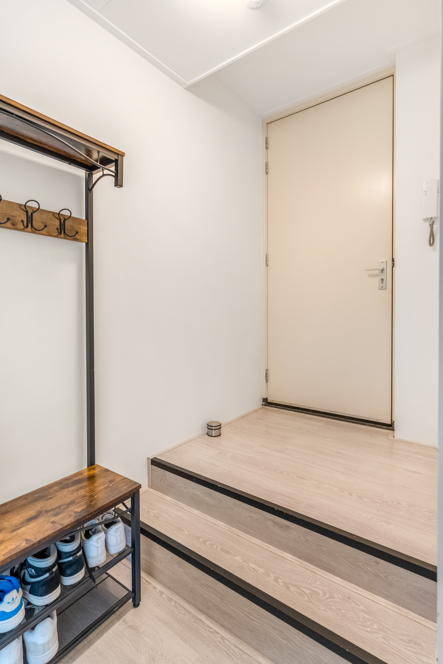 Het appartement is volledig voorzien van een lichte laminaatvloer, wat zorgt voor een frisse, moderne uitstraling. De speelse niveauverschillen maken de indeling uniek en geven het extra karakter. Bij het appartement is het mogelijk een huurcontract over te nemen voor een berging en twee parkeerplekken. Ideaal voor extra opslag en parkeergemak.