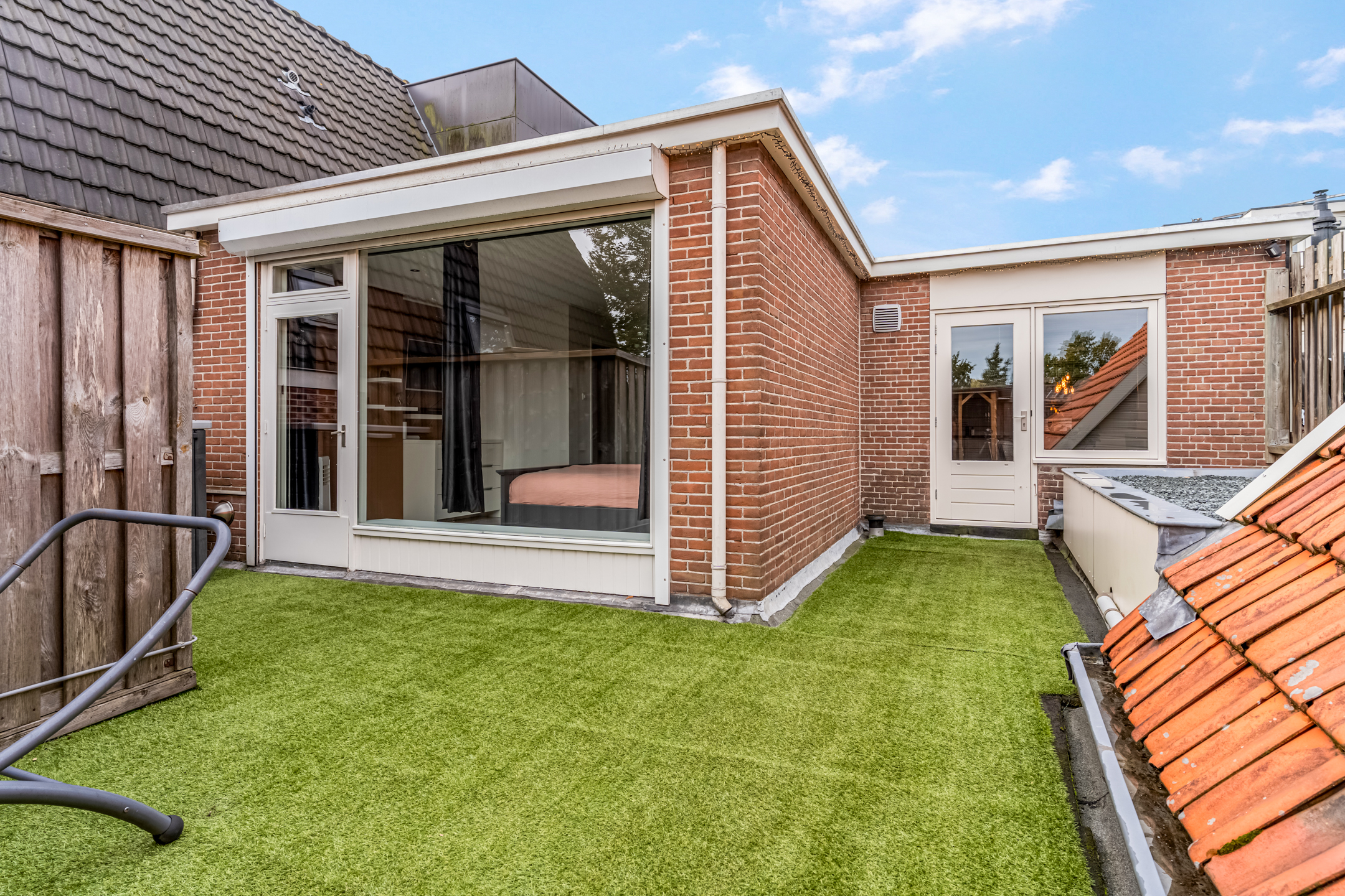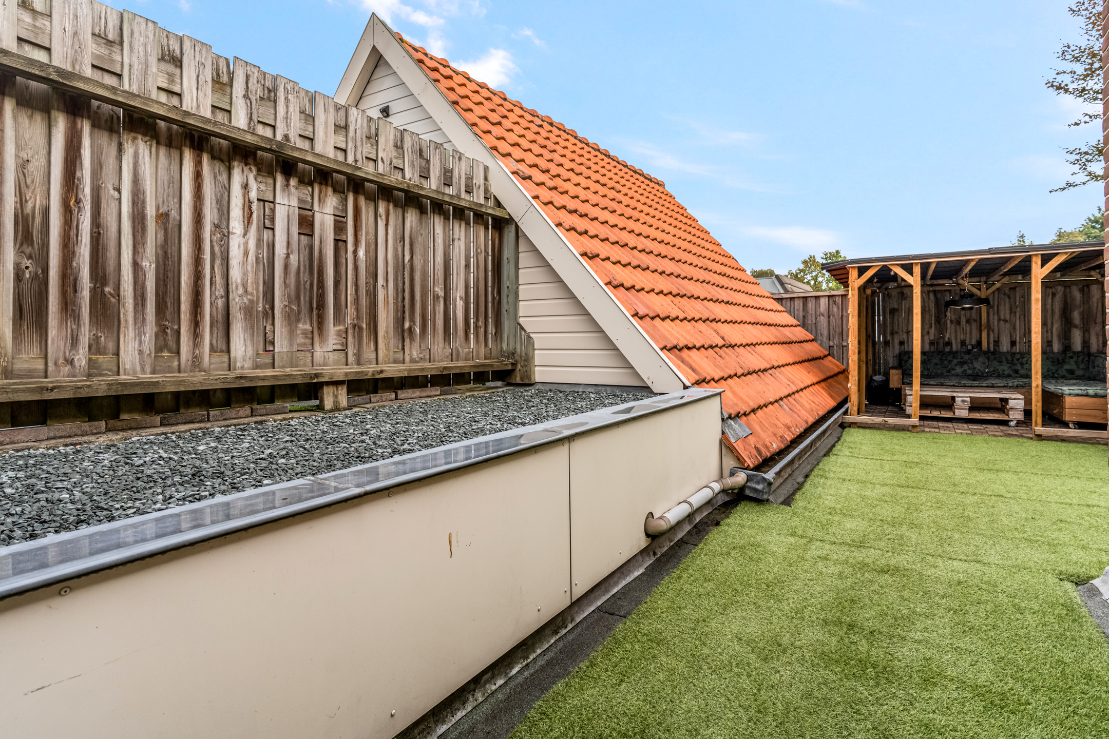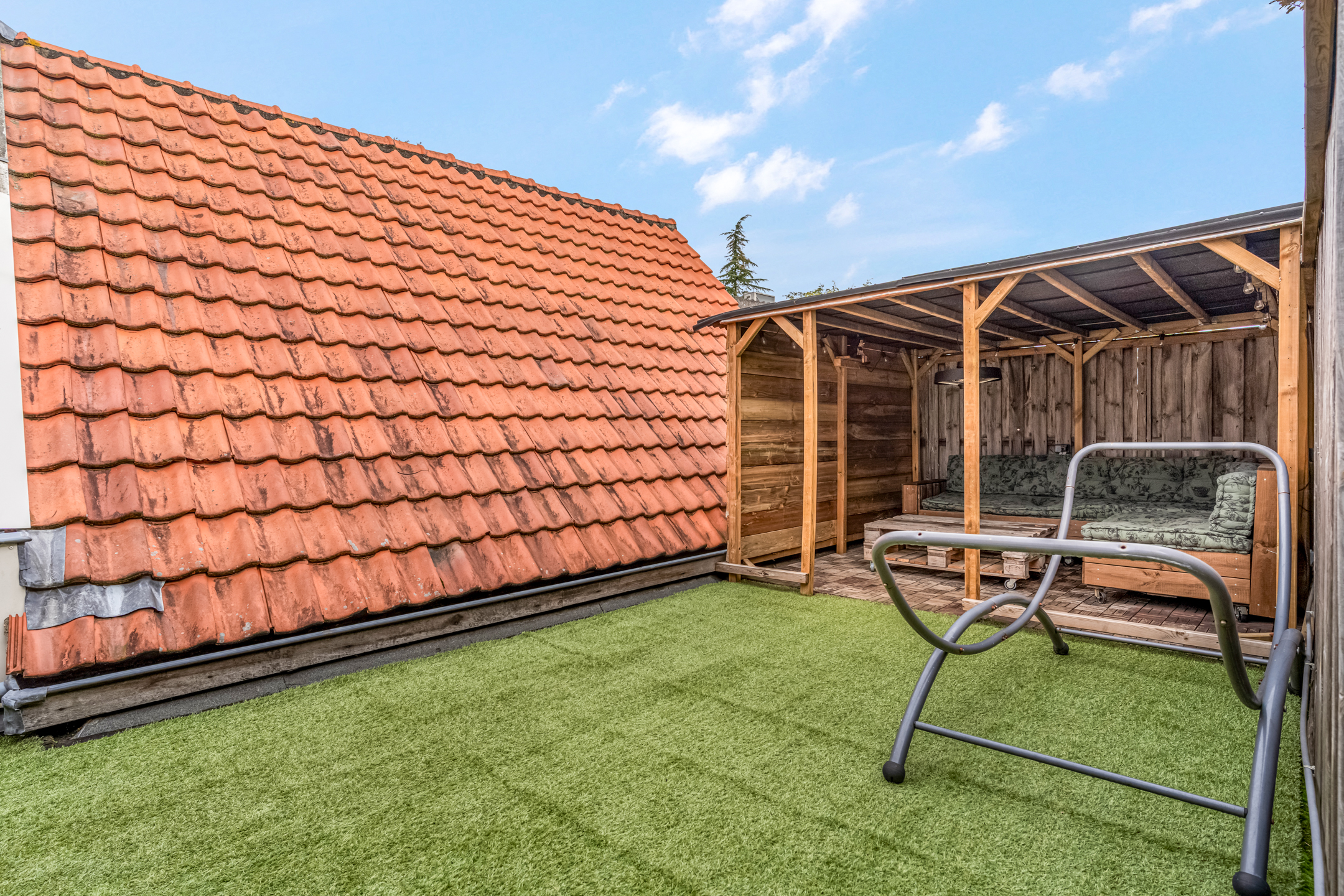 De keuken is compleet uitgerust met inbouwapparatuur, waaronder een gaskookplaat, afzuigkap, spoelbak, vaatwasser, koelkast, vriezer en oven. Het kookschiereiland met bar nodigt uit tot gezelligheid, perfect voor een hapje of drankje terwijl je kookt. En vanuit de keuken stap je zó het ruime, zonnige dakterras op!