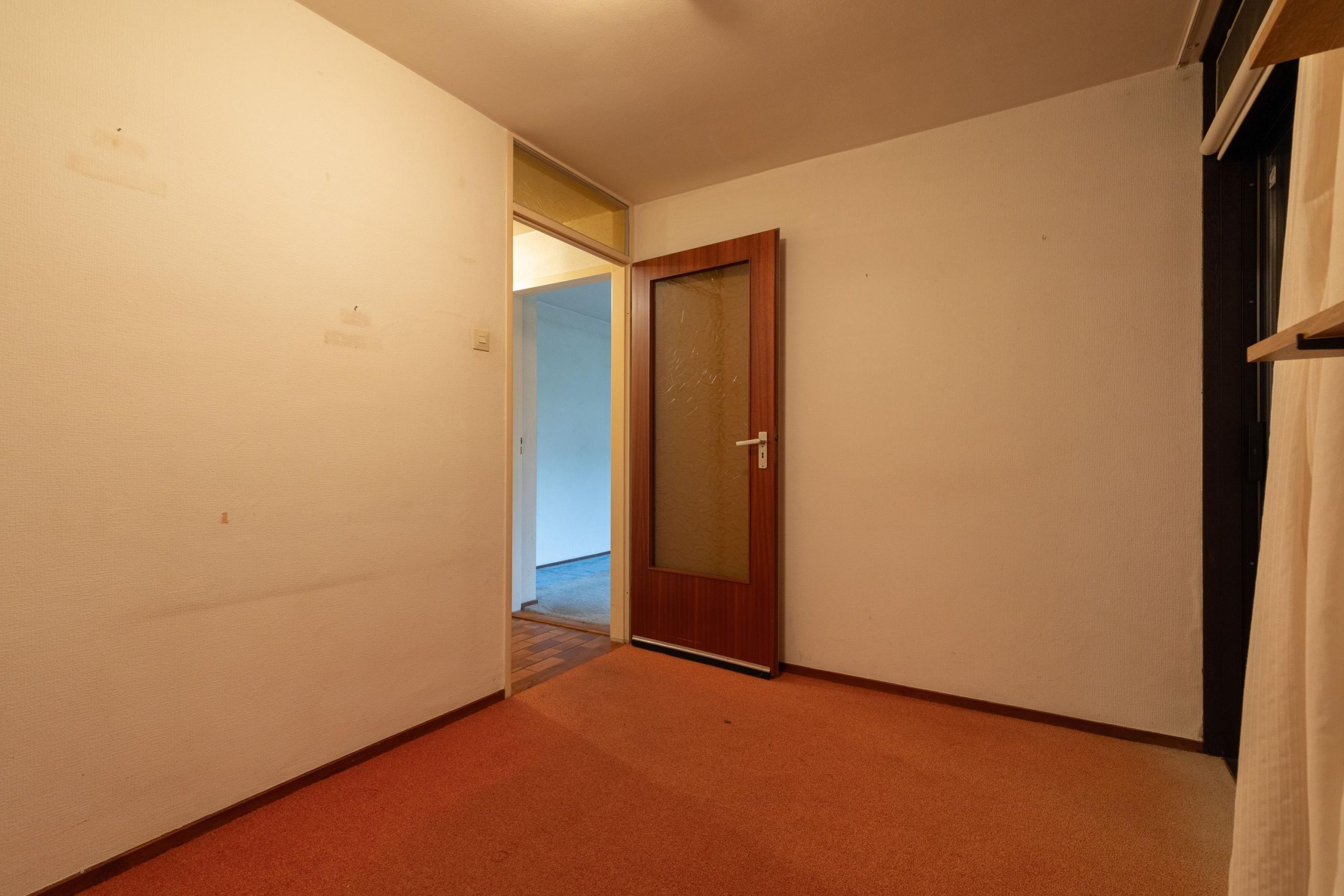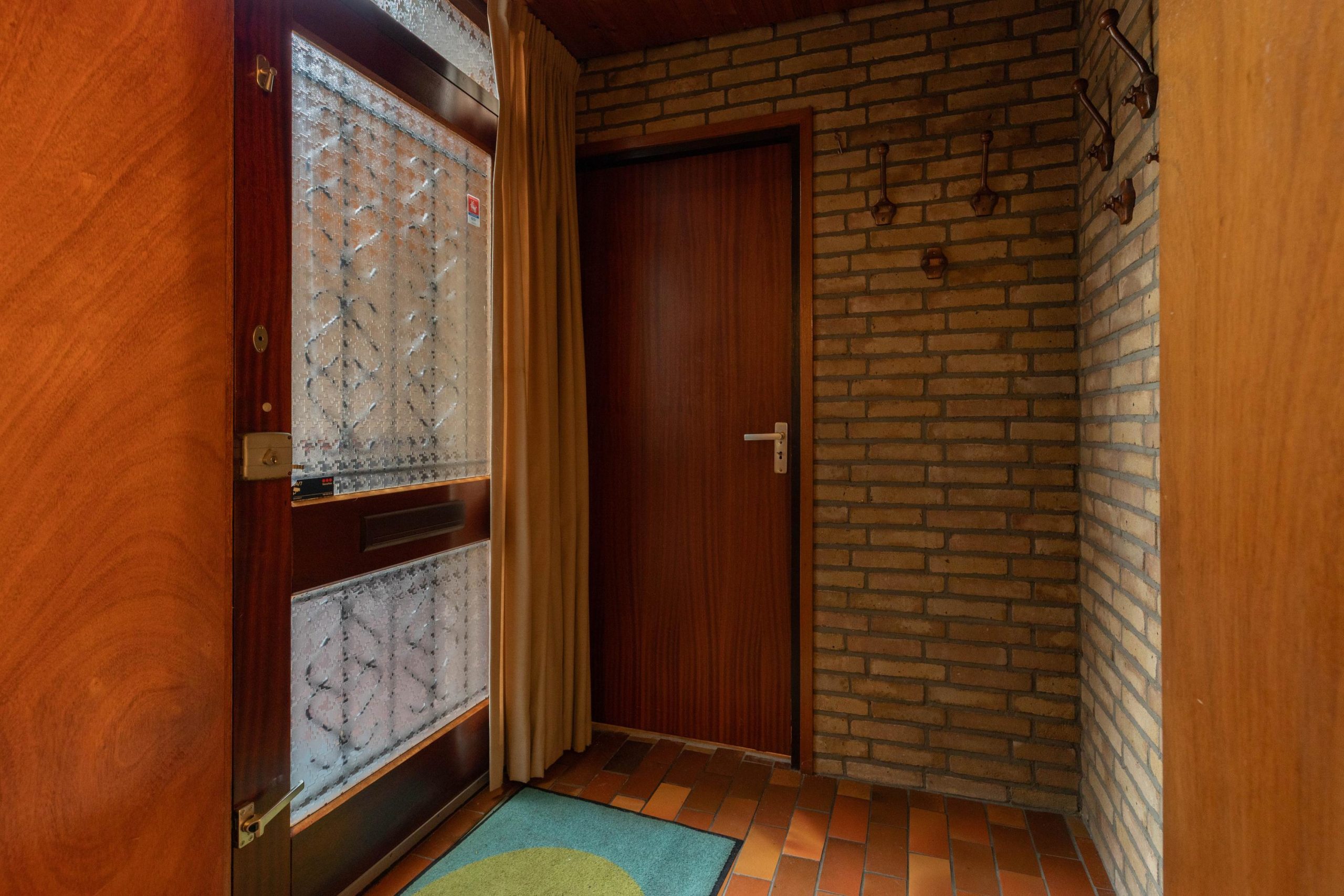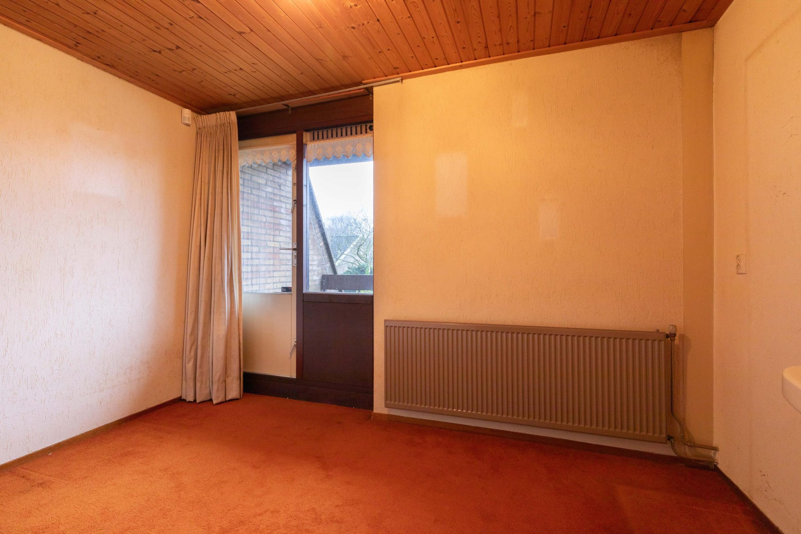 Via de eigen oprit, met ruimte voor twee auto’s en een overdekte entree loop je de woning binnen. In de hal vind je het separate toilet en toegang tot verschillende ruimtes. Aan de voorzijde bevindt zich de lichte woonkamer, waar de schuifpui voor een verbinding met buiten zorgt. De open haard geeft een fijne warmte en door de vide voelt de ruimte extra hoog en open. Aangrenzend ligt de open keuken, praktisch ingedeeld en met zicht op de woonkamer. Loop je verder, dan kom je in de bijkeuken, een ideale plek voor extra opslag en de wasmachine. Via de hal kom je bij de twee slaapkamers en de badkamer. De badkamer ligt centraal en biedt een goede basis om te moderniseren.