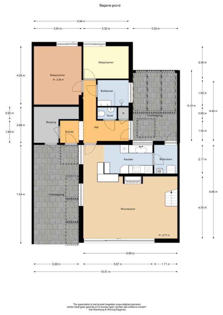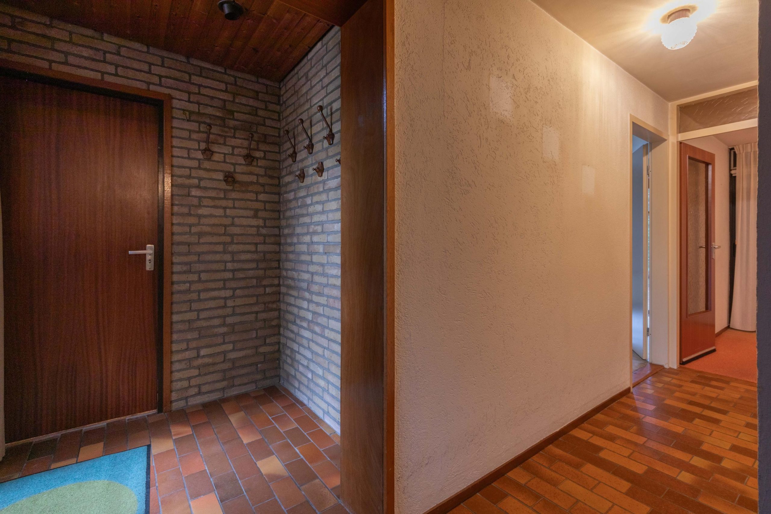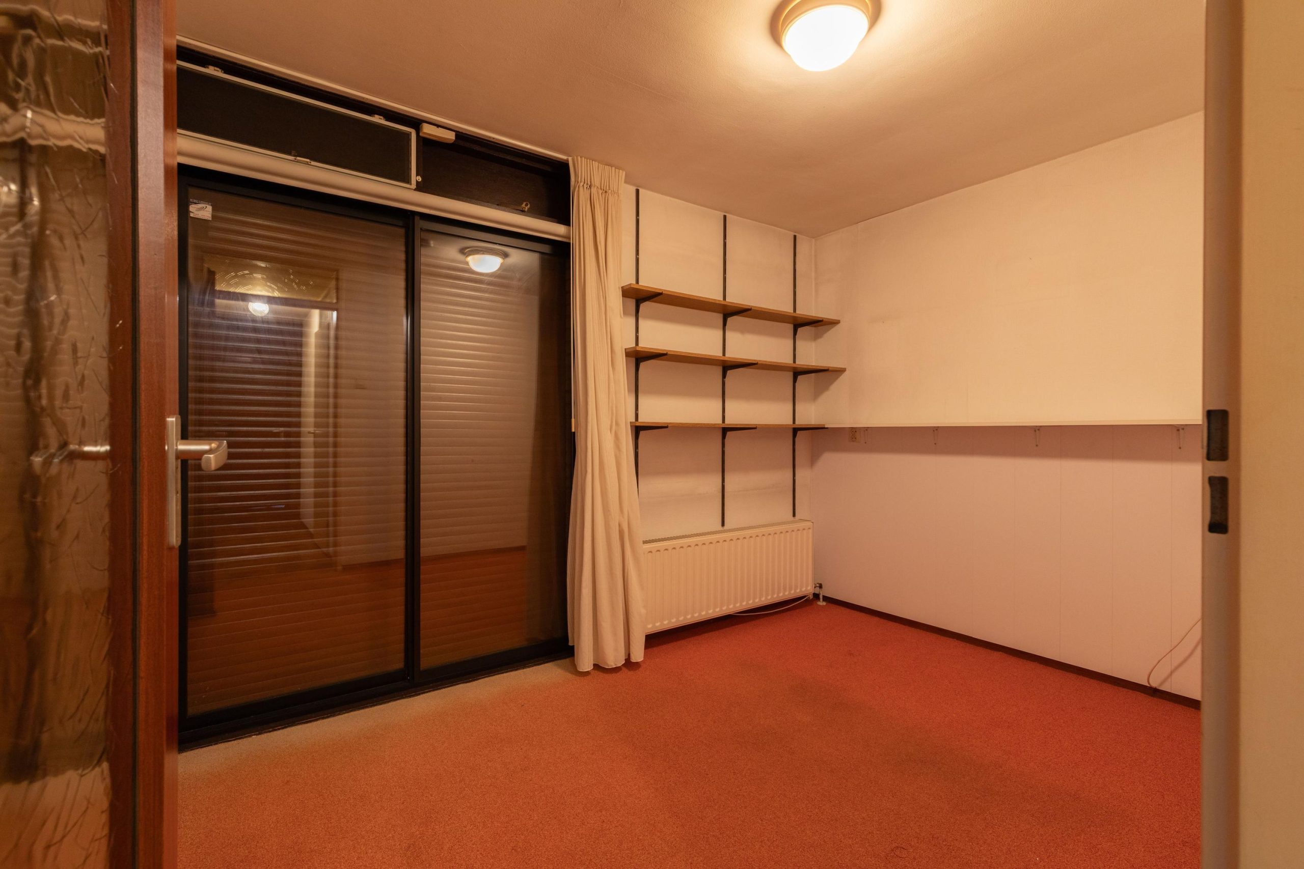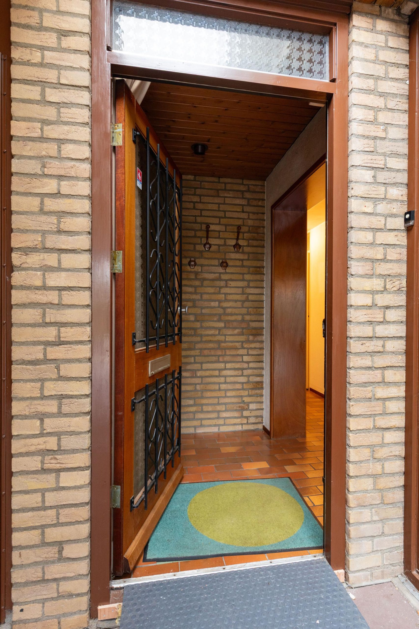 Via de eigen oprit, met ruimte voor twee auto’s en een overdekte entree loop je de woning binnen. In de hal vind je het separate toilet en toegang tot verschillende ruimtes. Aan de voorzijde bevindt zich de lichte woonkamer, waar de schuifpui voor een verbinding met buiten zorgt. De open haard geeft een fijne warmte en door de vide voelt de ruimte extra hoog en open. Aangrenzend ligt de open keuken, praktisch ingedeeld en met zicht op de woonkamer. Loop je verder, dan kom je in de bijkeuken, een ideale plek voor extra opslag en de wasmachine. Via de hal kom je bij de twee slaapkamers en de badkamer. De badkamer ligt centraal en biedt een goede basis om te moderniseren.