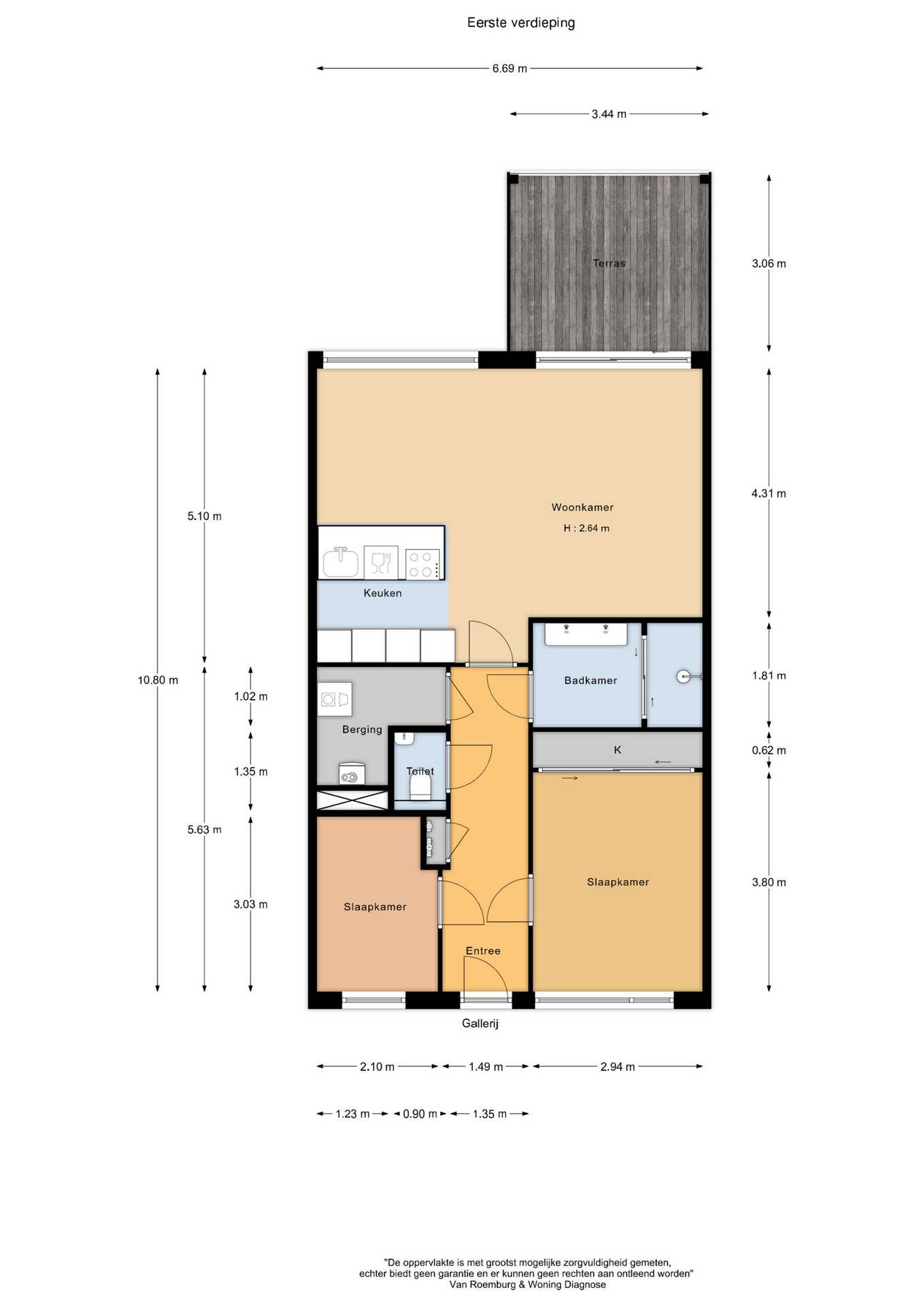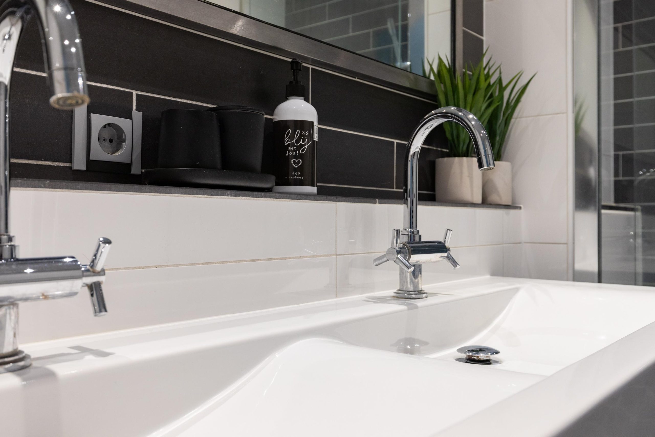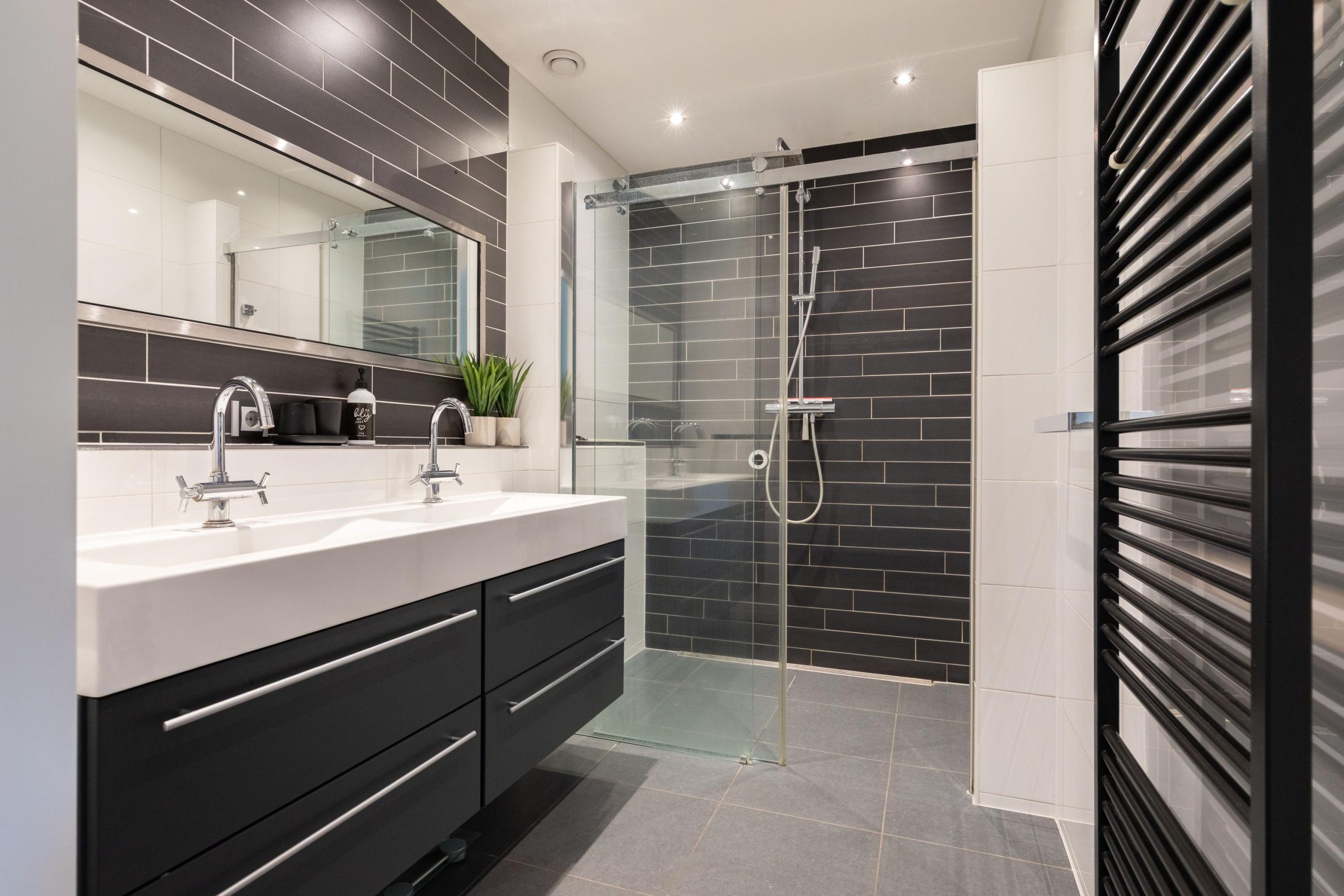 Tweede woonlaag: Entree/hal. De ruime woonkamer is aan de achterzijde van het appartement gelegen en geeft toegang tot het balkon. De open keuken is voorzien van een schiereiland en diverse inbouwapparatuur zoals een gaskookplaat, vaatwasser, combi-oven, koffiemachine en koelkast. De twee slaapkamers zijn aan de voorzijde van het appartement gelegen. De badkamer is voorzien van een inloopdouche en dubbel wastafelmeubel. In de hal vind je ook het separaat toilet. In de inpandige berging zit de opstelplaats voor de Cv-installatie en voor de wasmachine en droger.